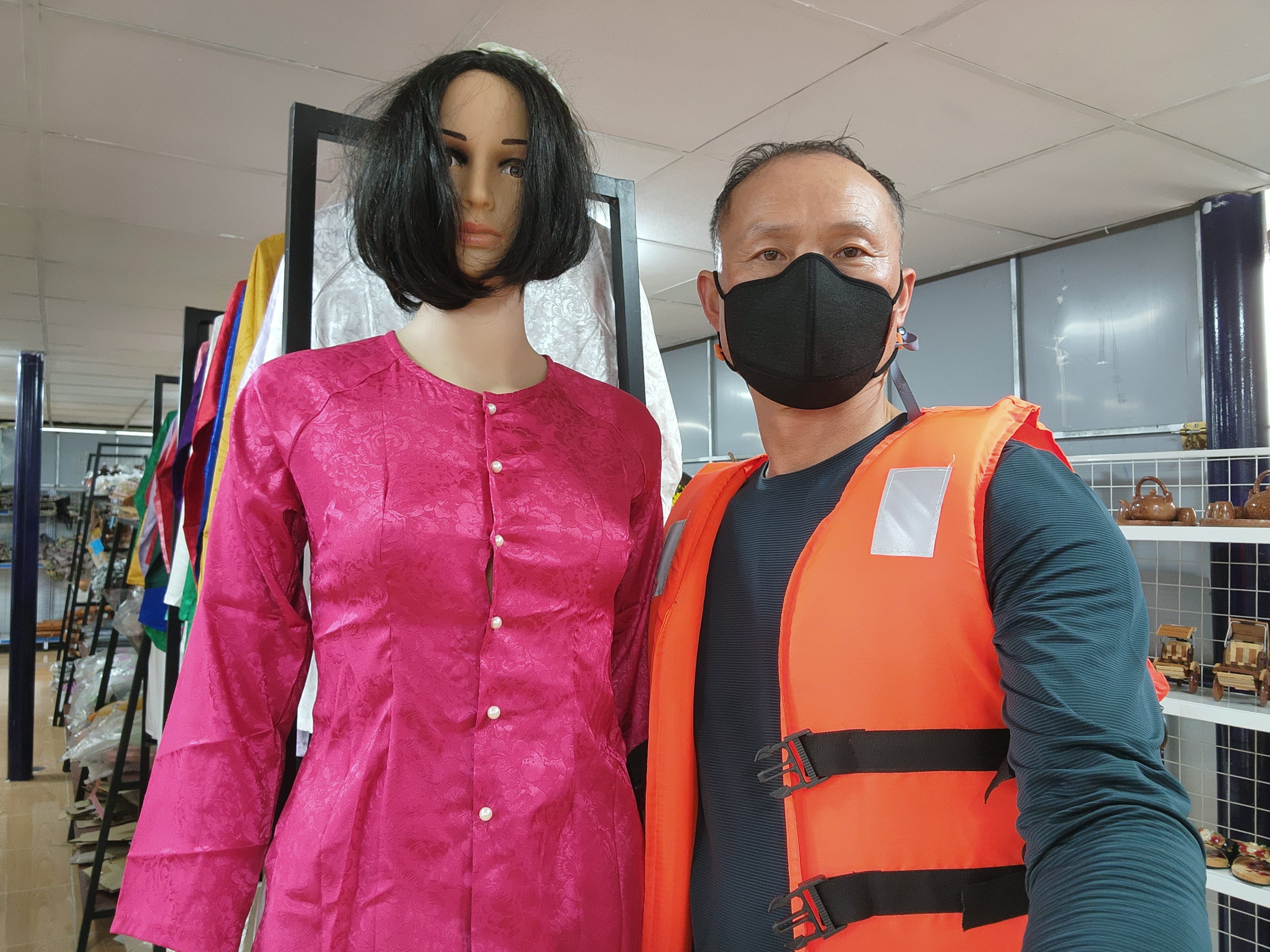 수산시장 배마트에서 아오자이를 입은 마네킹과 ㅎㅎ
