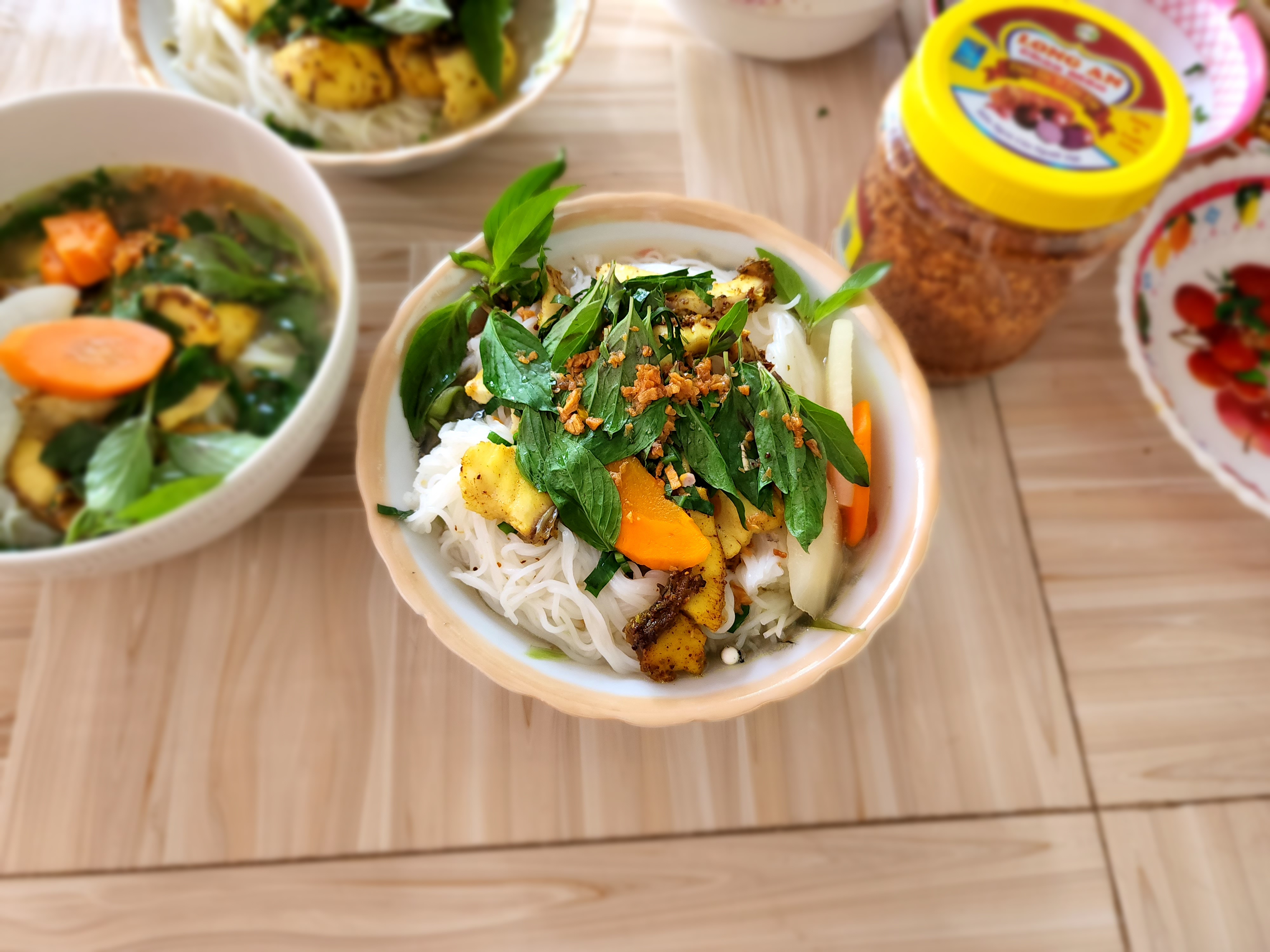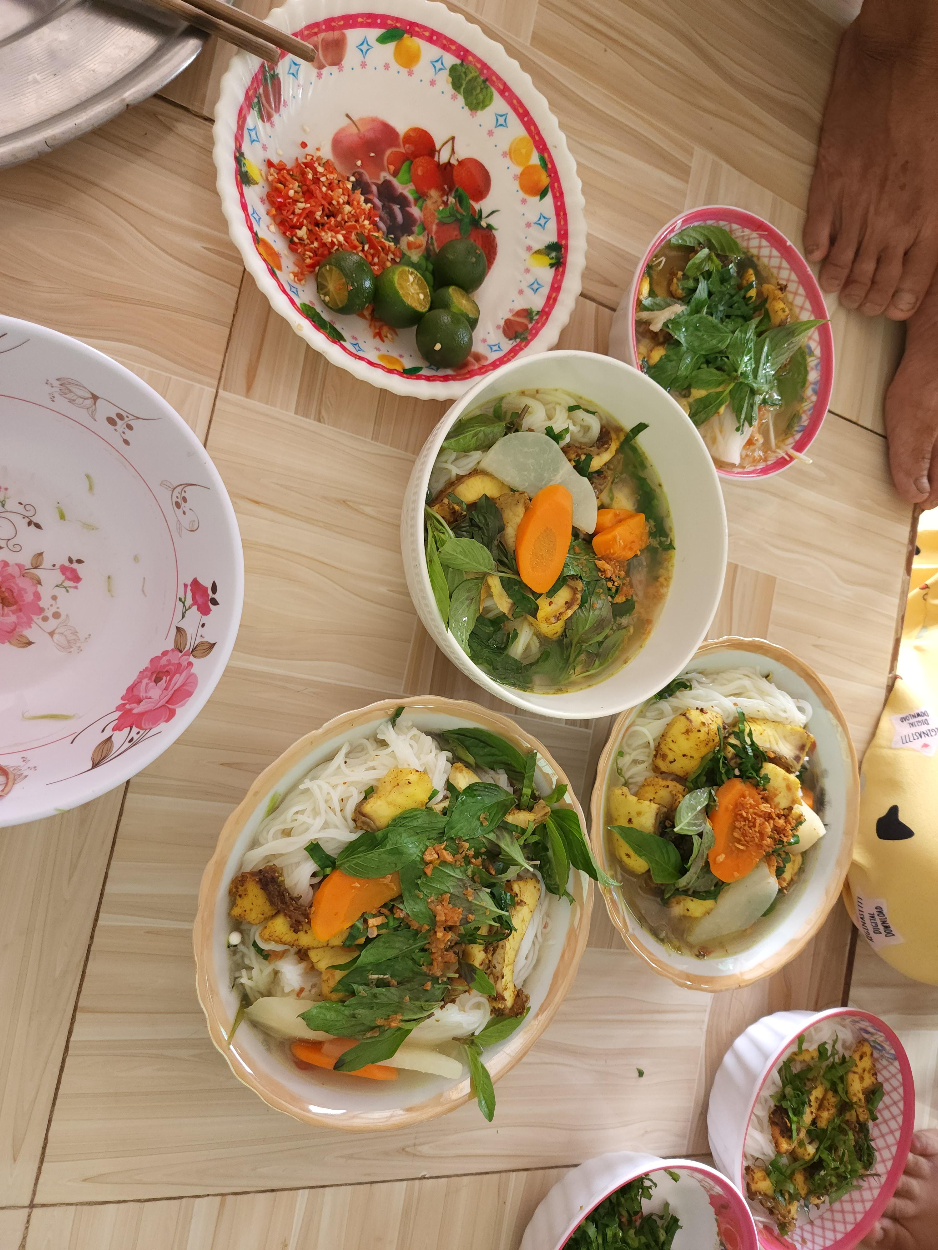 완성된 분까(Bún cá) 요리 입니다.