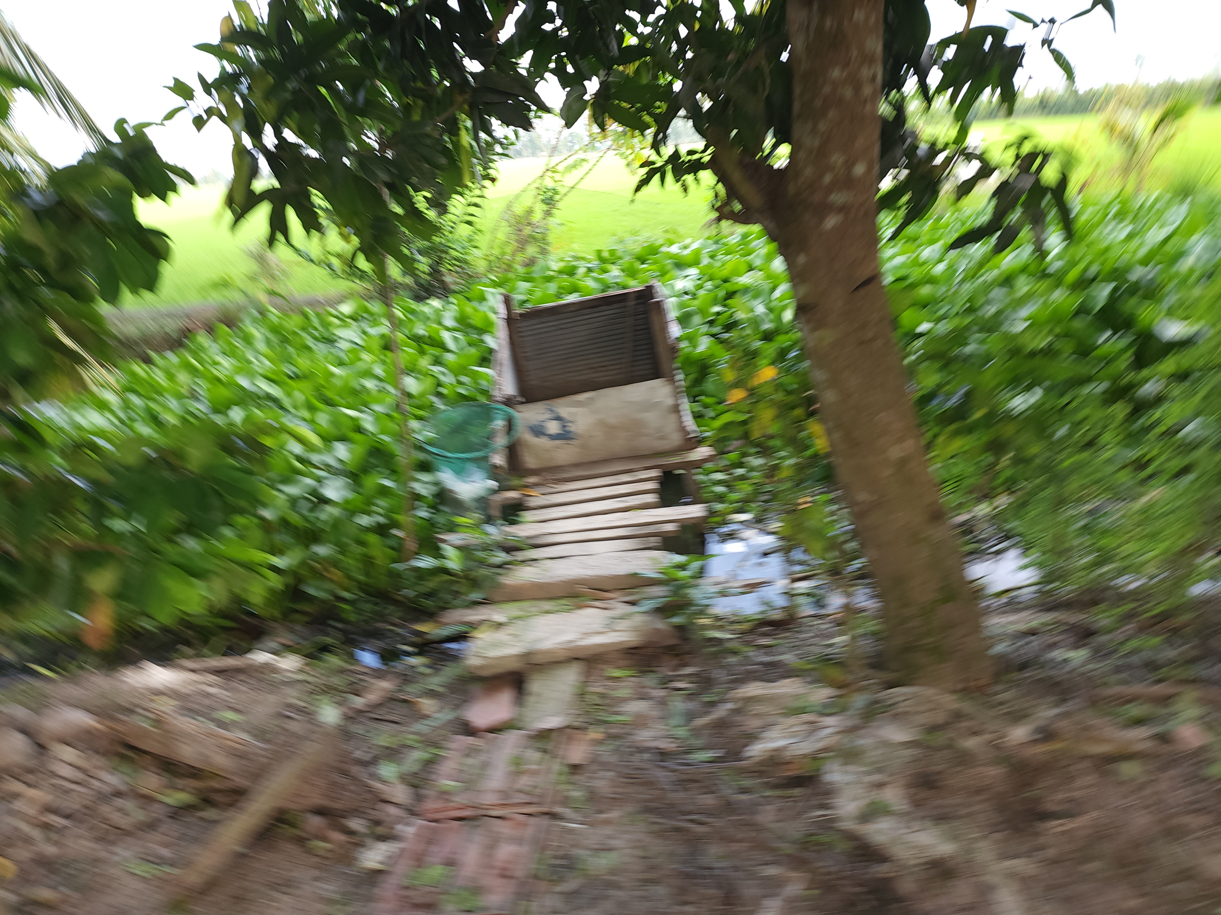 야외화장실은 부레옥잠이 자라 무성하다.