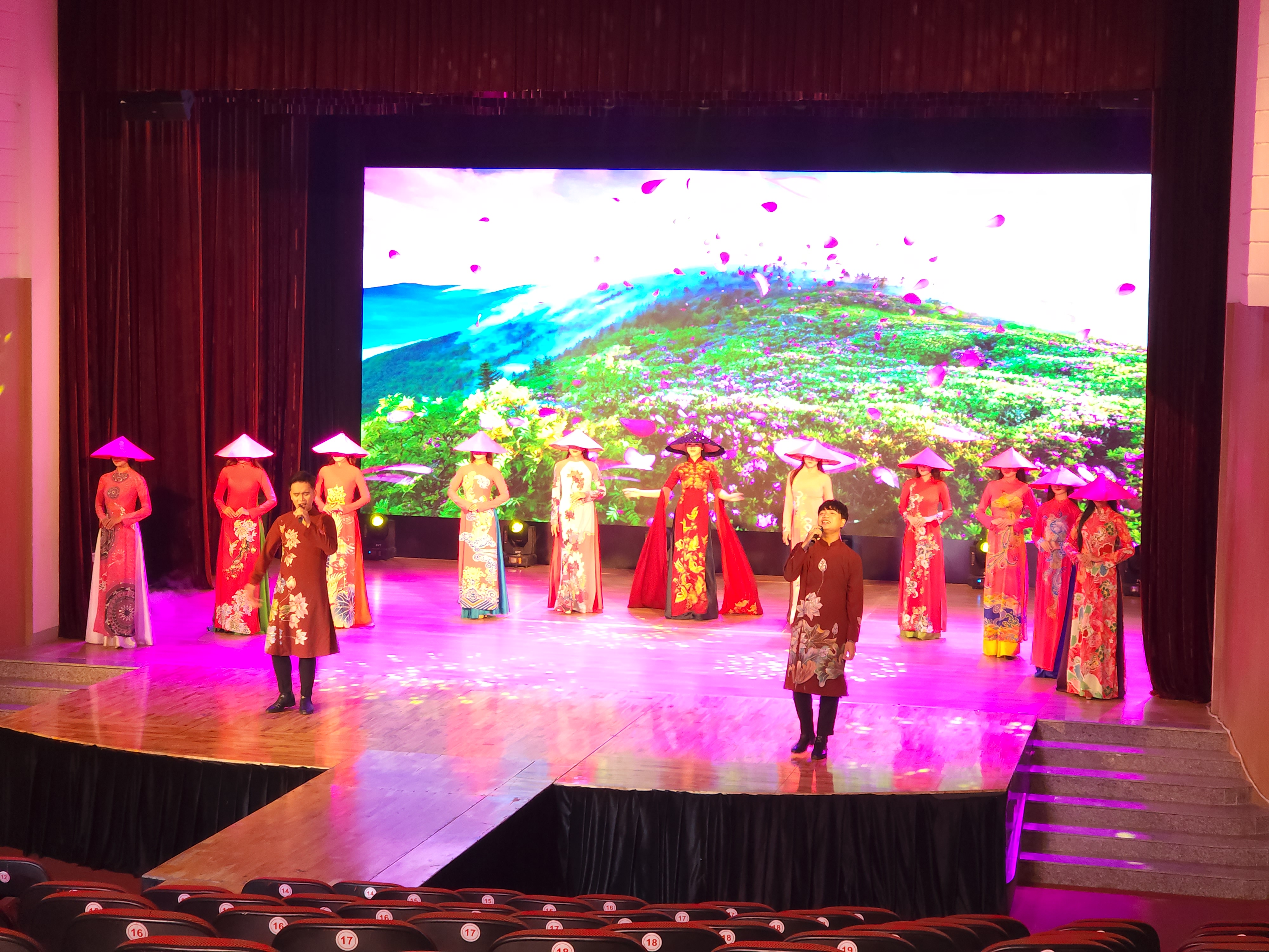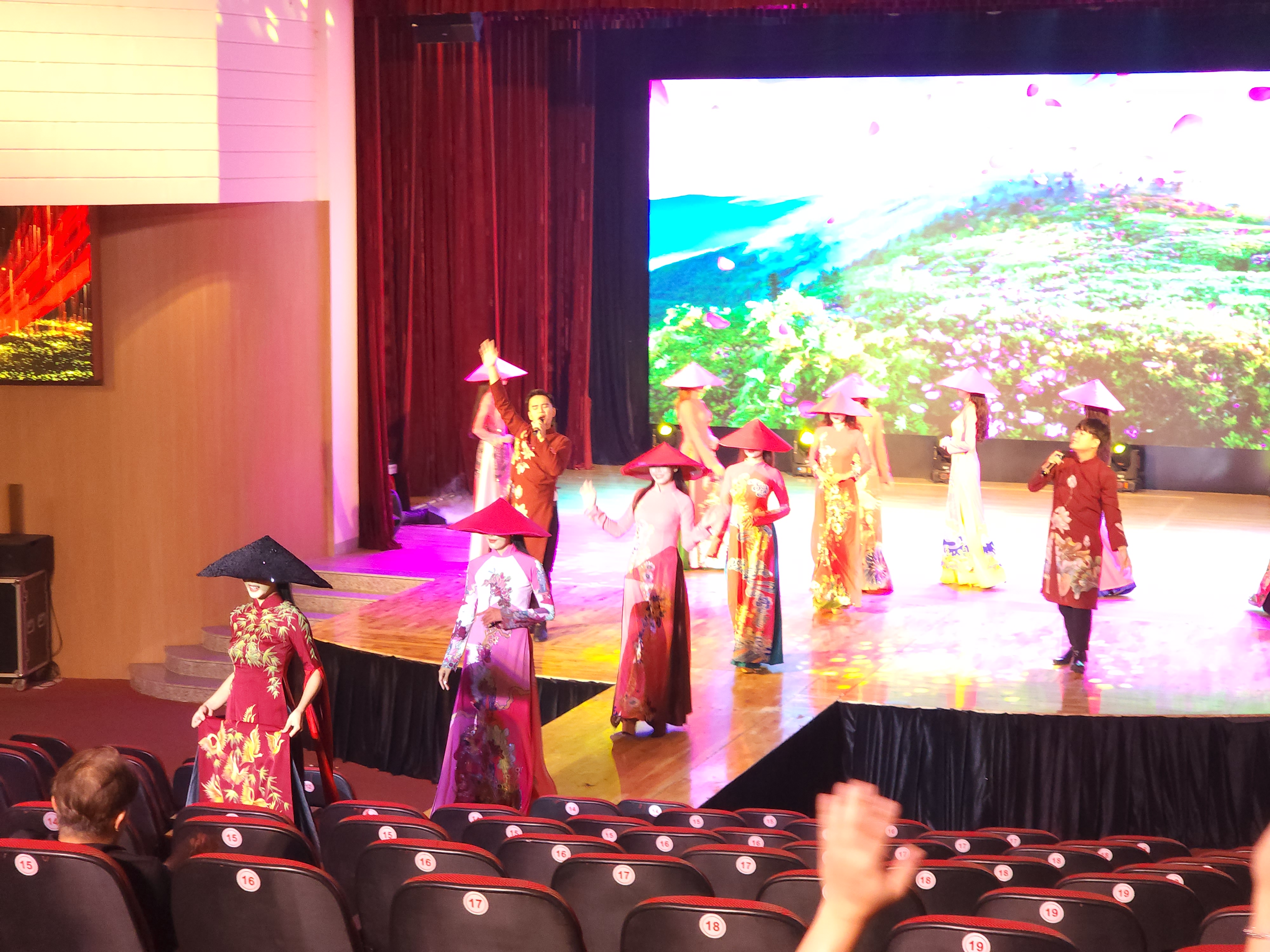 아오자이를 입고 공연중에 여가수가 노래도 한다.