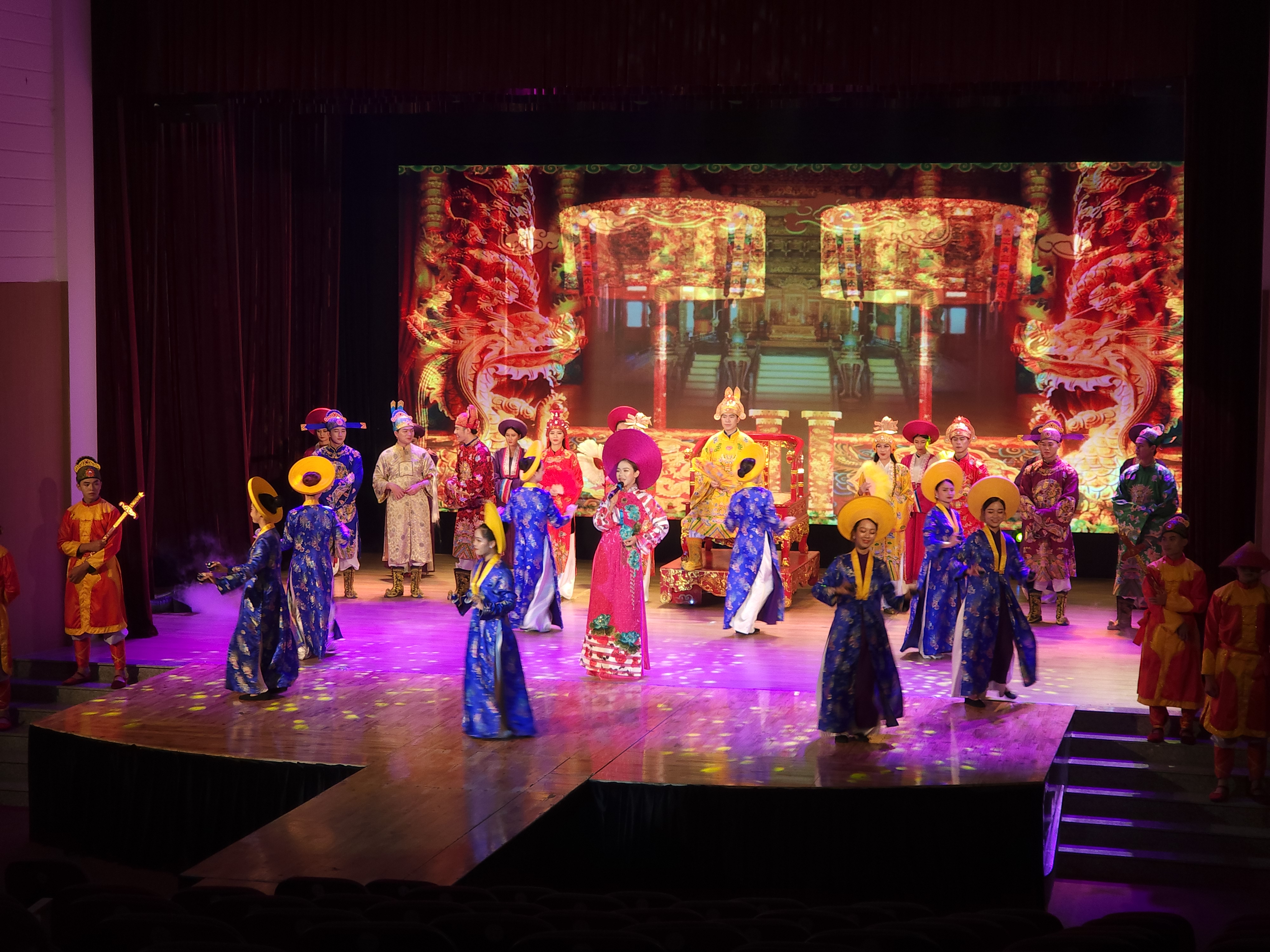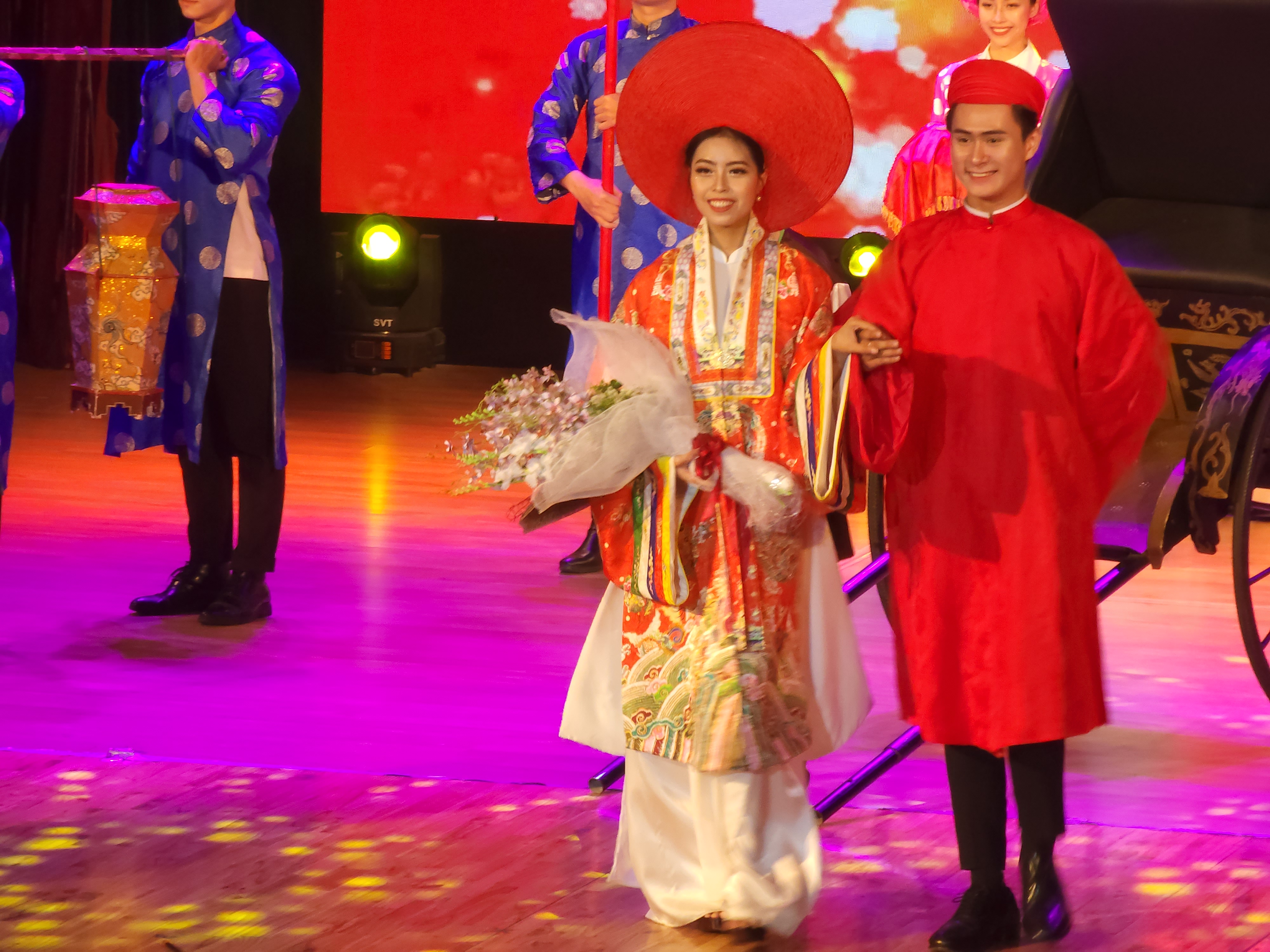 공연에 처음 등장하는 것은 응우웬왕조의 의상이다. 이때부터 아오자이를 입고 변형된다고 한다.
