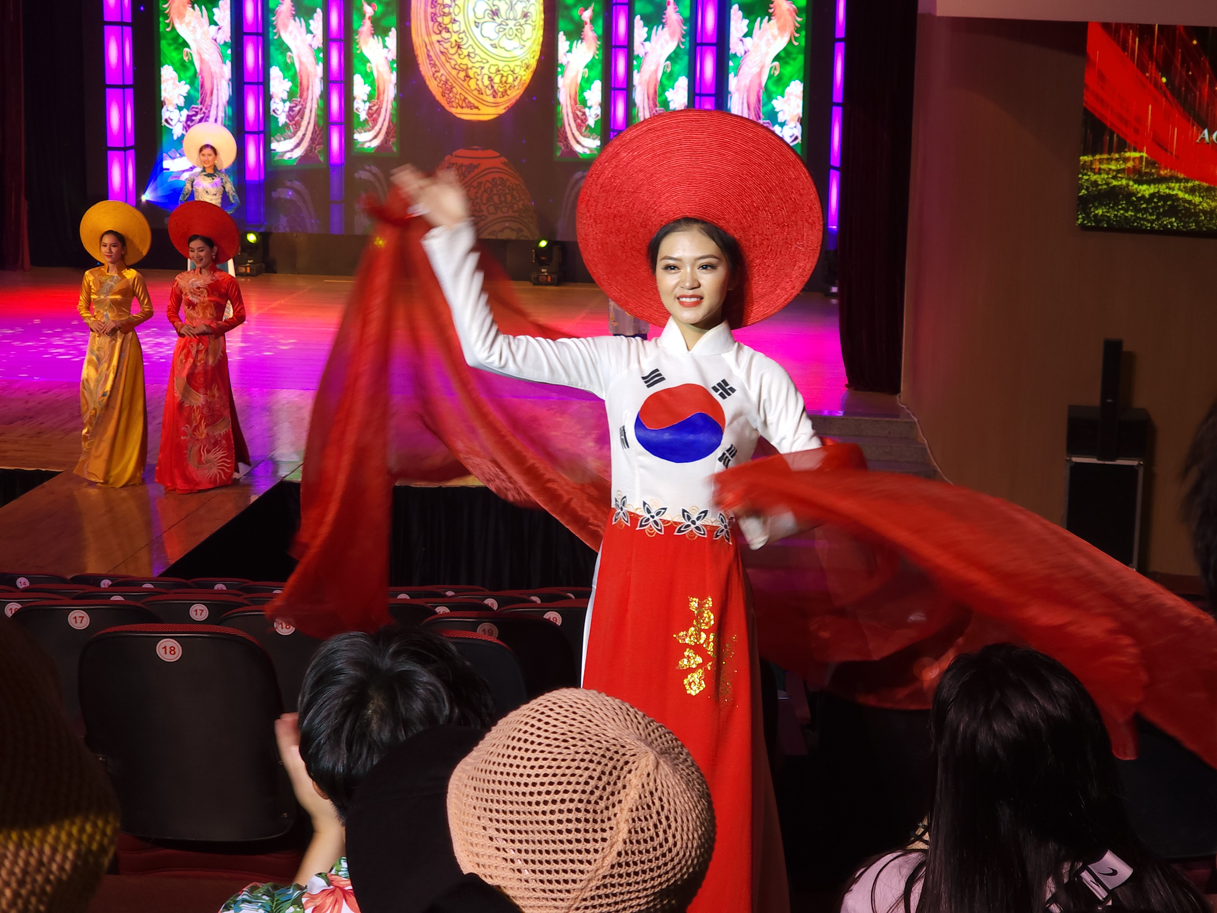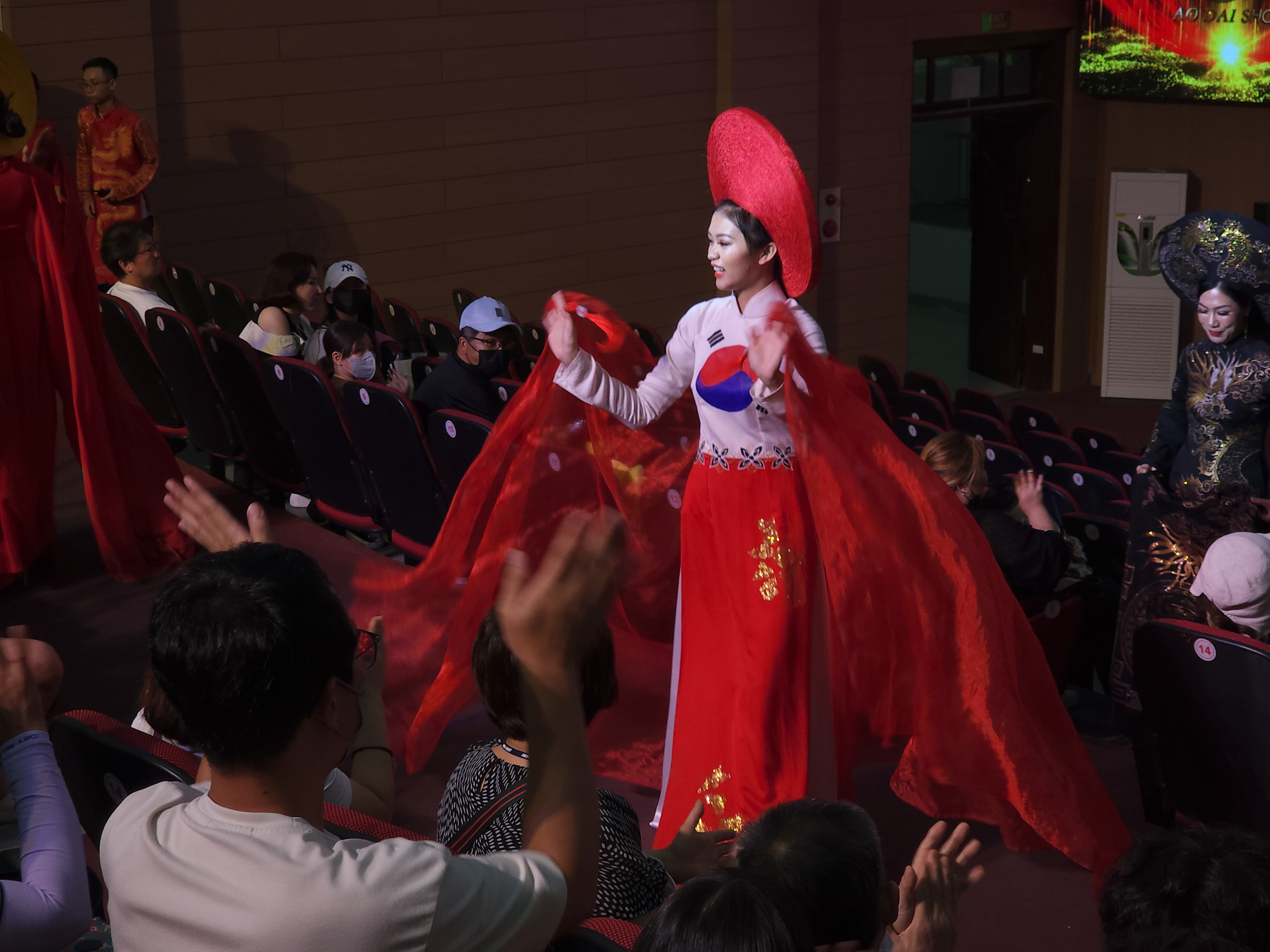 관객이 모두 한국인이어서 인지 태극기를 디자인한 아오자이와 베트남 국기인 금성홍기를 디자인한 아오자이를 입고 등장하자 박수를 치기 시작했다.