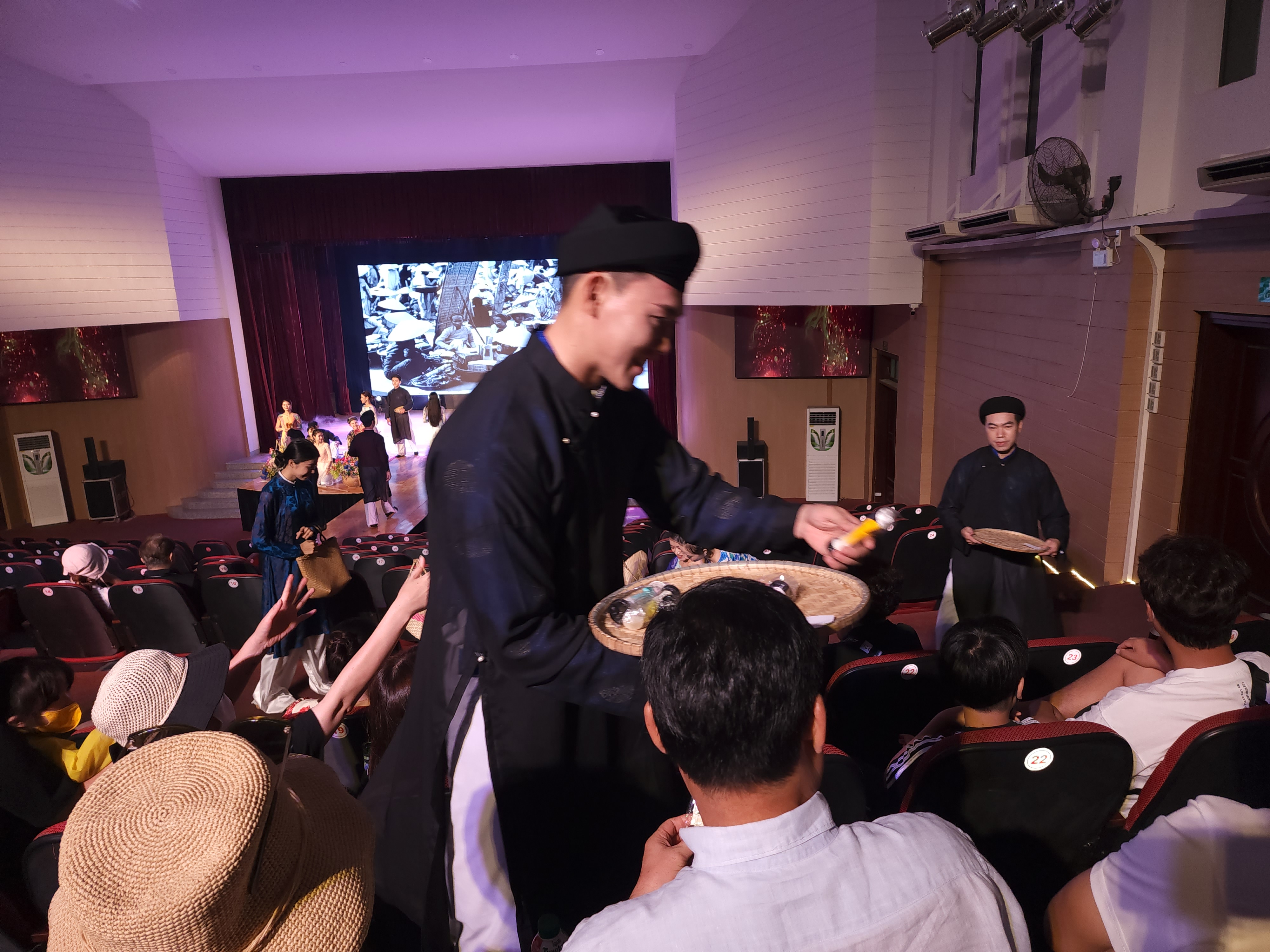 공연장 입구에서 아오자이를 입은 아가씨들이 관객들을 반기는데 다들 예쁘네요