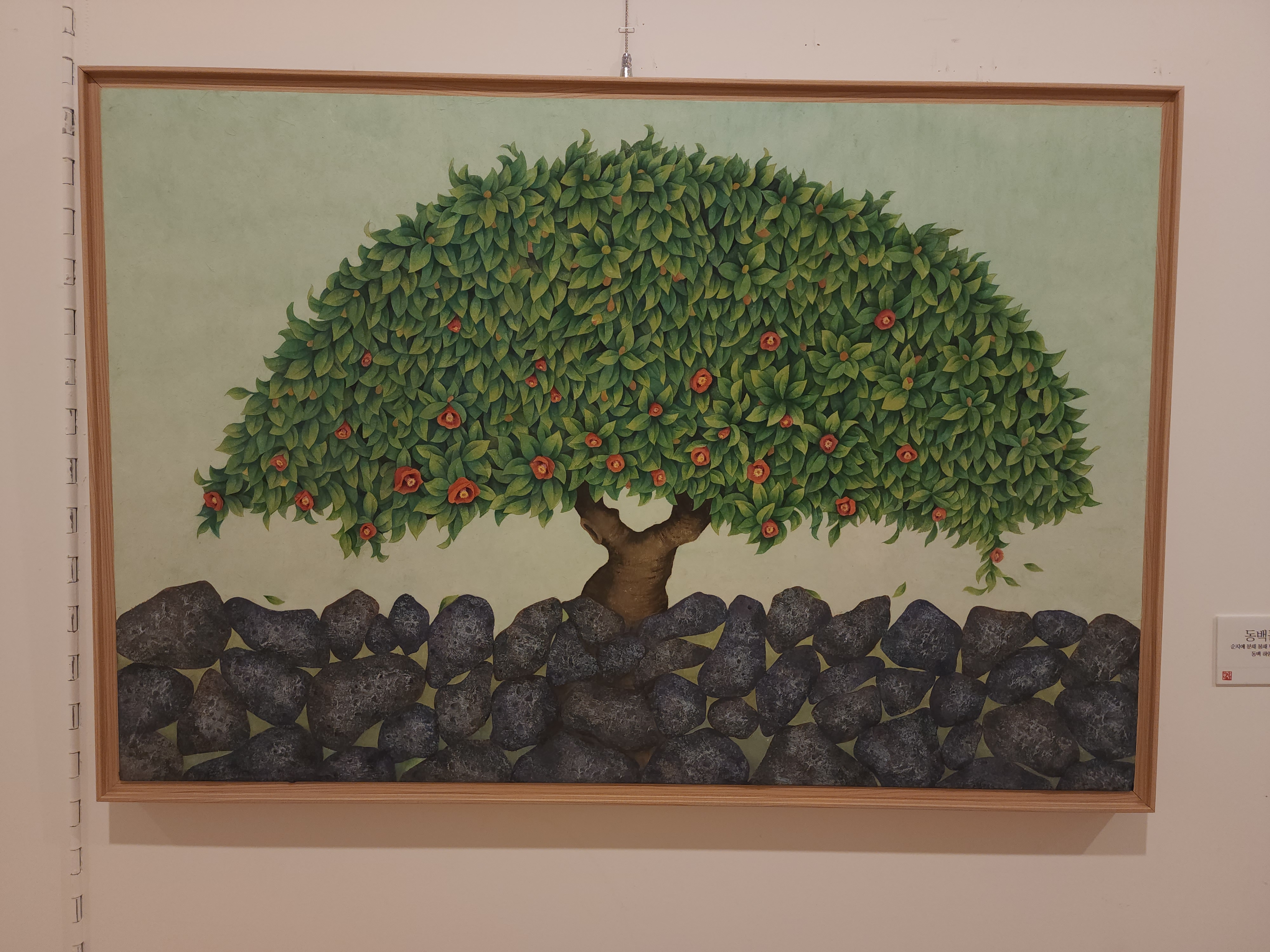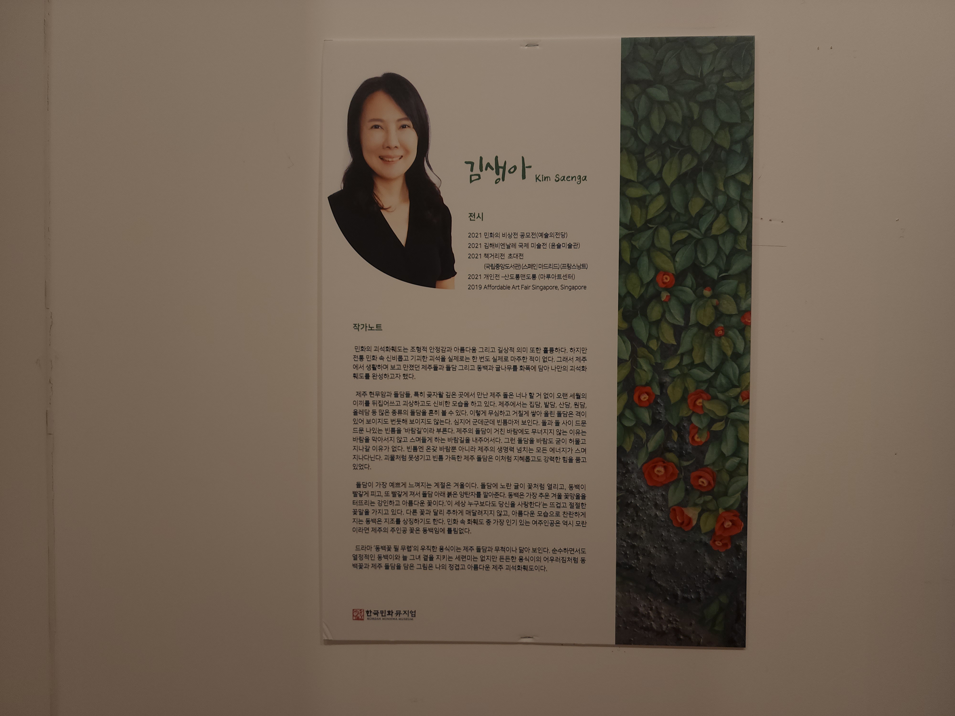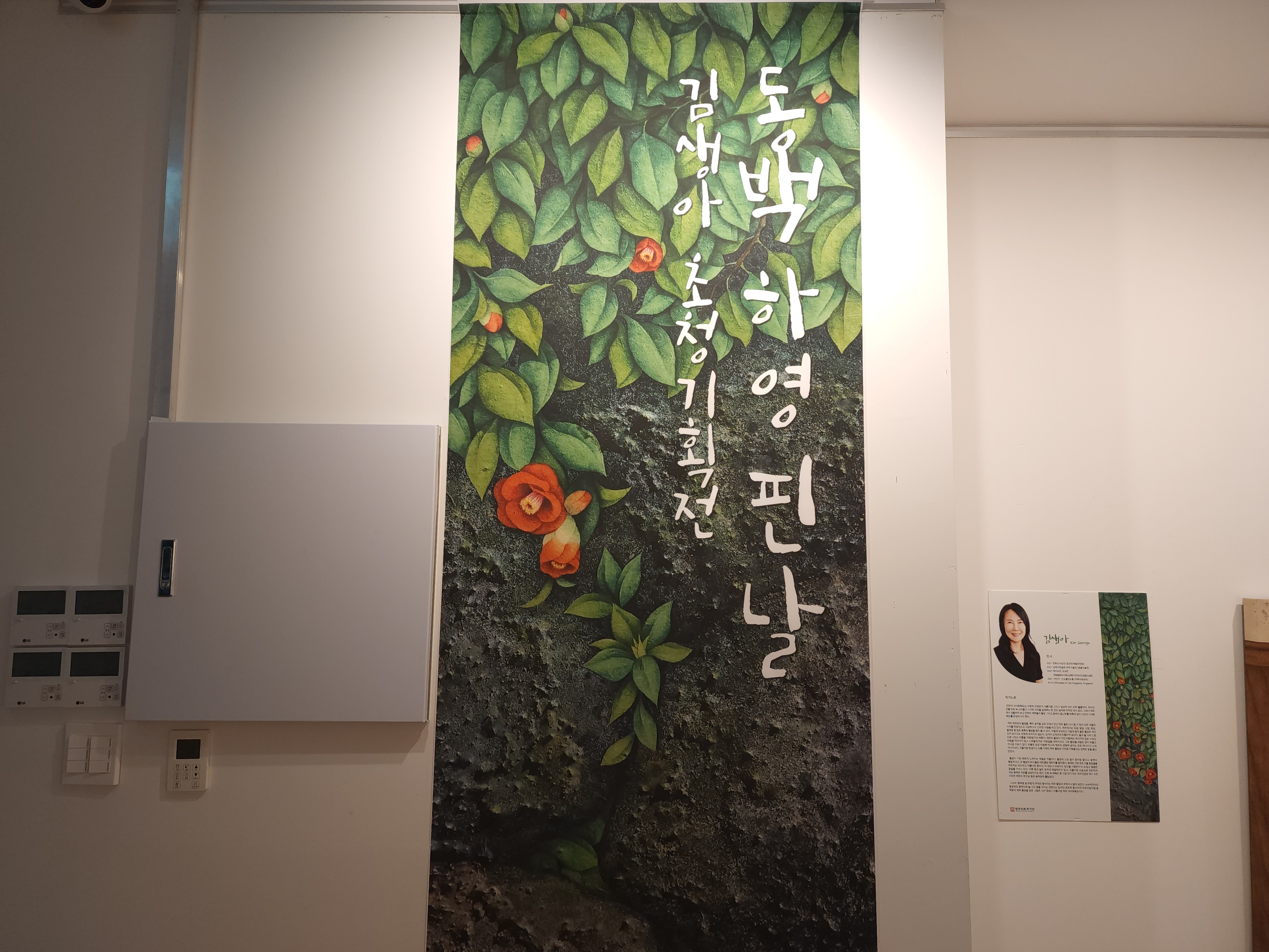초청기획전으로 김생아작가의 작품들이 "동백하영 핀 날" 이란 제목으로 전시되고 있다.