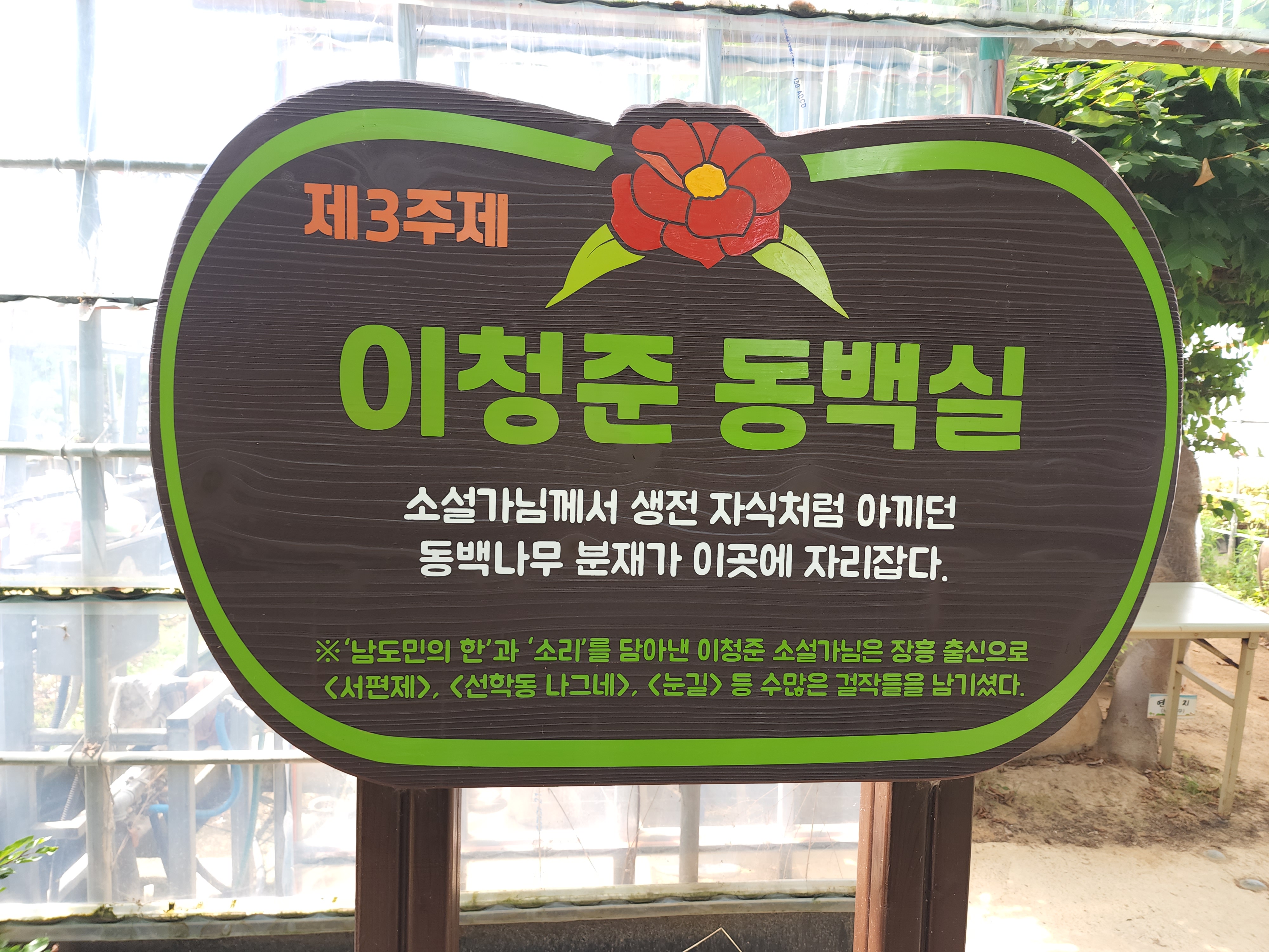 소설가 이청준께서 생전 자식처럼 아끼던 동백나무 분재가 이곳에 자라고 있다.
