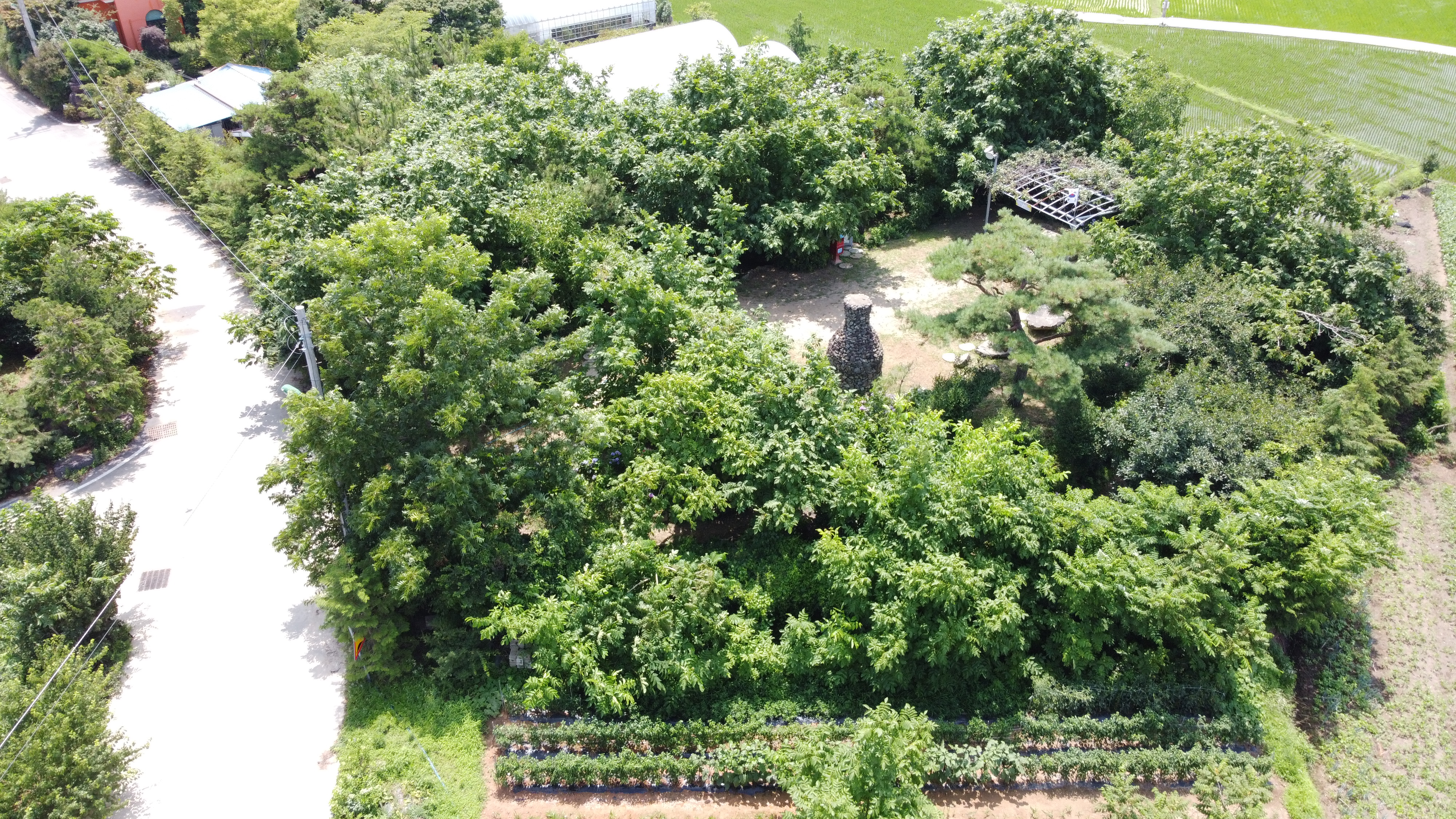 앞에 비닐하우스에는 동백나무과 소나무 분재가 있다.