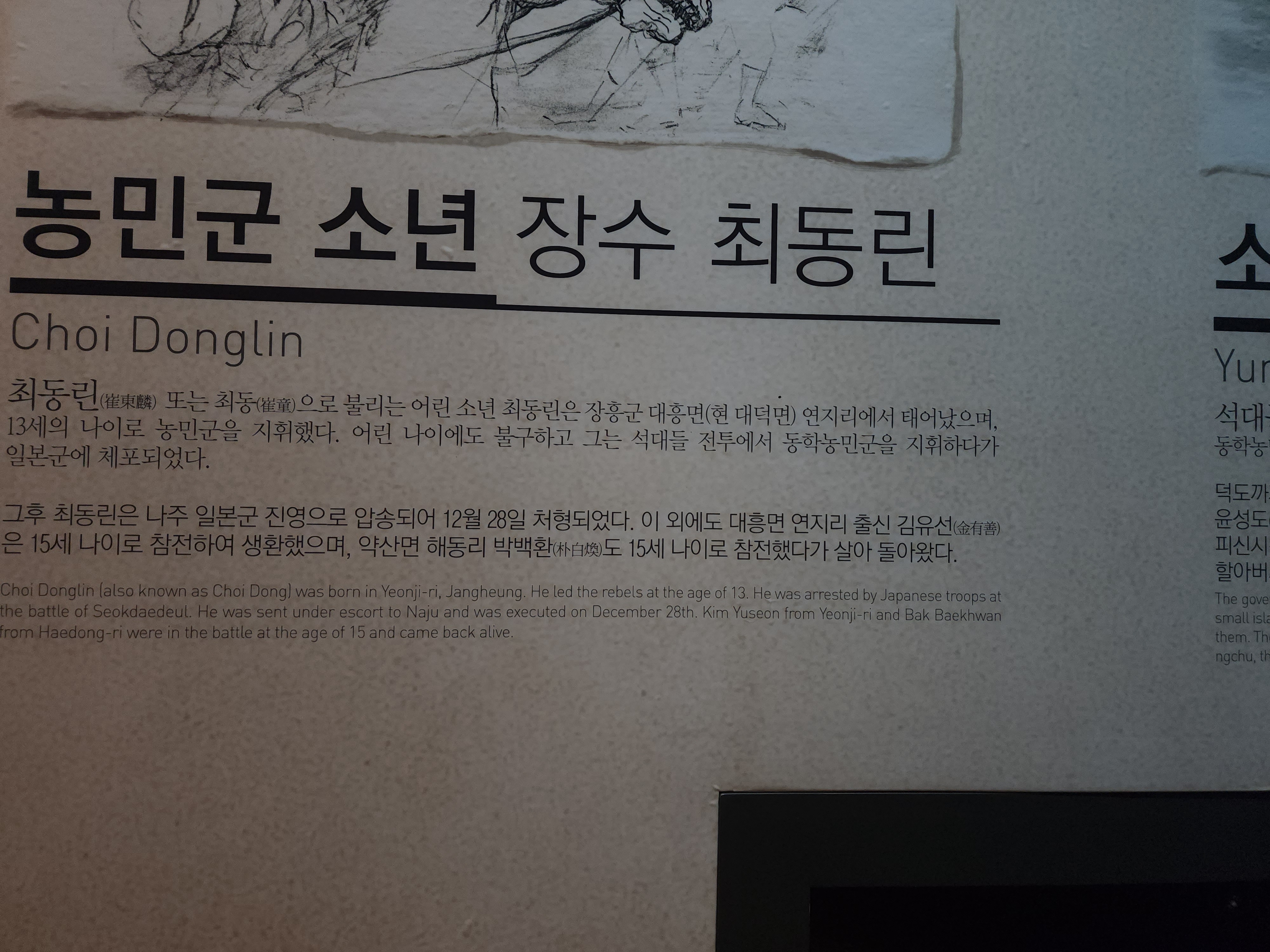 최동린 또는 최동으로 불리는 어린 소년 최동린은 장흥군 대흥면(현 대덕면) 연지리에서 태어났으며 13세 나이로 농민군을 지휘했다. 어린 나이에도 불구하고 그는 석대들 전투에서 동학농민군을 지휘하다가 일본군에게 체포됐다.