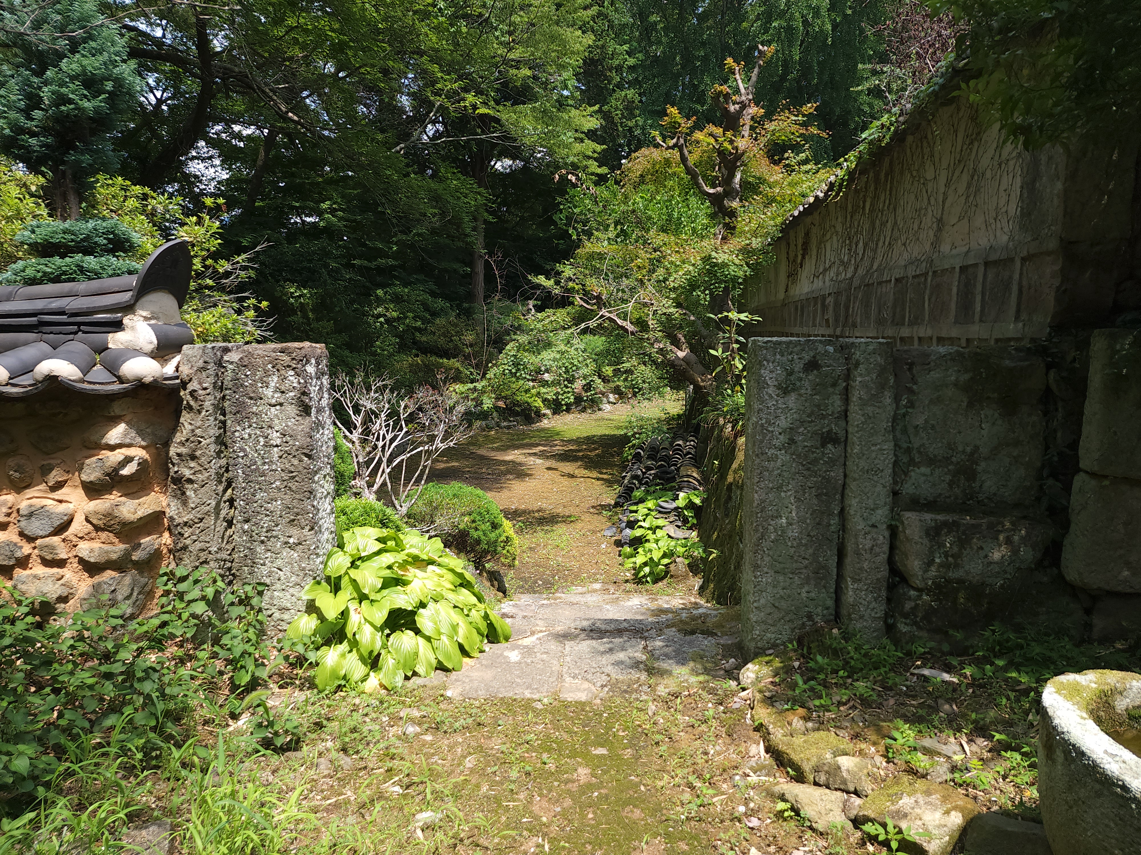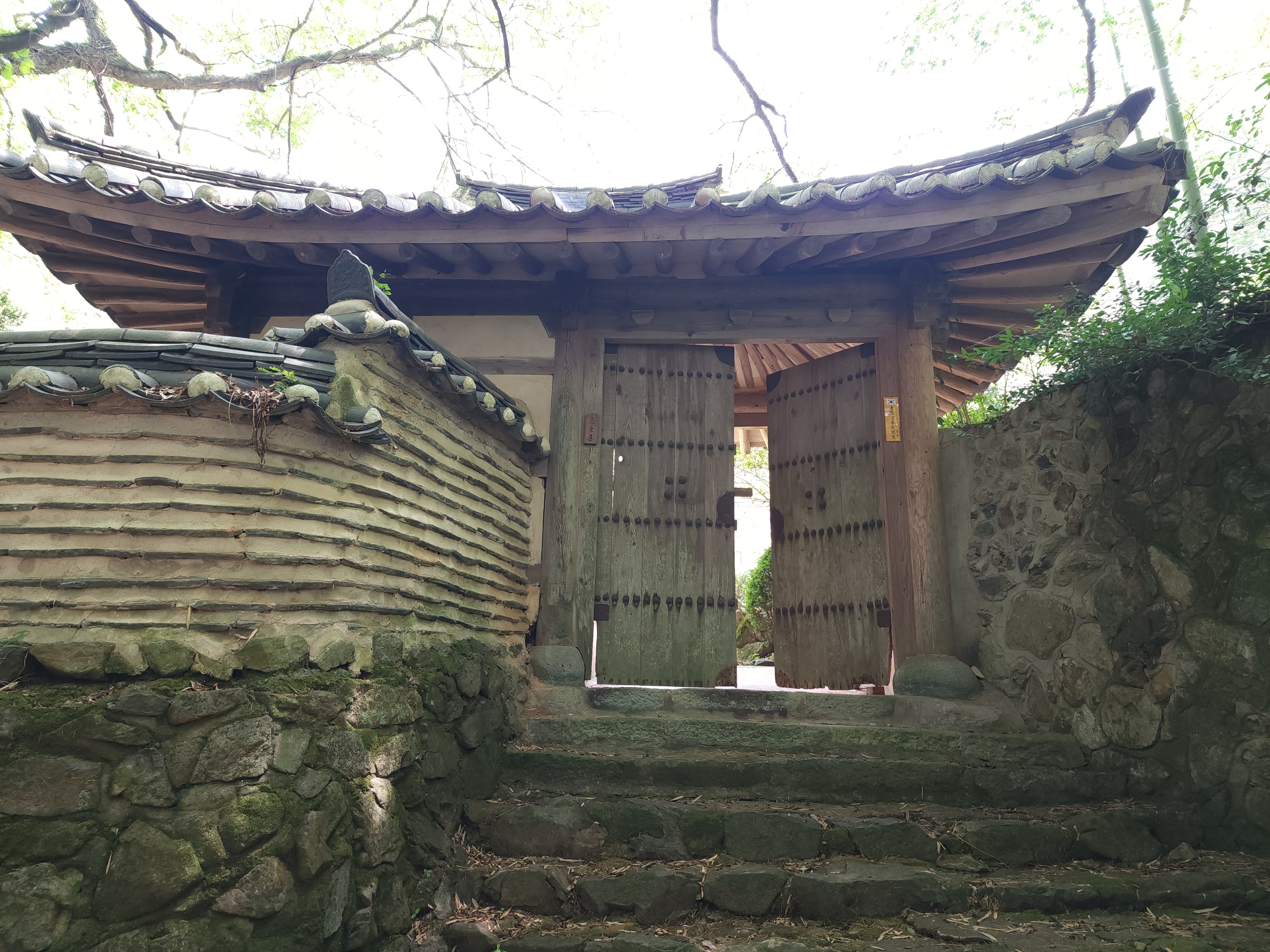 무계고택에 들어가는 대문이다. 경사가 있어서 계단이 되어 있다.