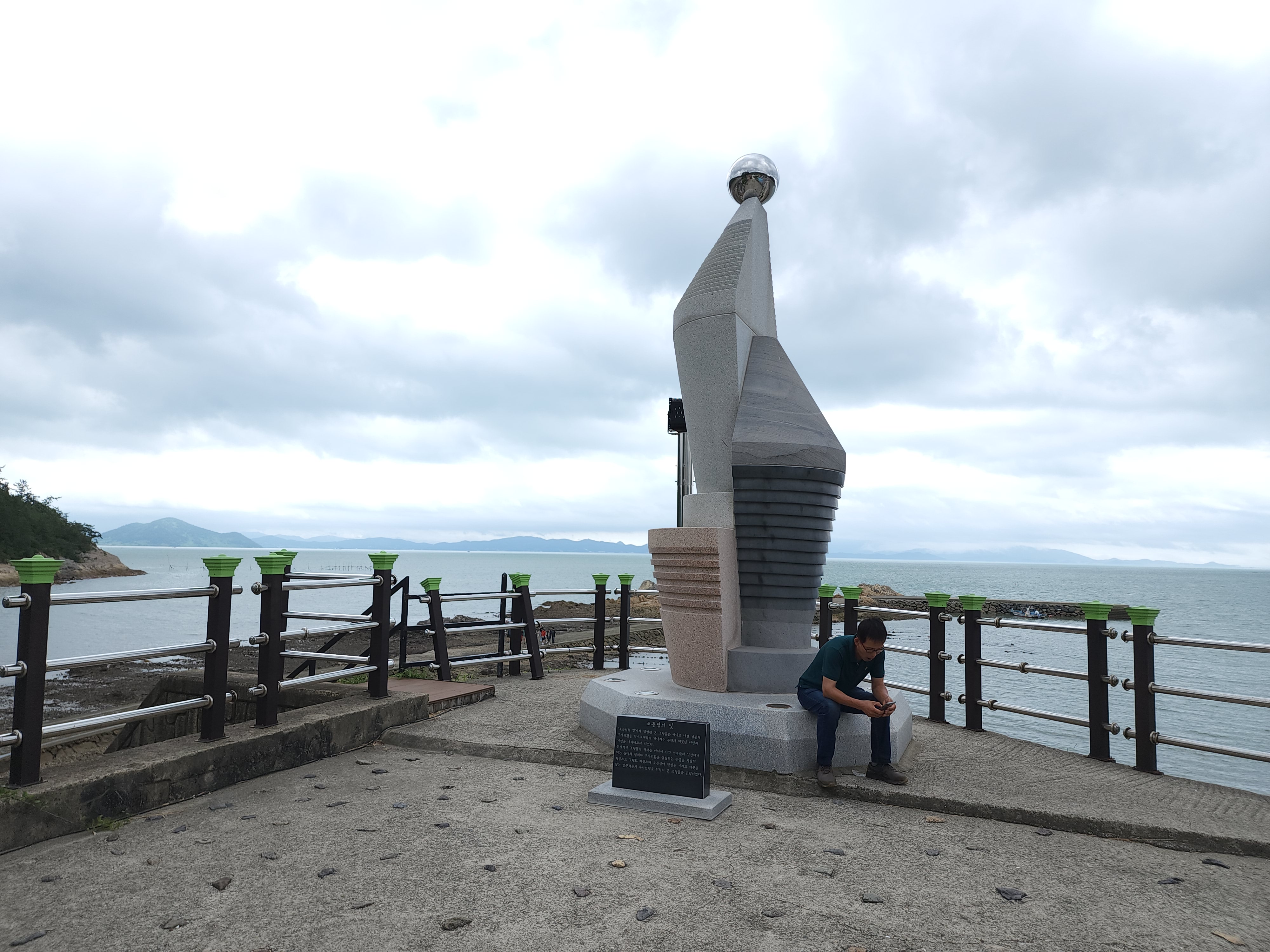 소등섬의 빛 조형물은 오른쪽에 정자가 있고 거기서 계단을 올라서 소등섬의 빛 조형물에 갈 수 있다.