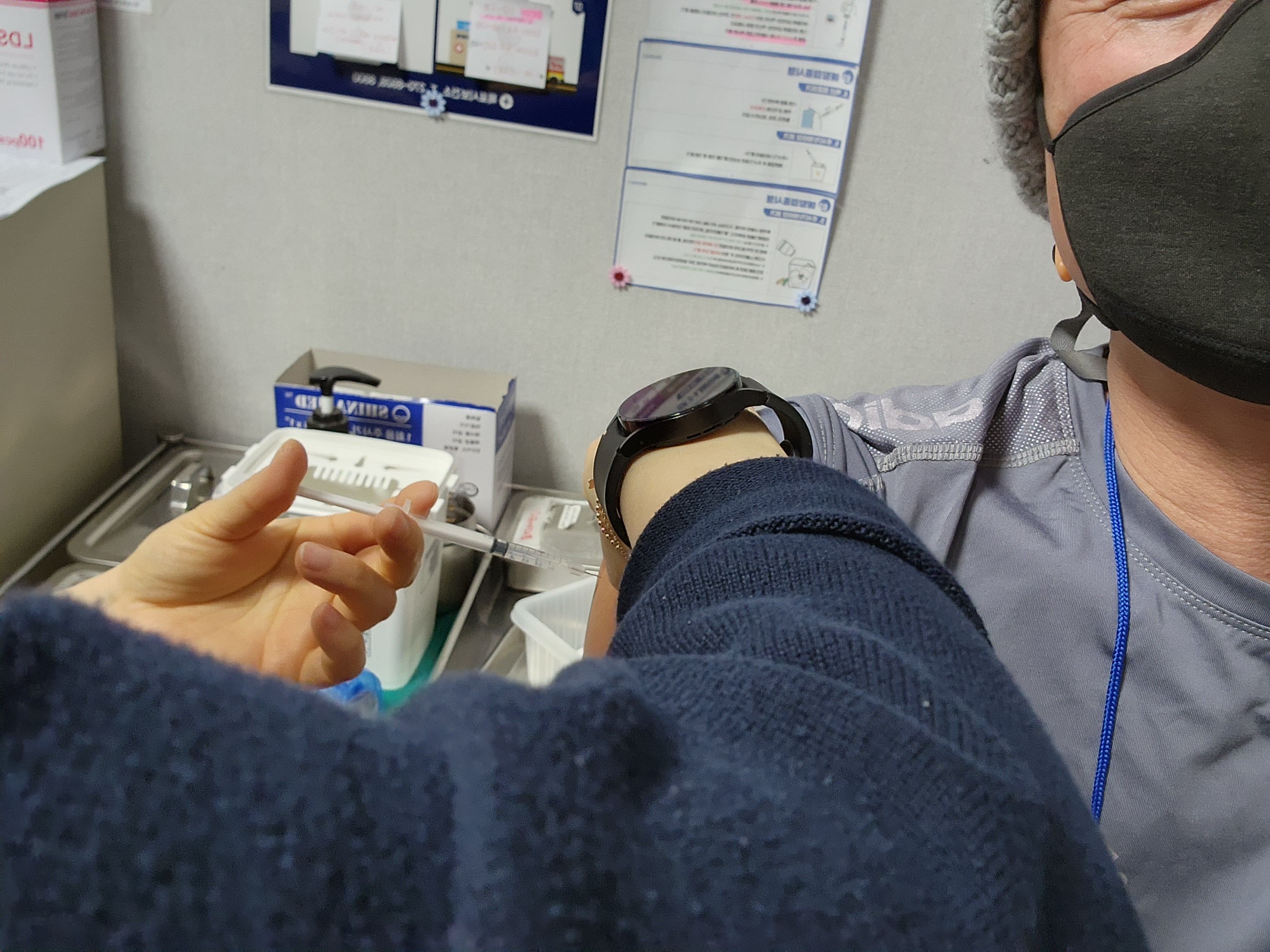 오늘은 다음날인데 주사를 맞은 왼쪽팔에 근육통이 조금 있다.