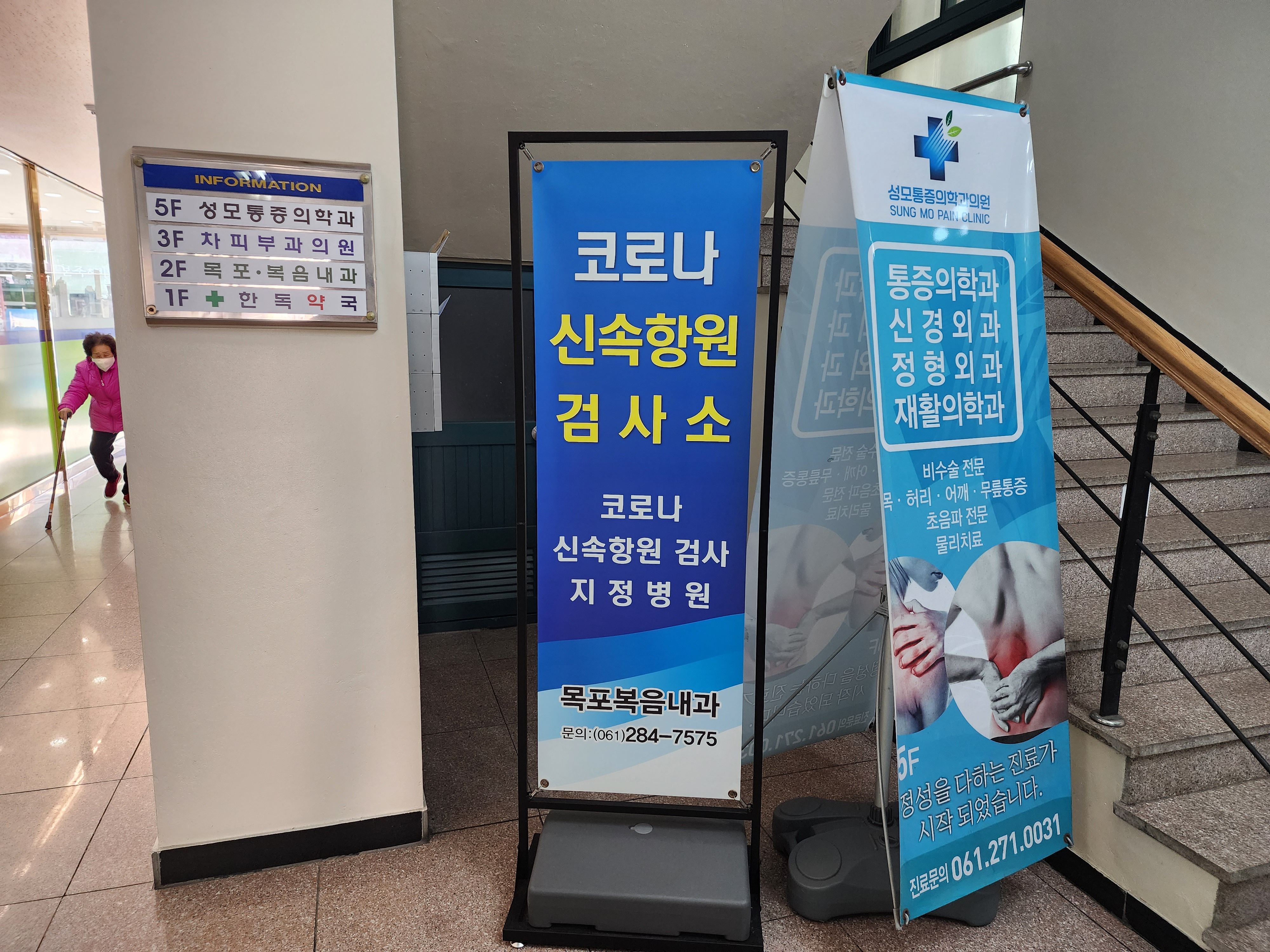 목포복음내과는 2층에 있다. 계단이나 엘리베이터를 이용하면 된다.