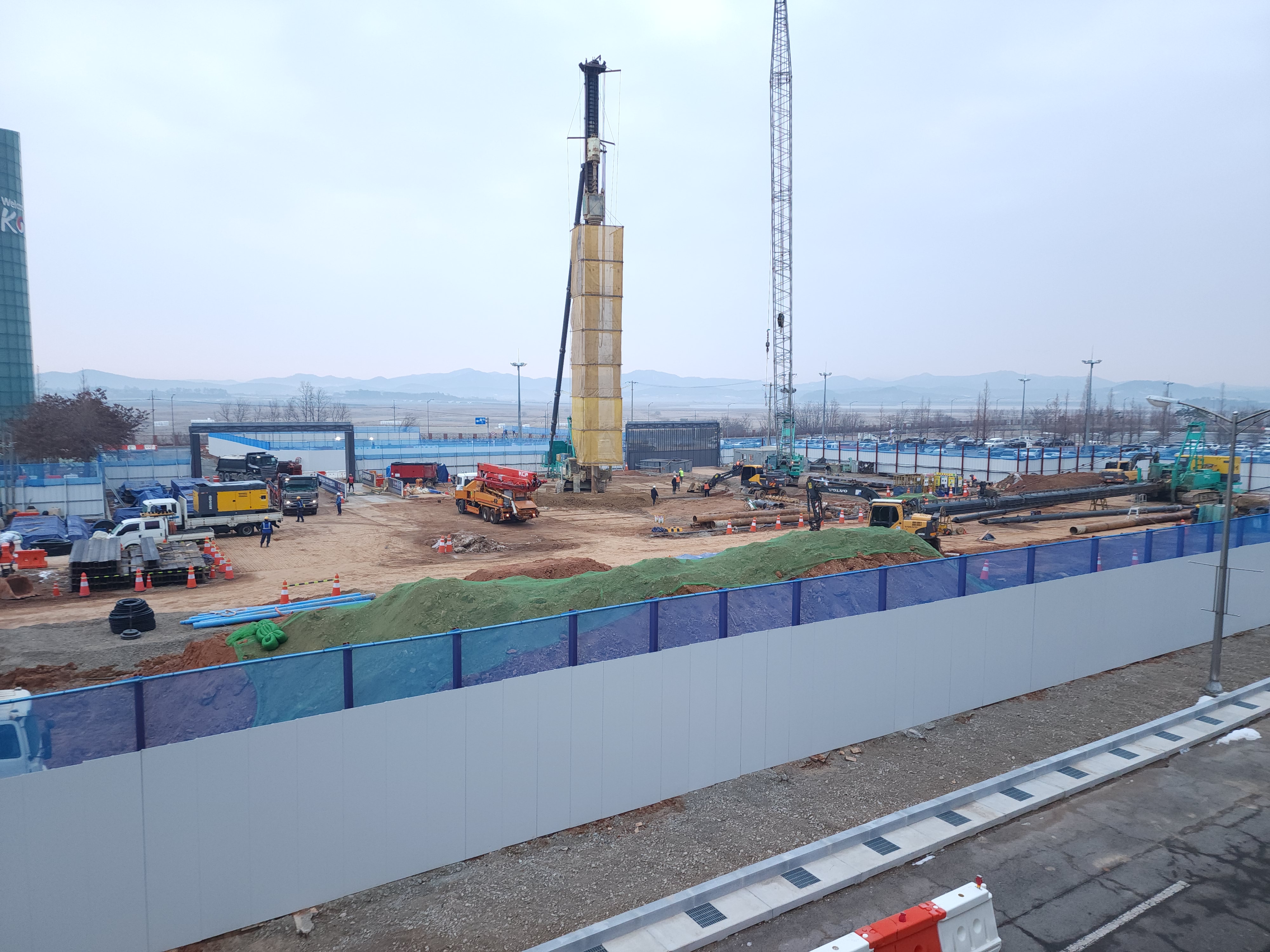 공항 주차장 가운데에 공사를 하고 있었다. 고속화철도공사이었다.