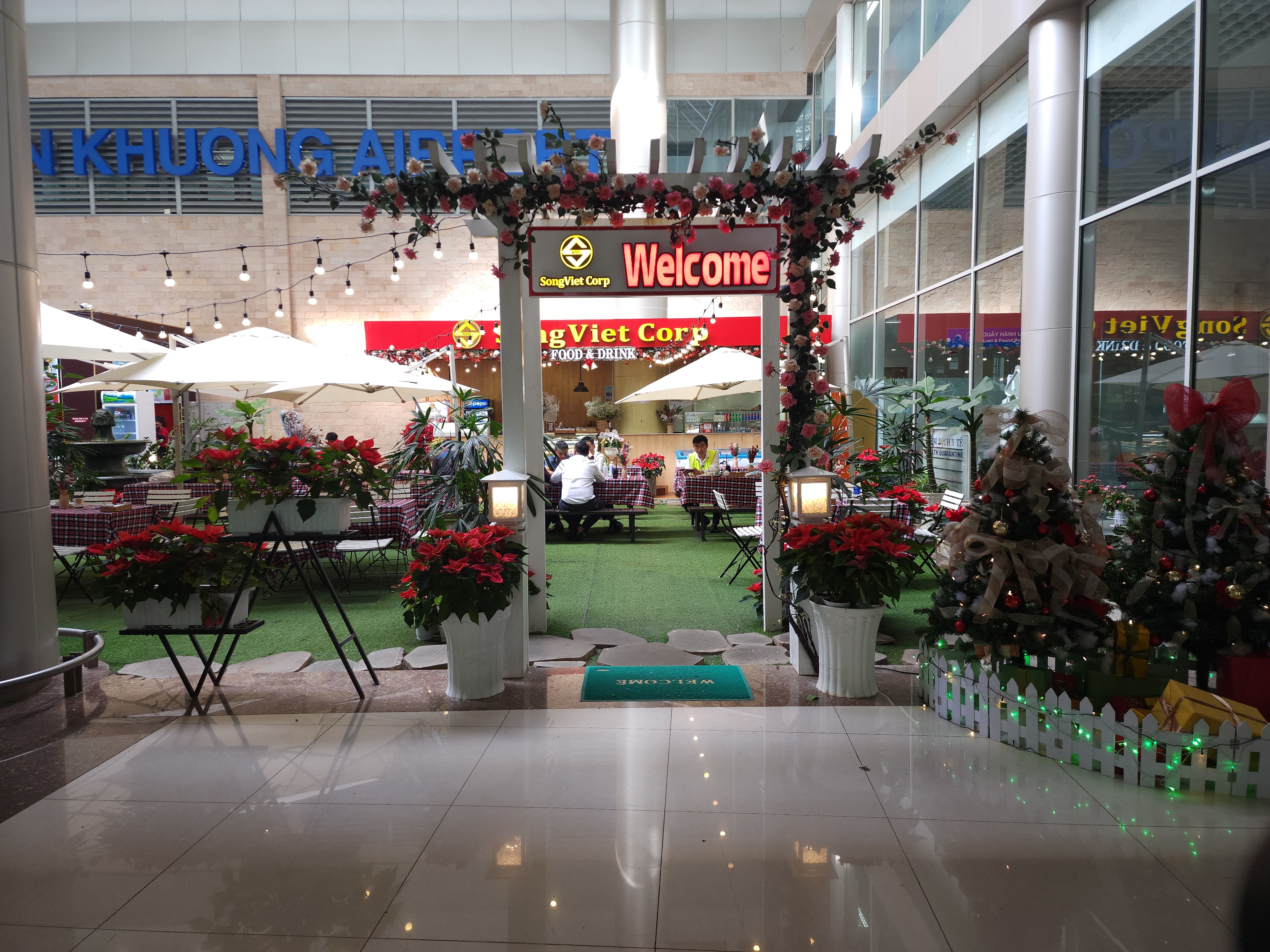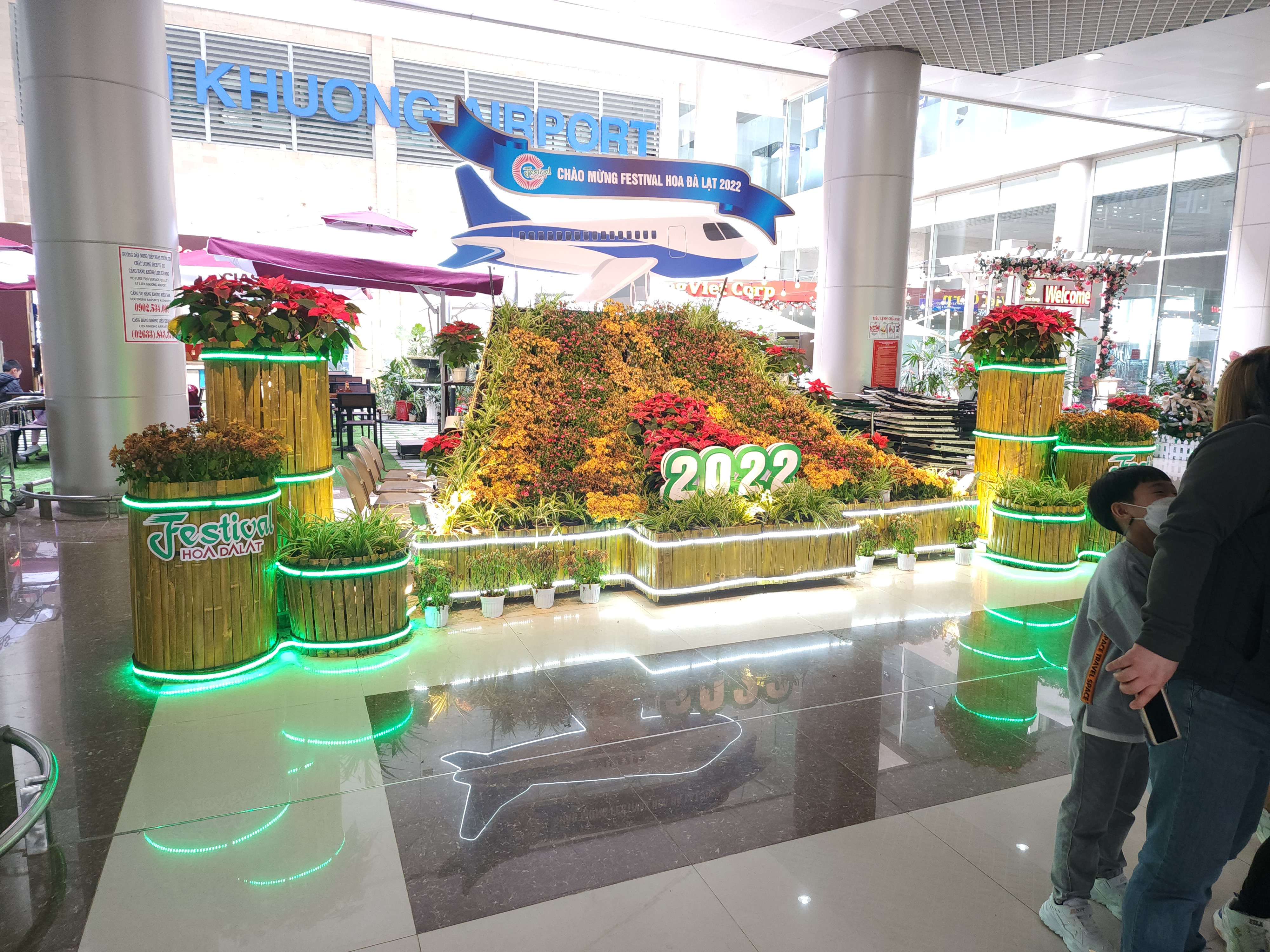 베트남 달랏 리엔크엉 국제공항 내부에는 연말분위기를 느낄 수 있는 꽃장식이 있었다.