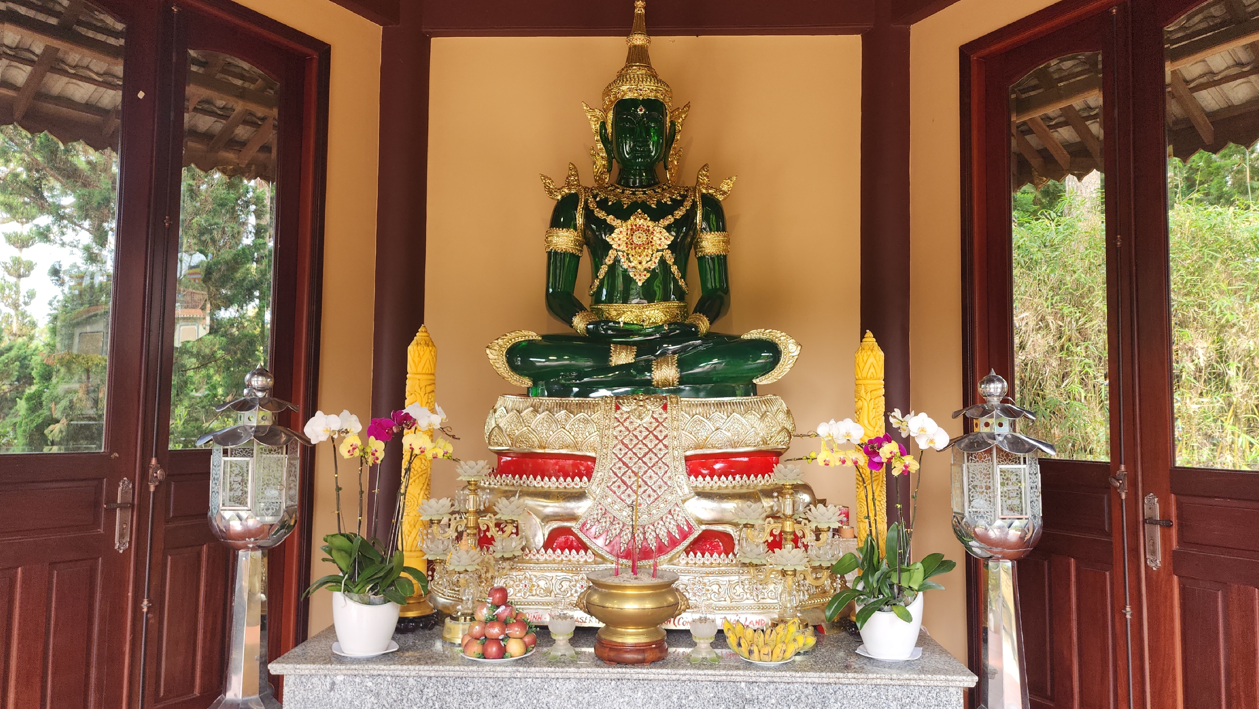 죽림선원 안쪽에 갔더니 푸른 옥으로괸 부처상이 있었다.