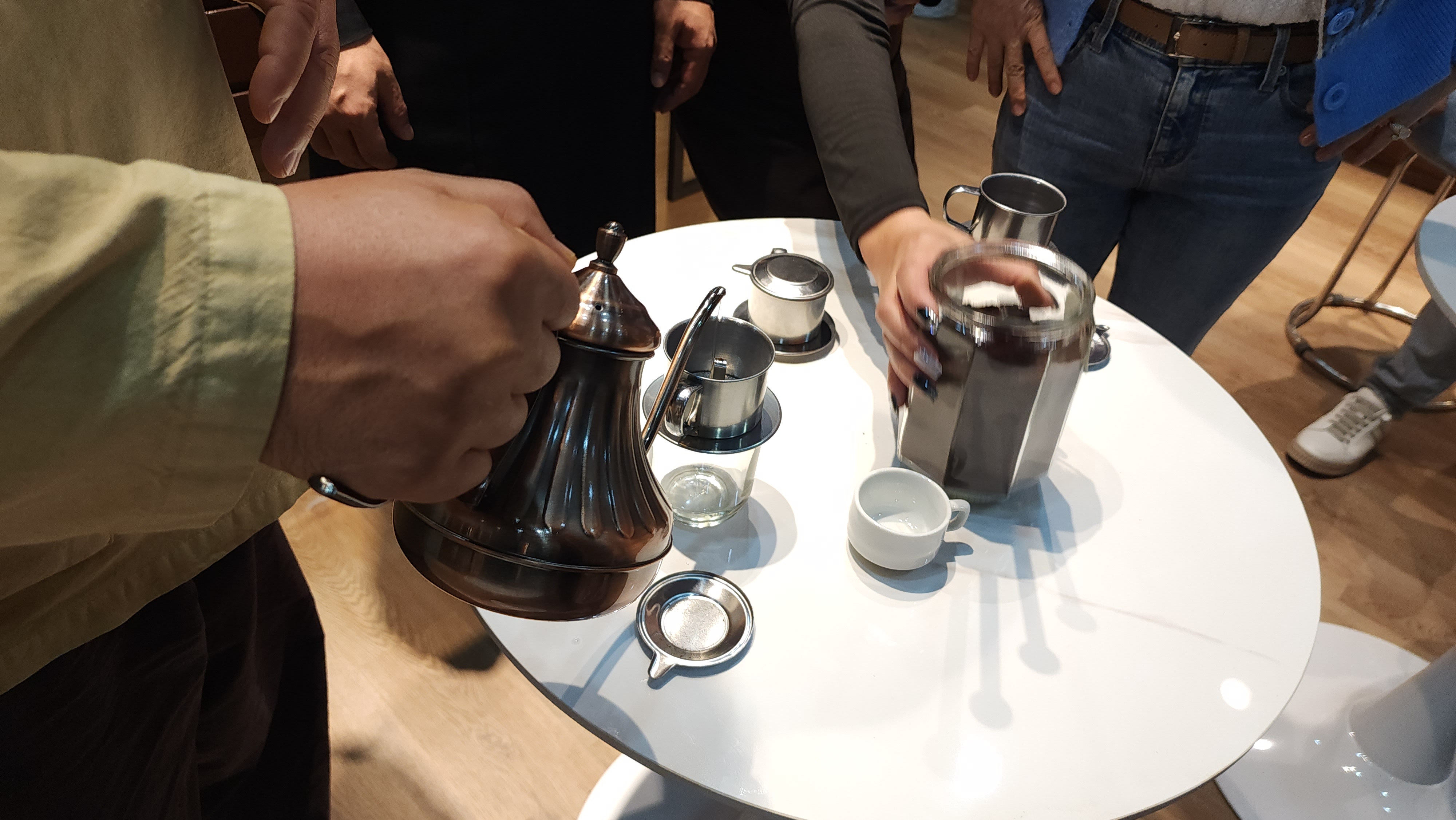 손님중에 2명을 초대해서 커피 내리는 것을 직접 시연하게 한다.