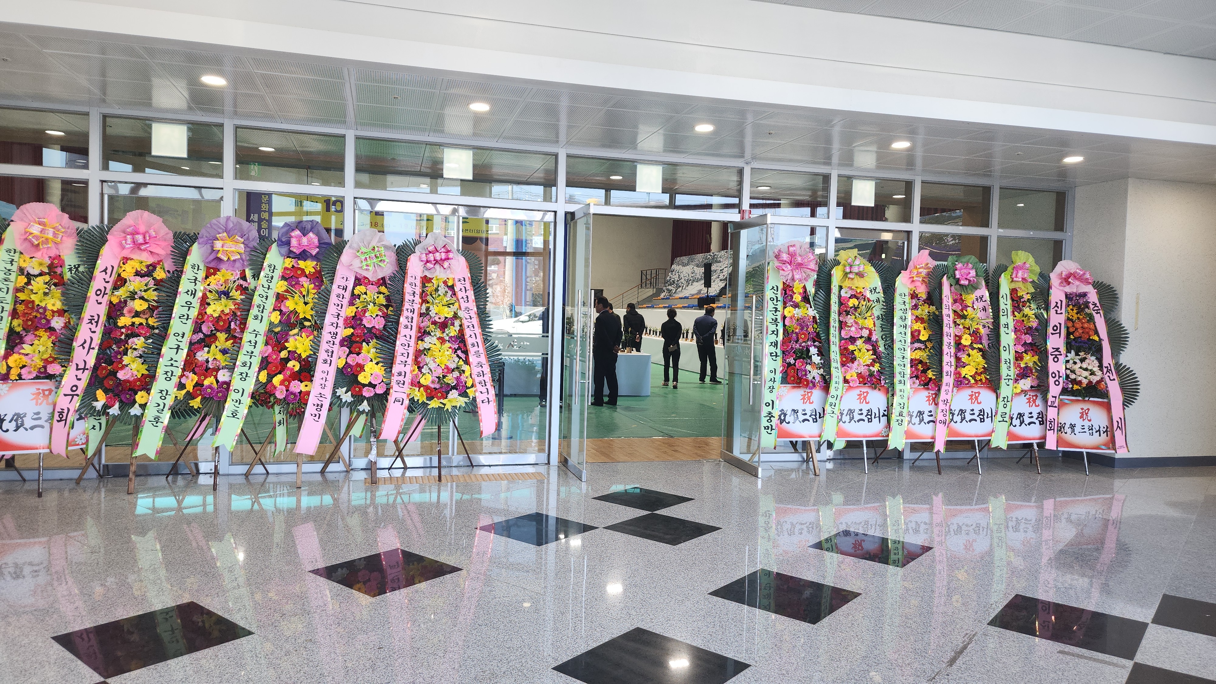 행사장 입구에는 화환이 있어서 행사가 성황리에 열리고 있는 것을 보여줬다.