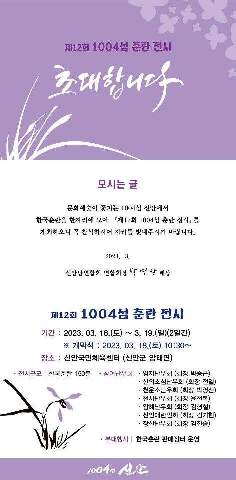 문화예술이 꽃피는 1004섬 신안에서 한국춘란을 한자리에 모아 제12회 1004섬 춘란 전시를 개최했다.