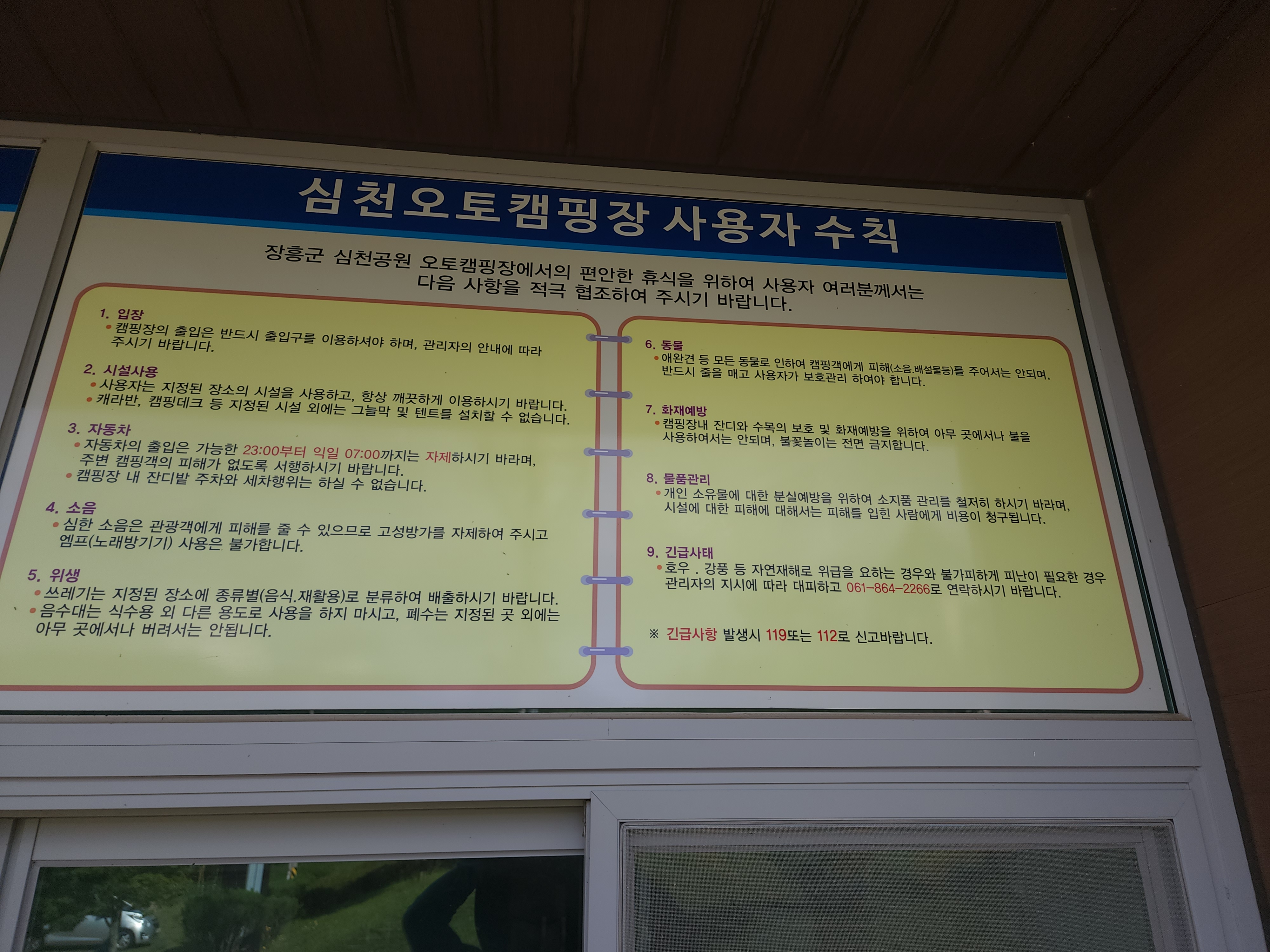 그리고 심천공원에는 편의점과 정남진체육과, 오토캠핑장, 축구경기장, 청소년야영장이 같이 있어서 체육활동도 할 수 있는 곳이다.
