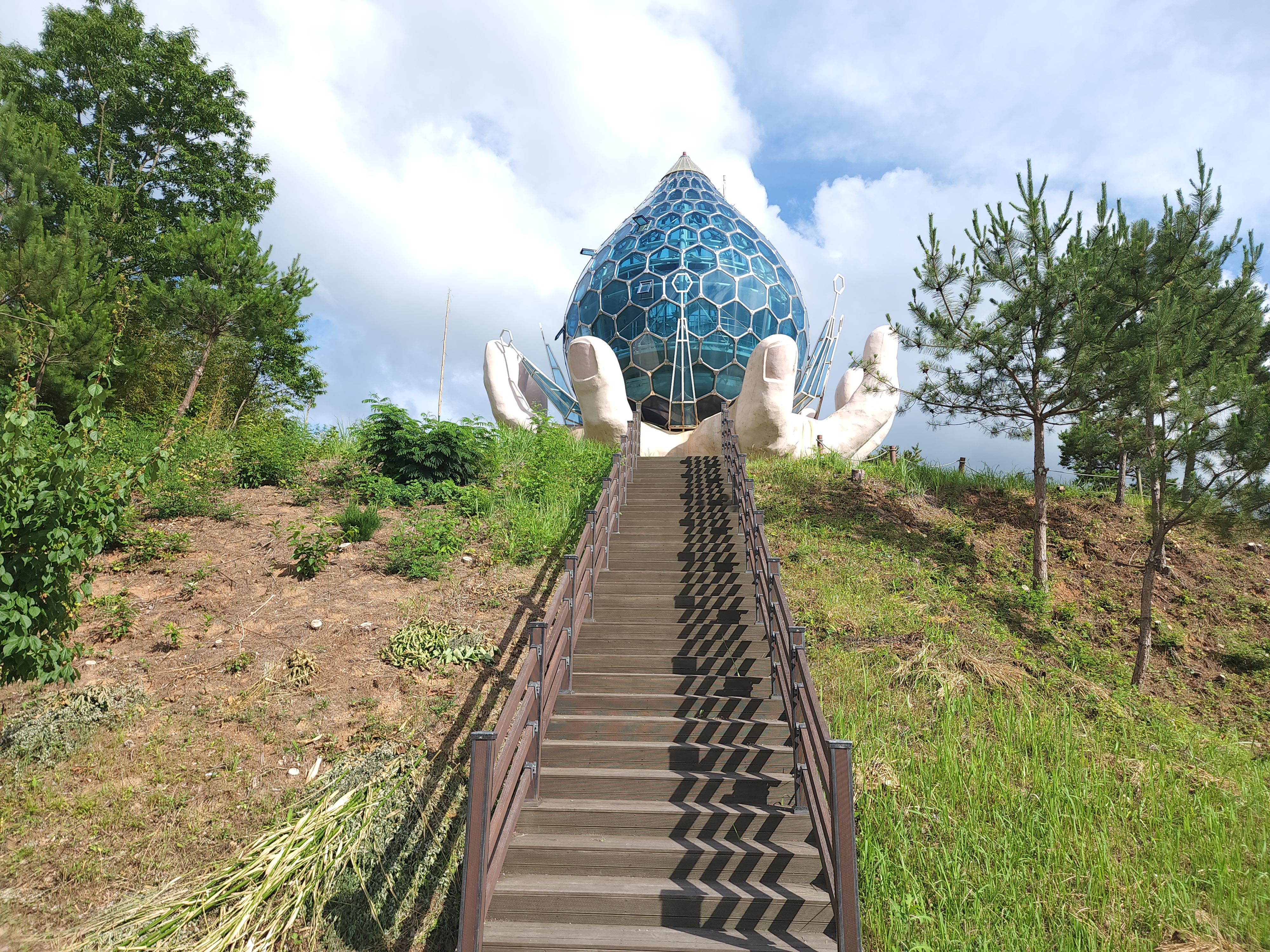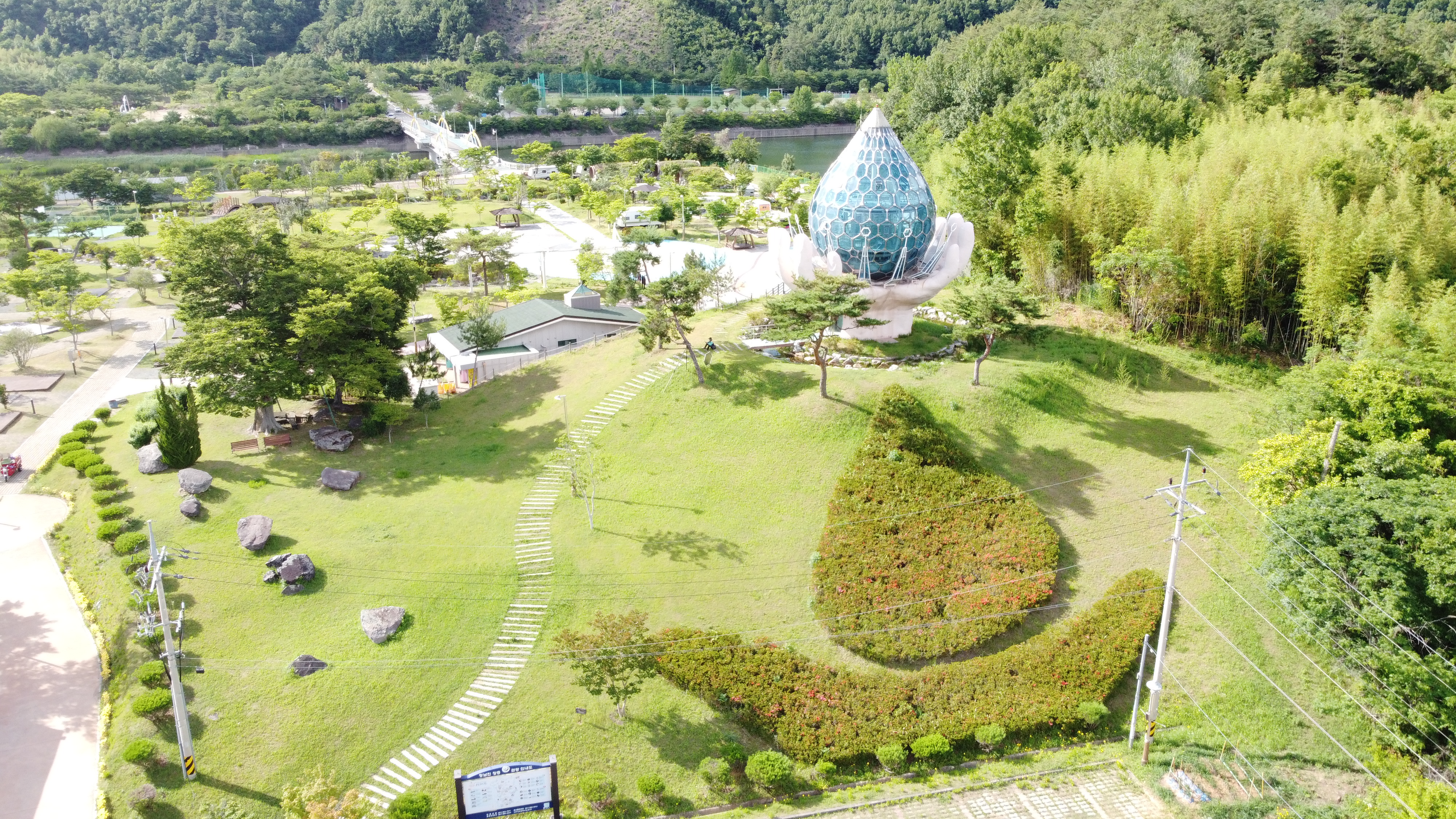 심천공원의 상징물이 된 물방울모양의 전망대는 아름답게 지었다.