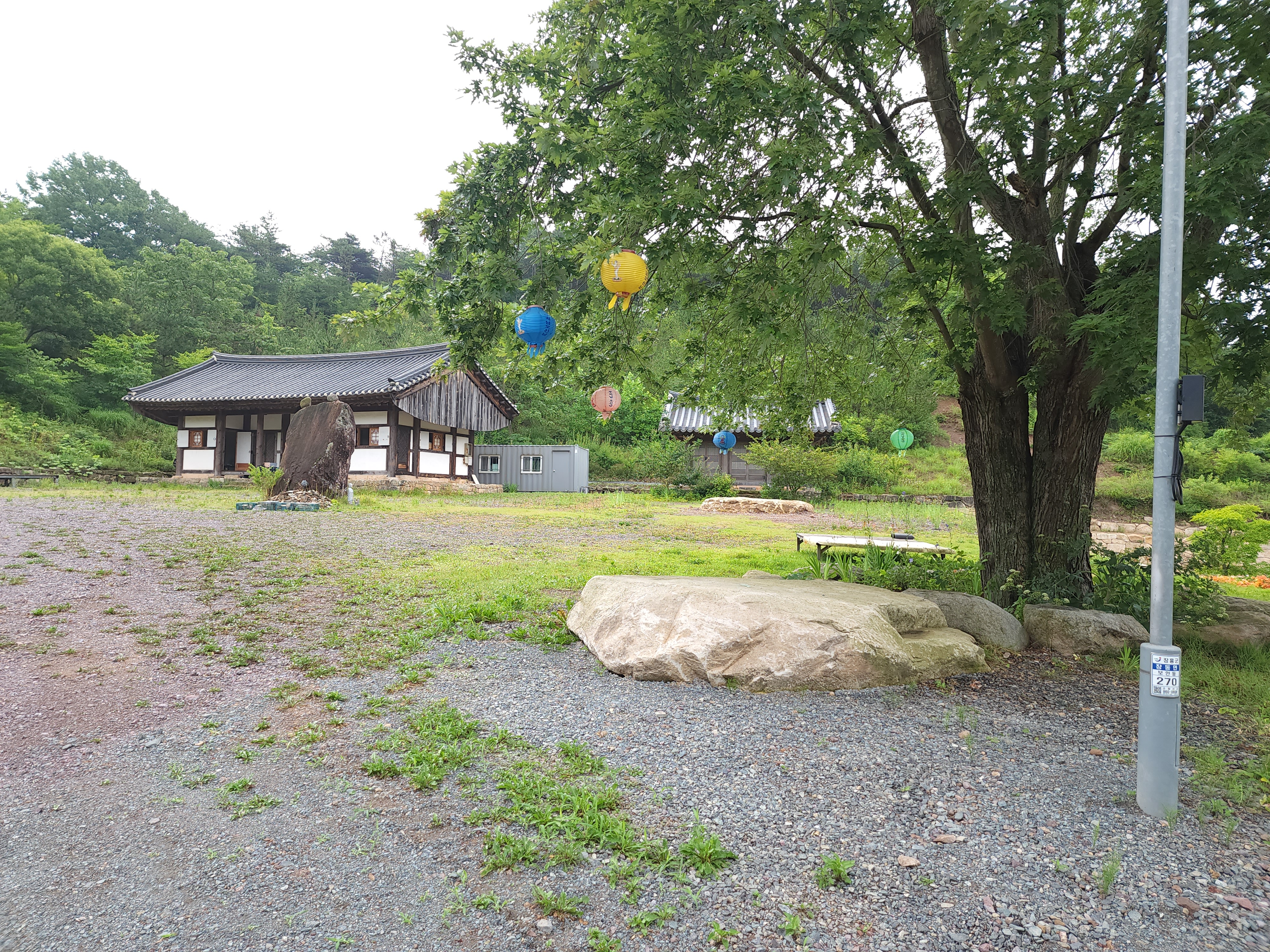 용화사 가운데에는 큰 나무가 있고 평상과 넓은 돌이 있어서 그늘에서 쉴 수 있다.