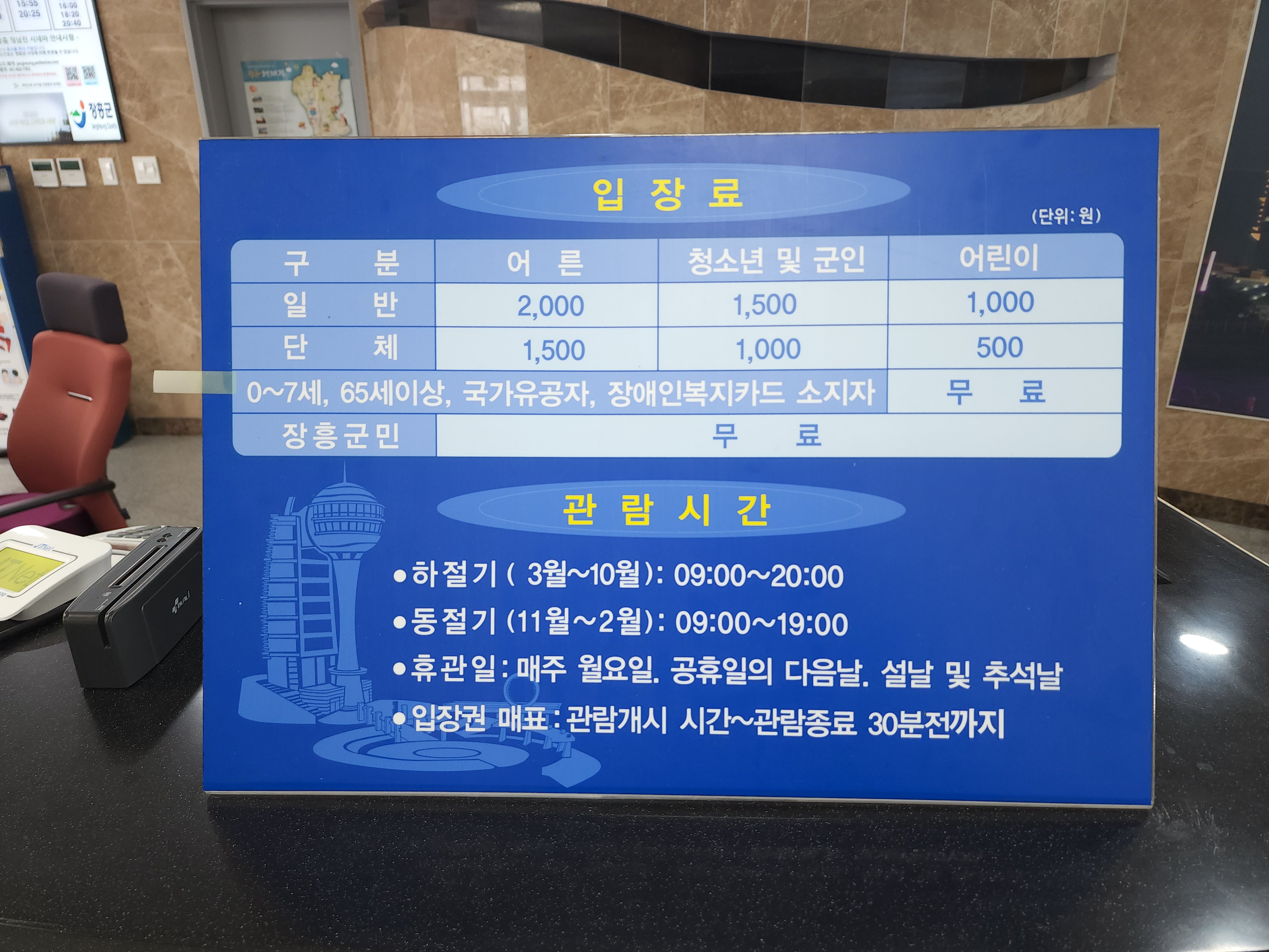 군민 : 1,000원, 청소년 : 800원, 어린이 : 500원