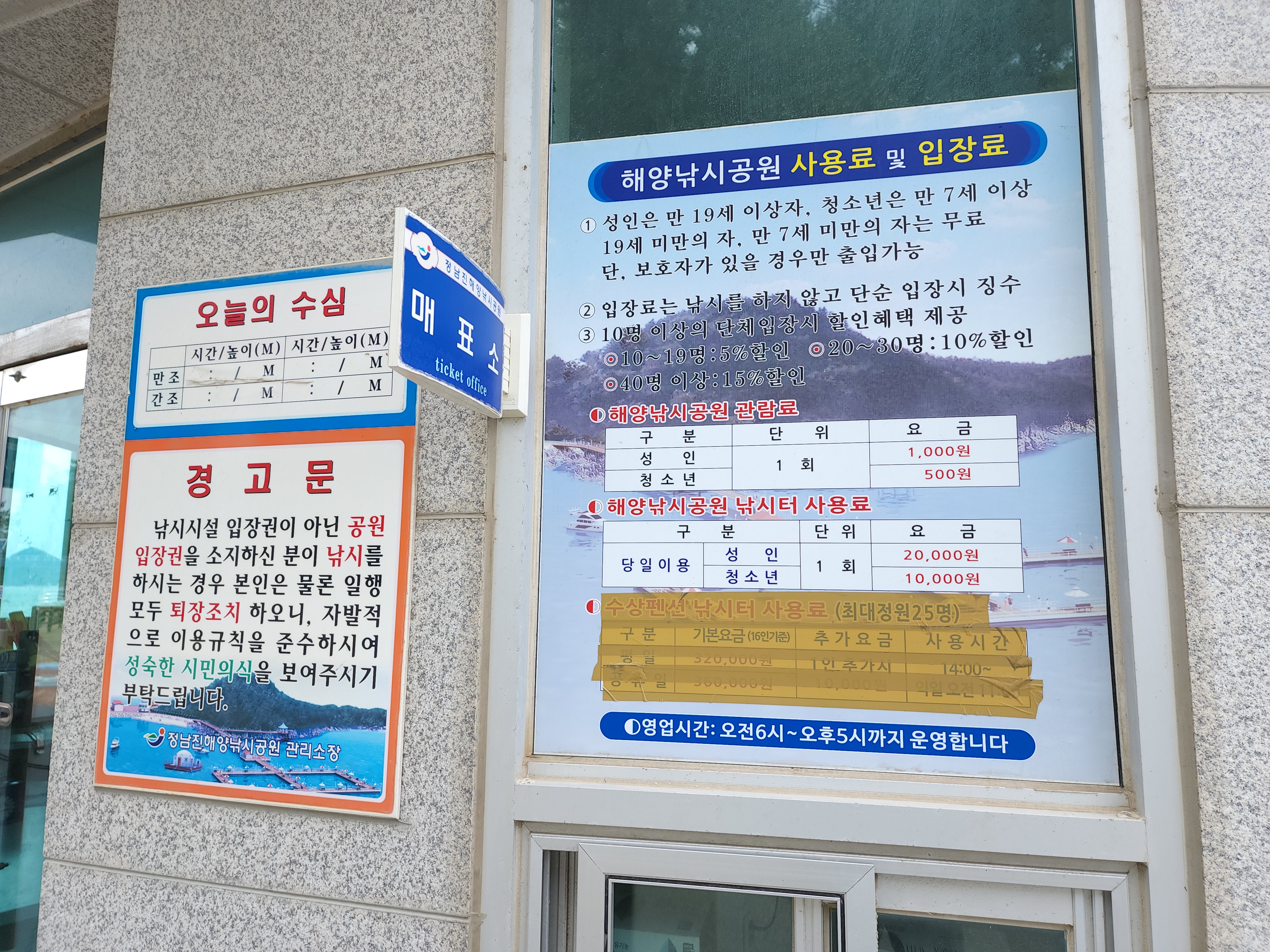 정남진 해양낚시공원 영업시간 : 일출 이후부터 일몰 이전까지이다.