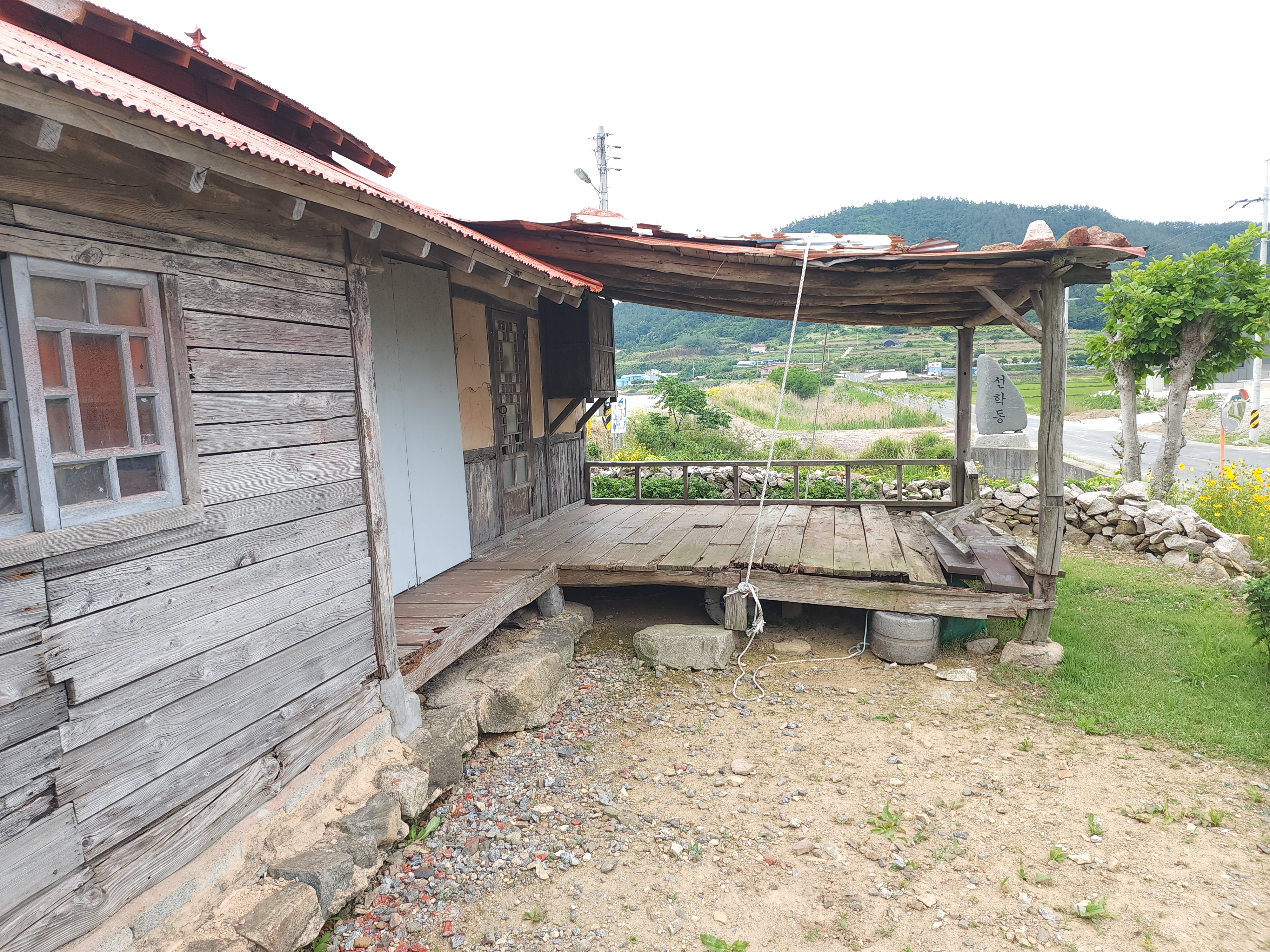 영화를 찍은지 26년이 지나서인지 집을 지은 널판지도 평상의 나무들도 허물어지고 있다.