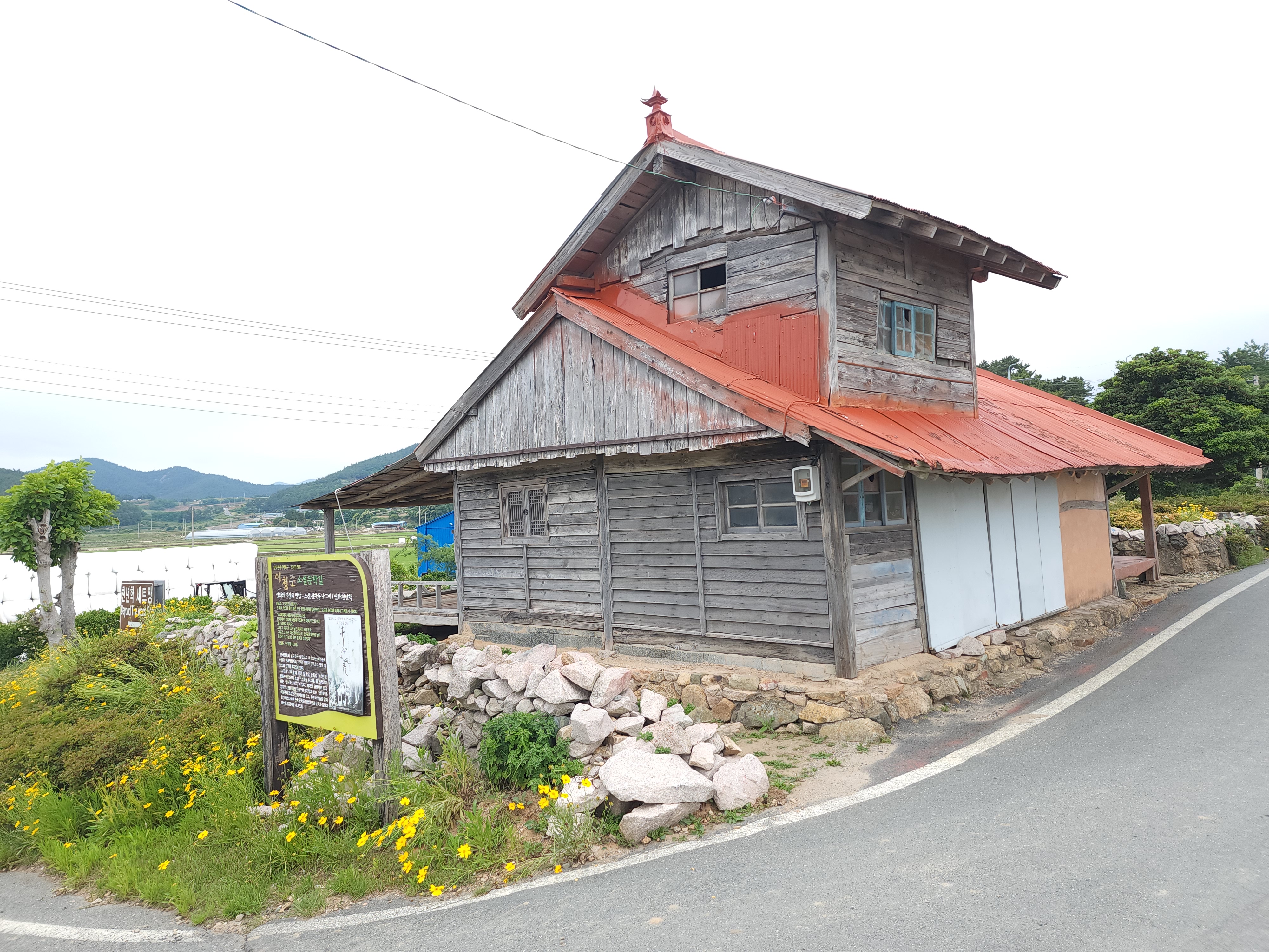 오래된 판자집이 정감있게 지어졌도 작은 화단도 있다.