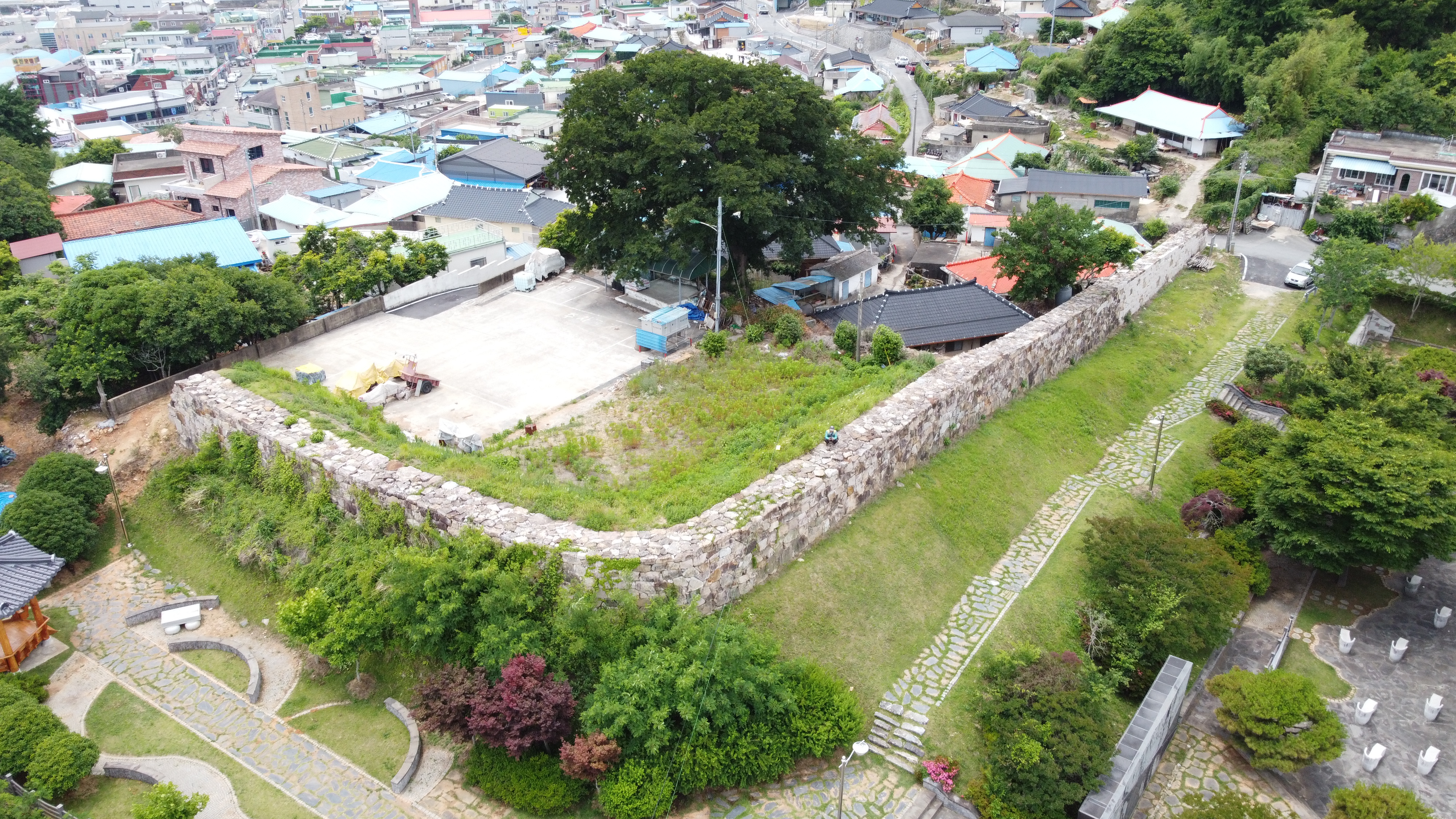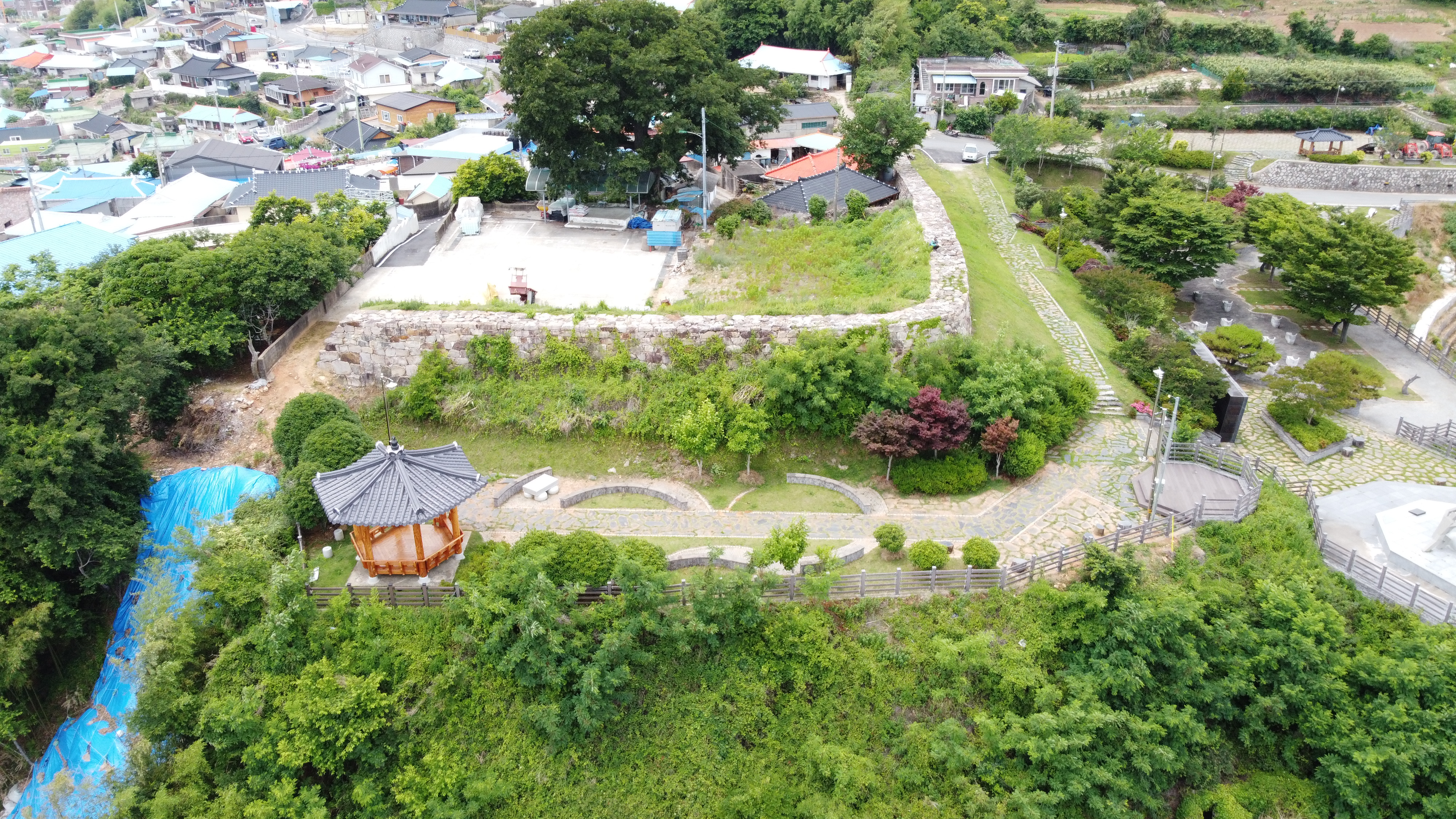 회진마을 딋산을 이용하여 쌓은 부정형 성으로 현재는 육지에 이어진 덕고와 노력도, 대마도 등의 섬들로 둘러싸여 있다.