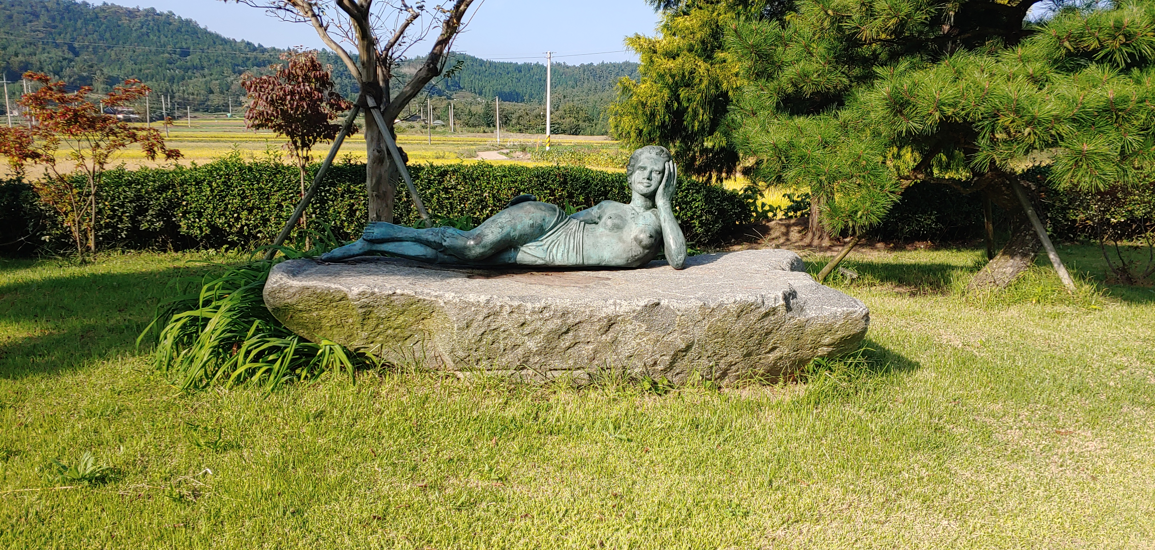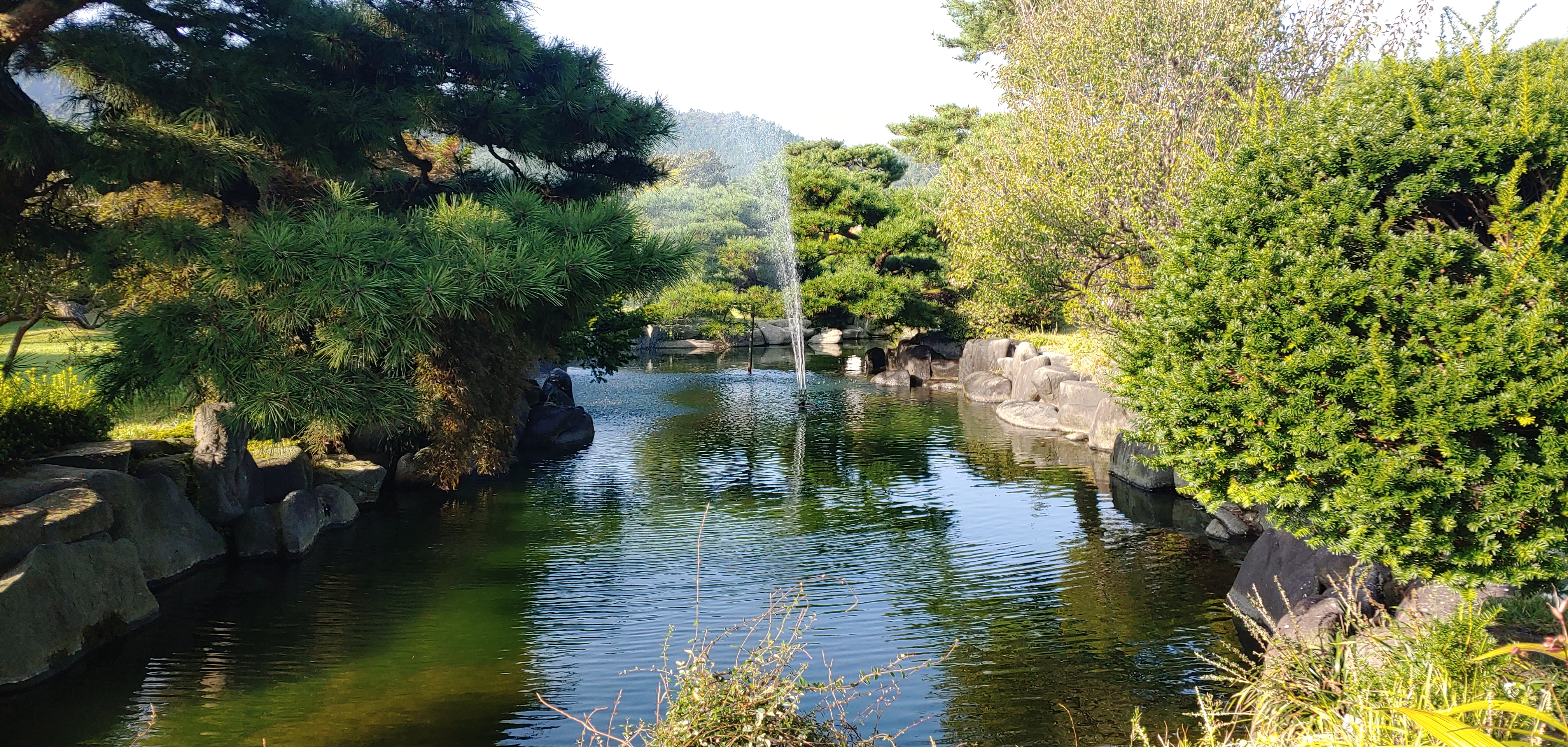 분수가 있고 소나무가 잘 어울린다.
