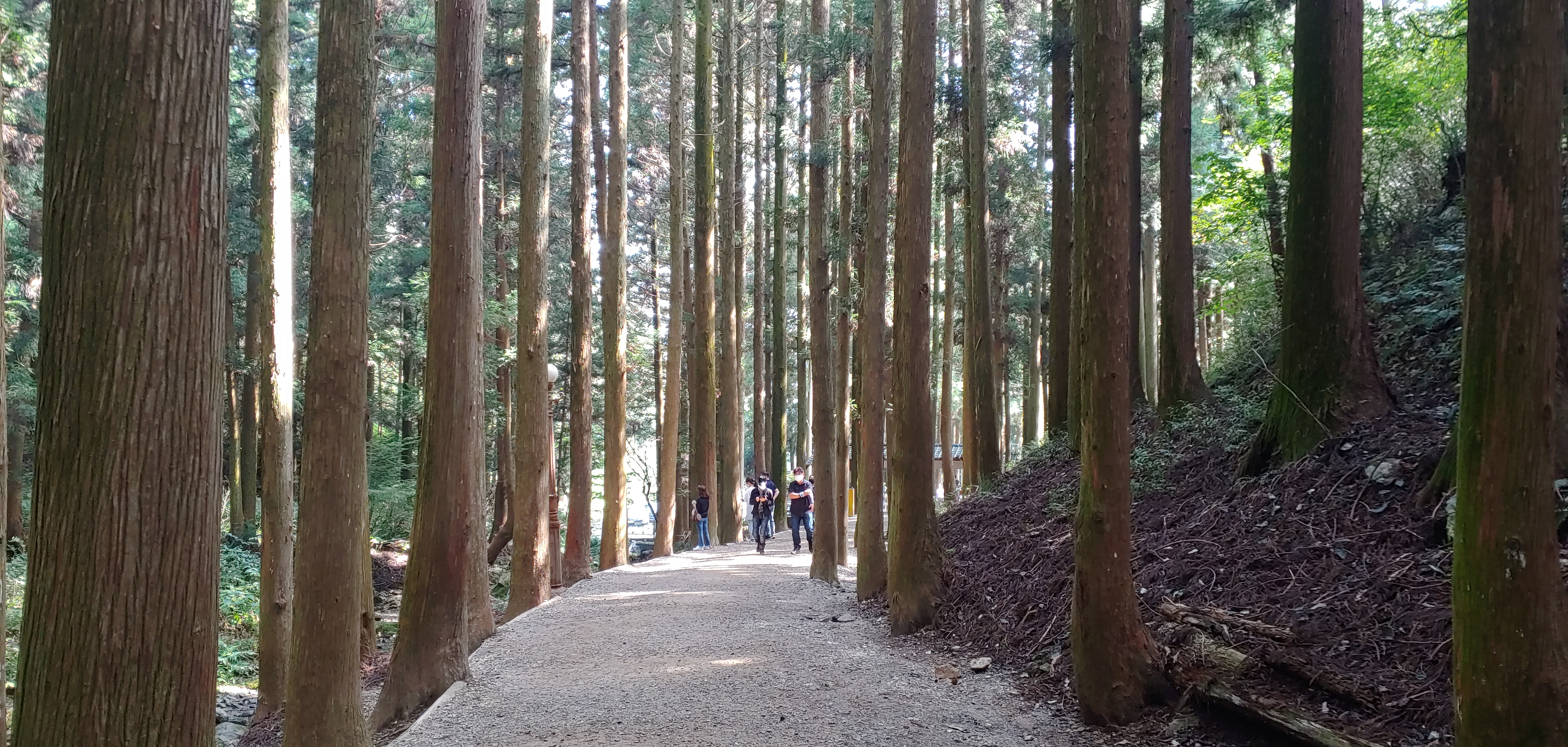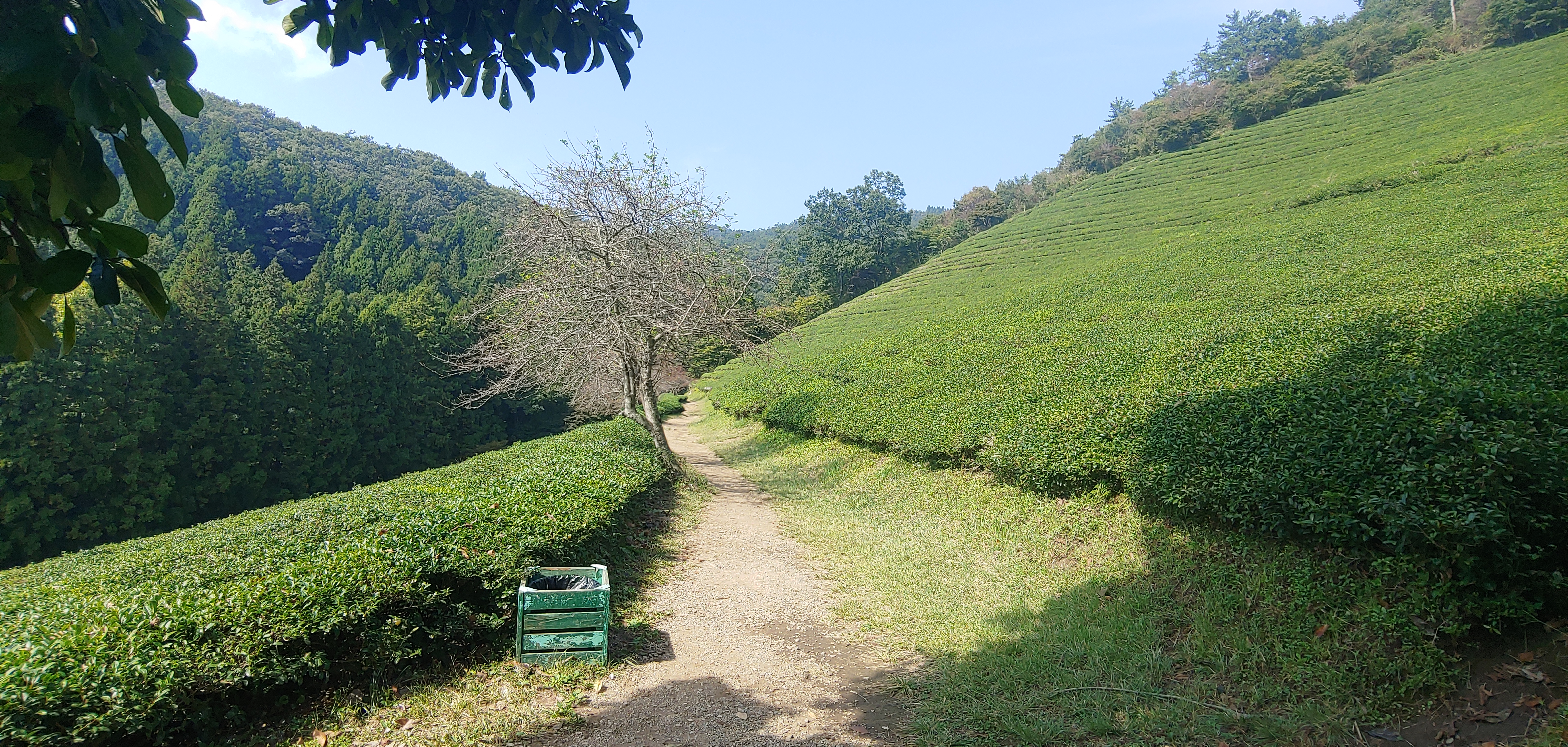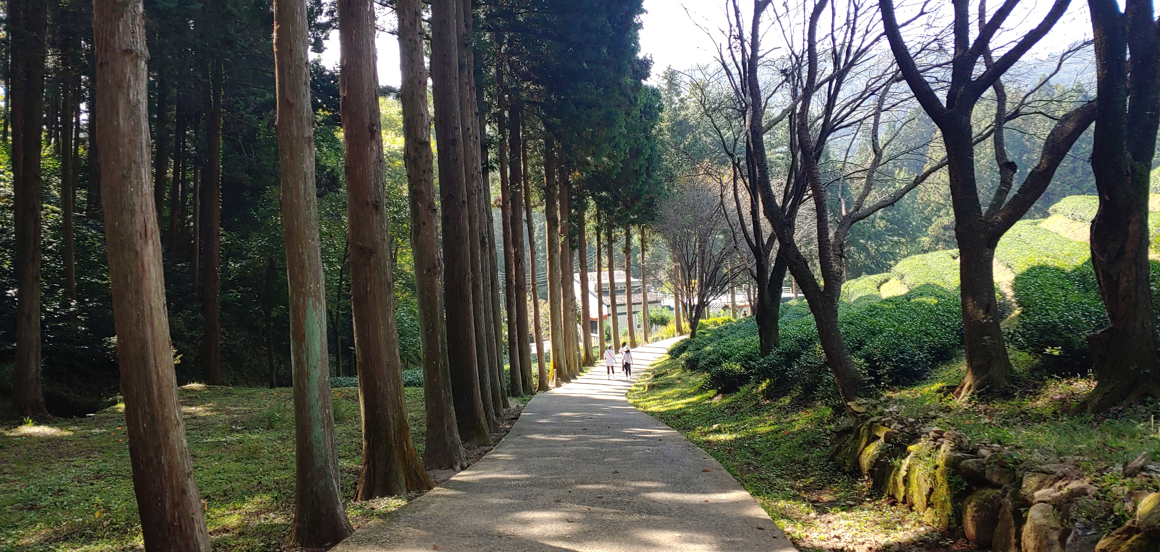 주차장에서 매표를 하고 차밭이 보이는 카페까지 이런 우람한 삼나무가 심어져 있고 차밭 왼쪽과 오른쪽에 이런 삼나무 산책로가 있어 멋진 관광농원의 면모를 볼 수 있다.