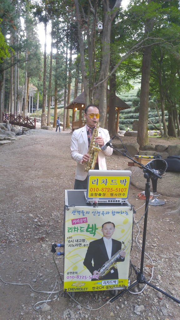 2015년 10월 11일에 보성다원 안쪽 카페 왼쪽 삼나무숲앞에서 버스킹을 허락해서 색소폰연주를 했었다.