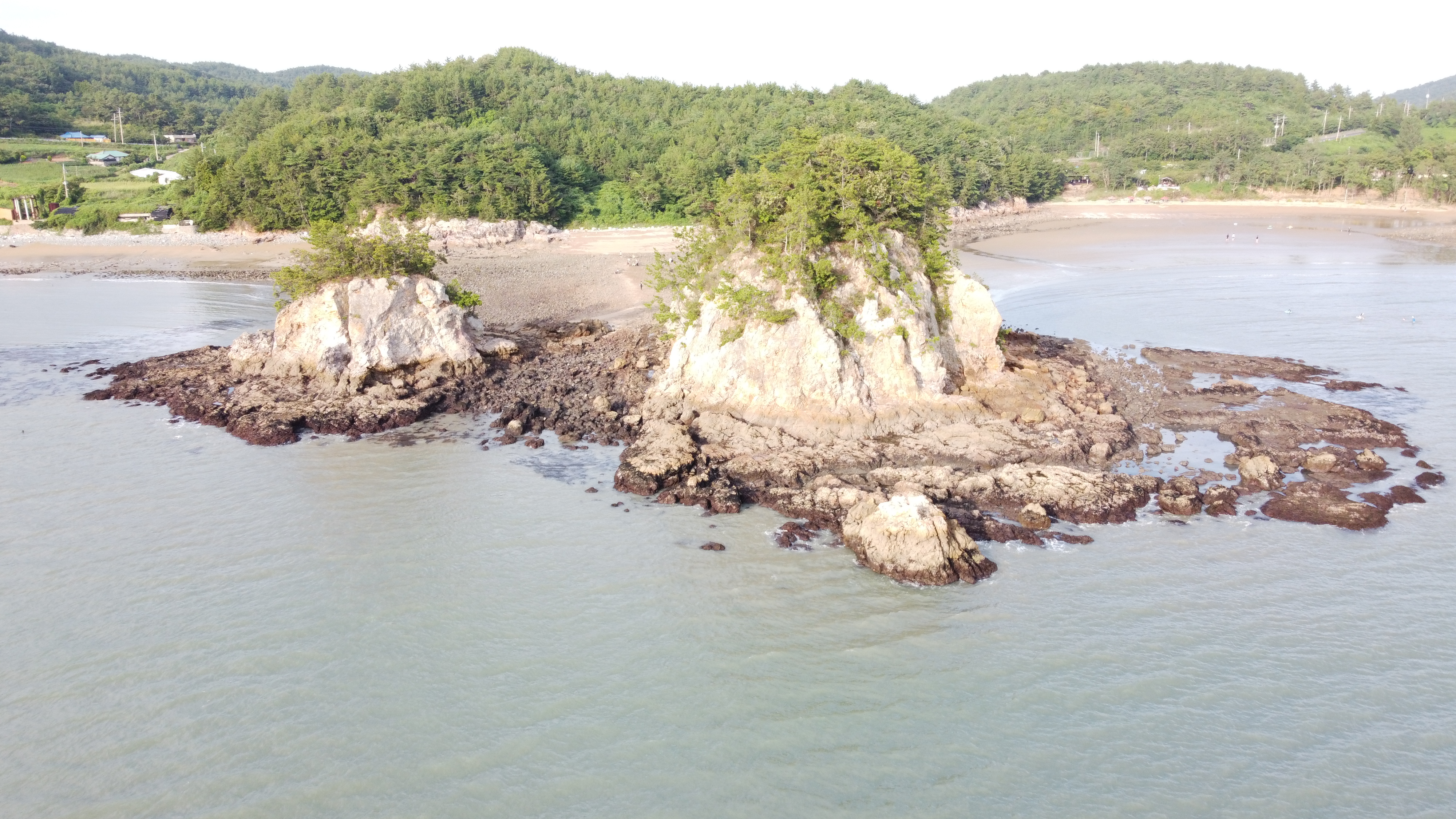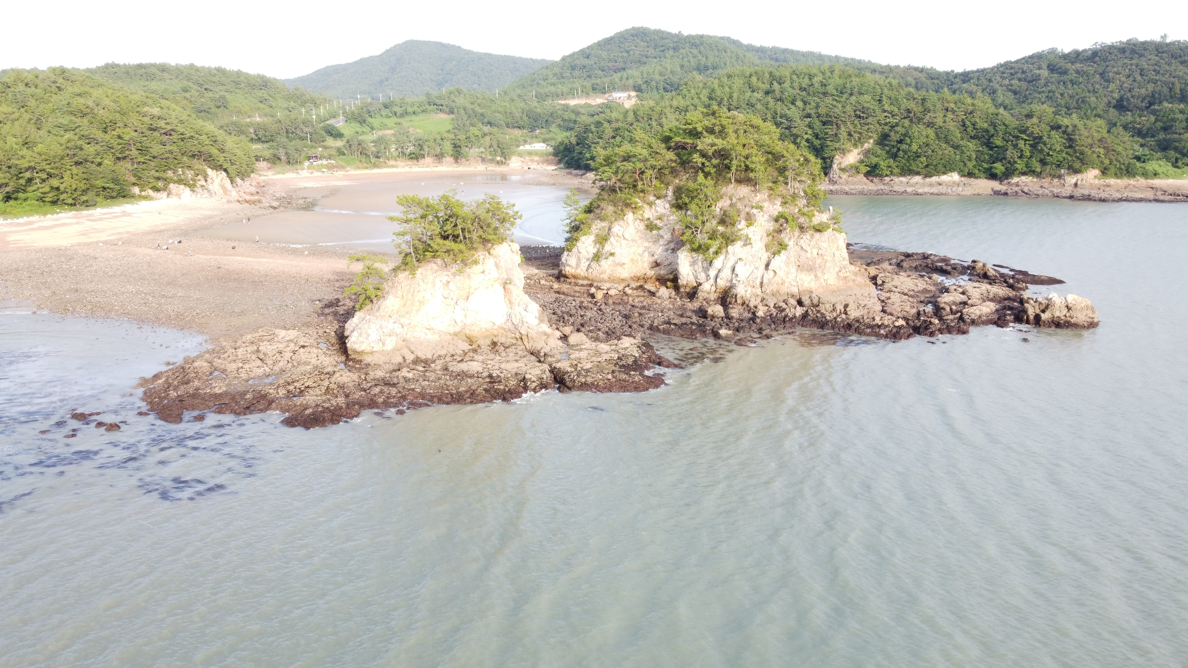 썰물, 간조때 물이 빠지면 걸어서 형제섬까지 갈 수 있다.