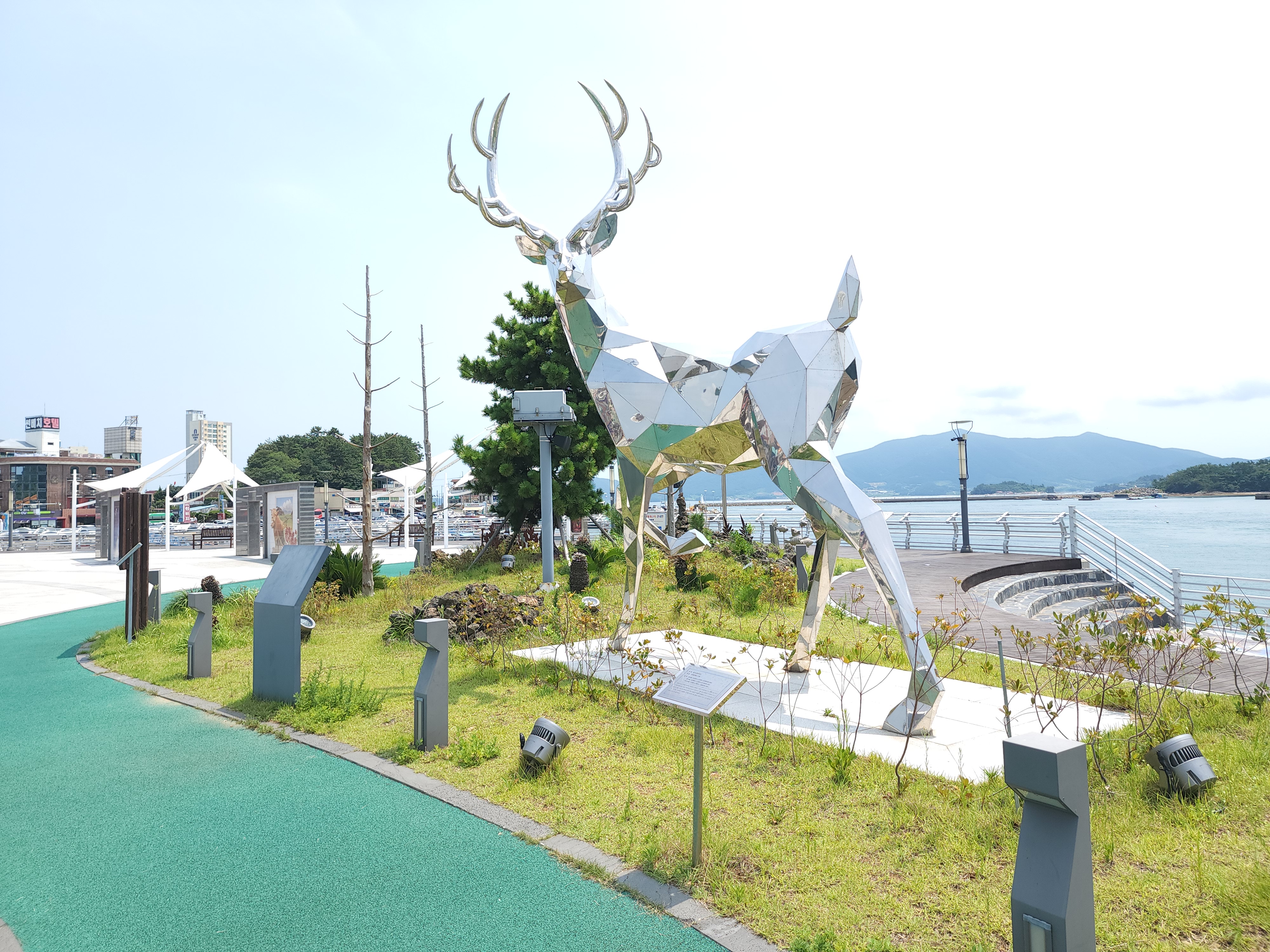 이 녹동바다정원은 노동항의 아름다운 야경과 작은 공연장, 사슴과 물고기 조형물, 감성 돔 전망대, 산책로, 바닥분수 등 볼거리가 많은 곳이다.