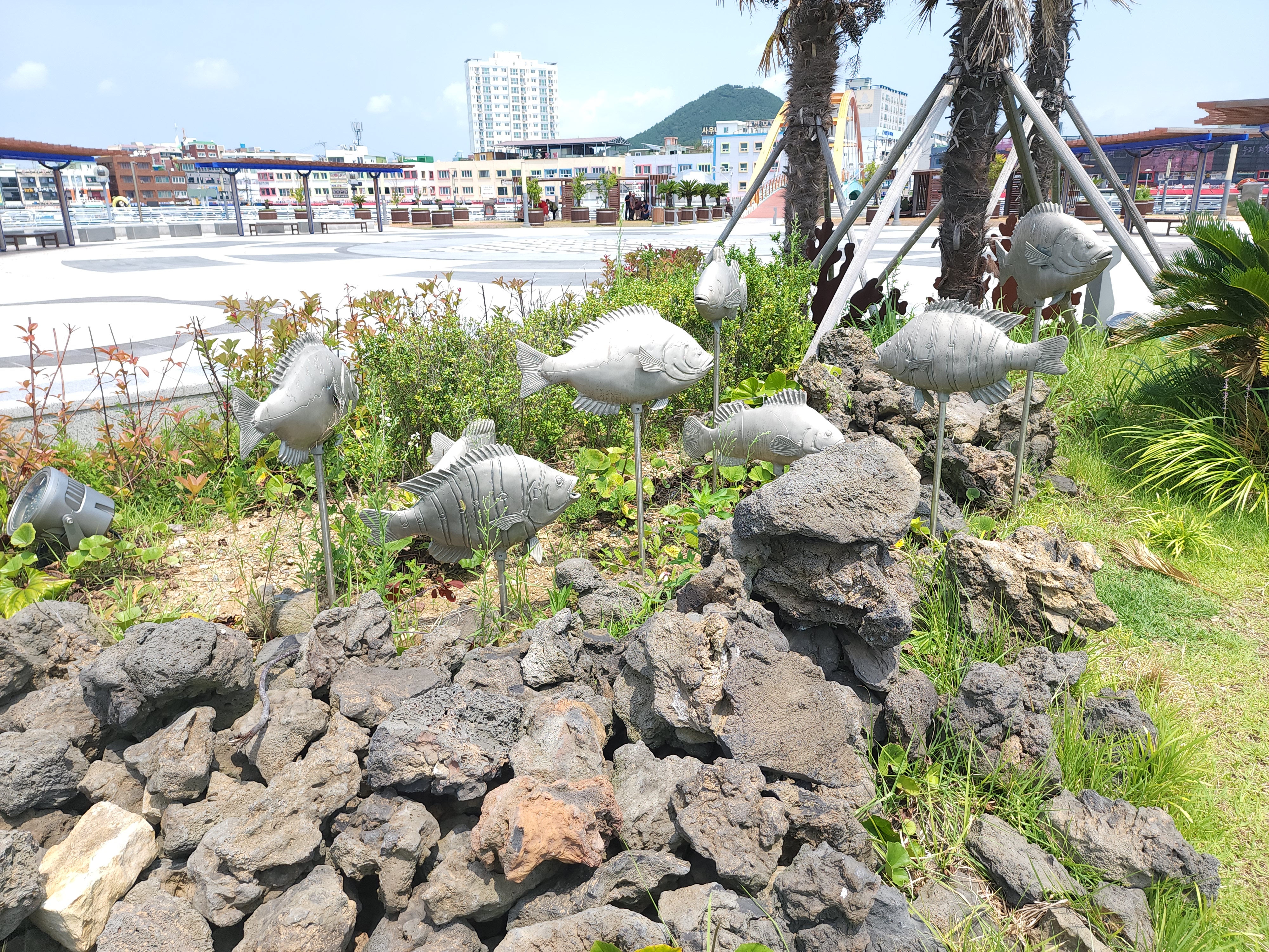 녹동바다정원내에는 물고기 조형물이 있고 계단을 따라 위에까지 올라갈 수 있다.