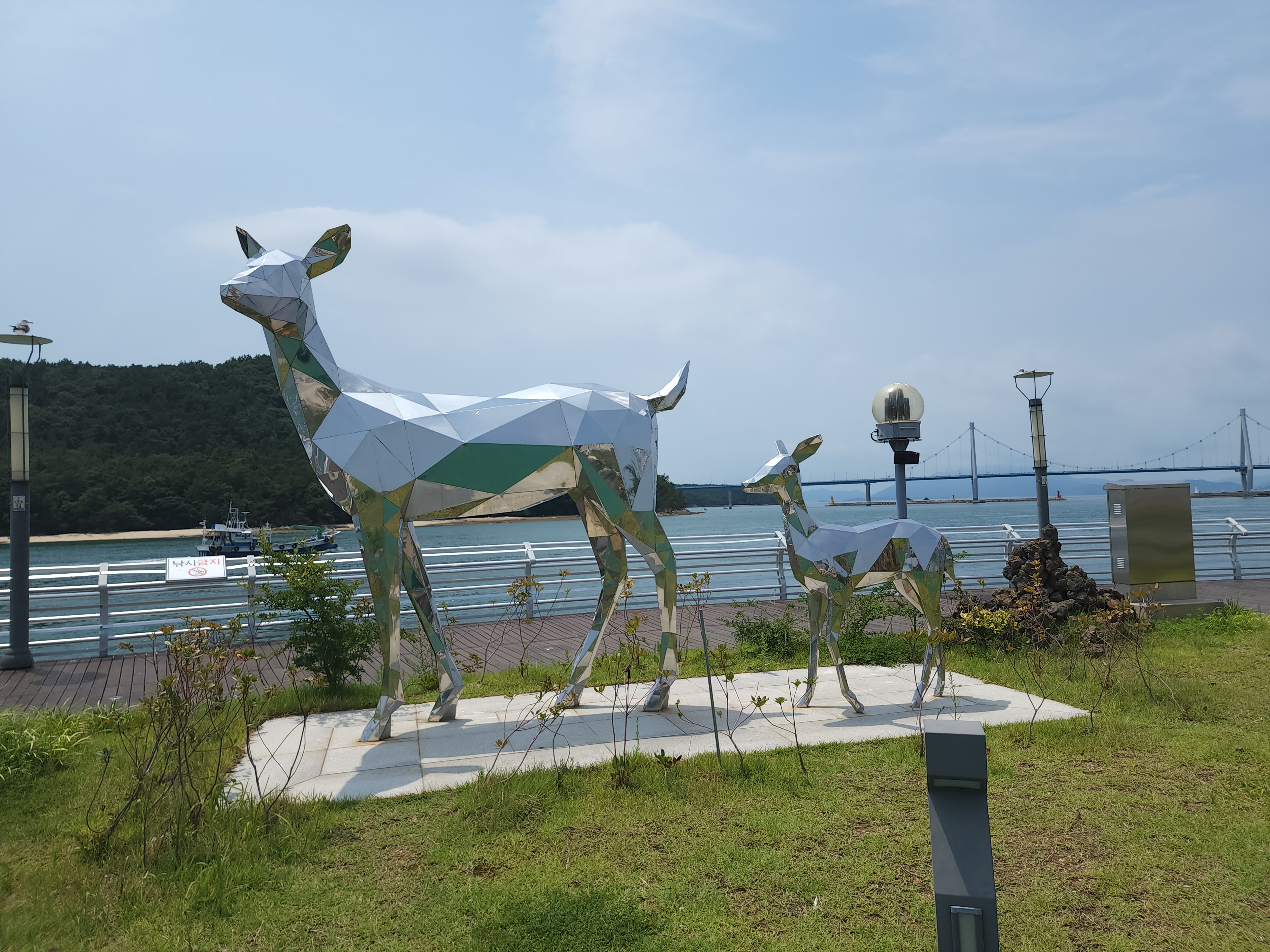 사슴 조형물이 암수 한쌍이 전시되고 있다.