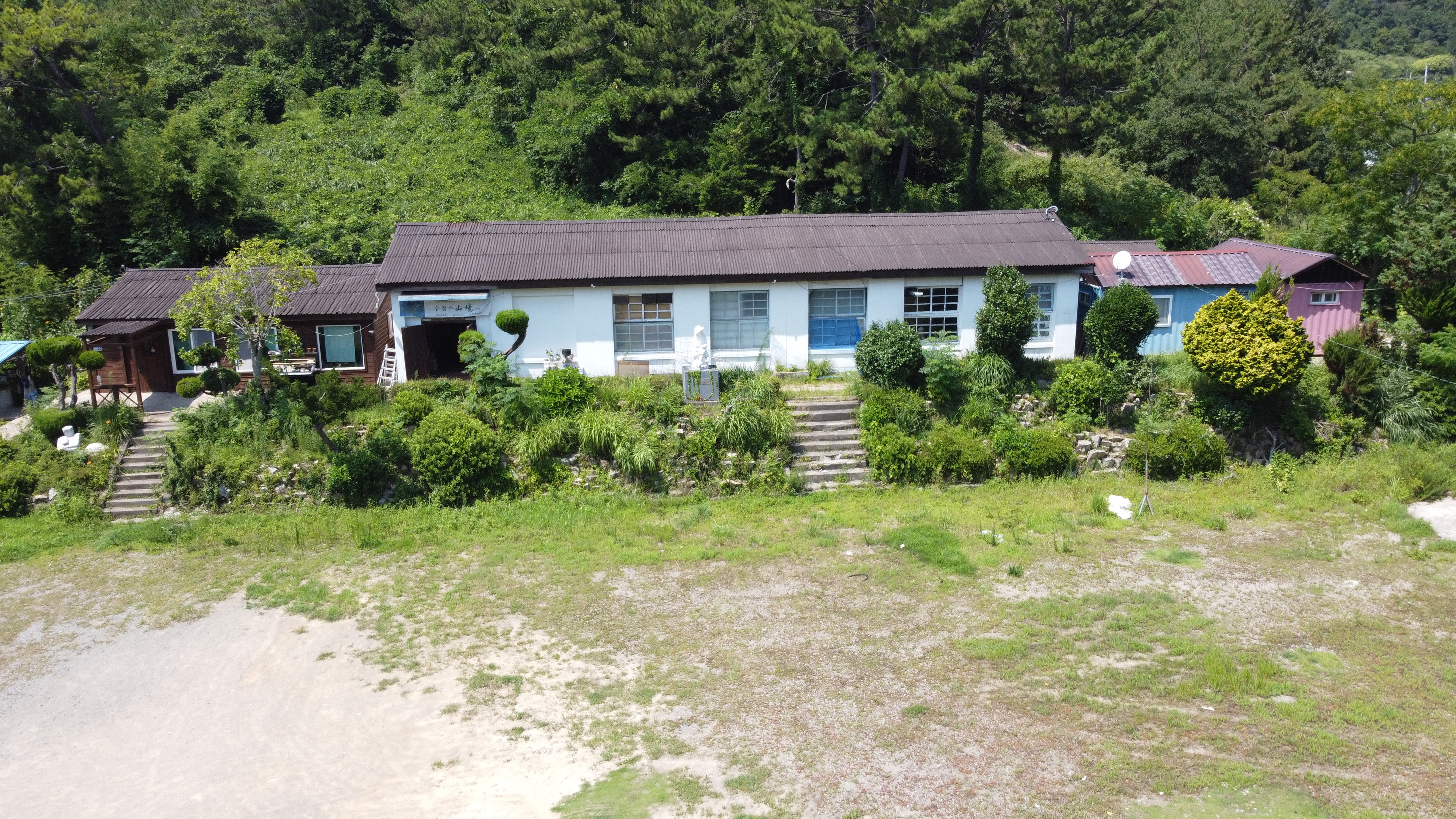 도화헌 미술관 앞 운동장 주변에는 쉼터가 있다.