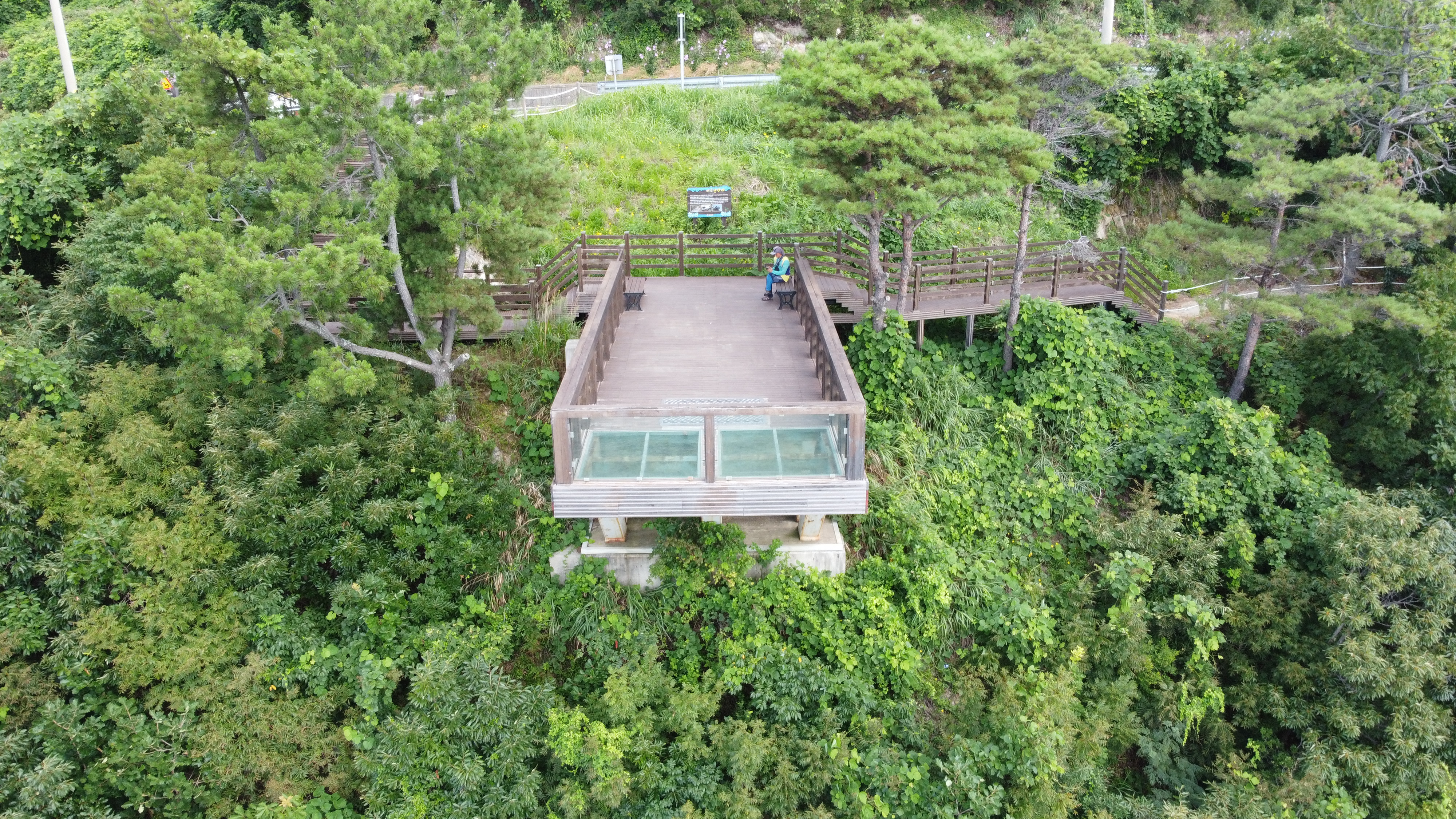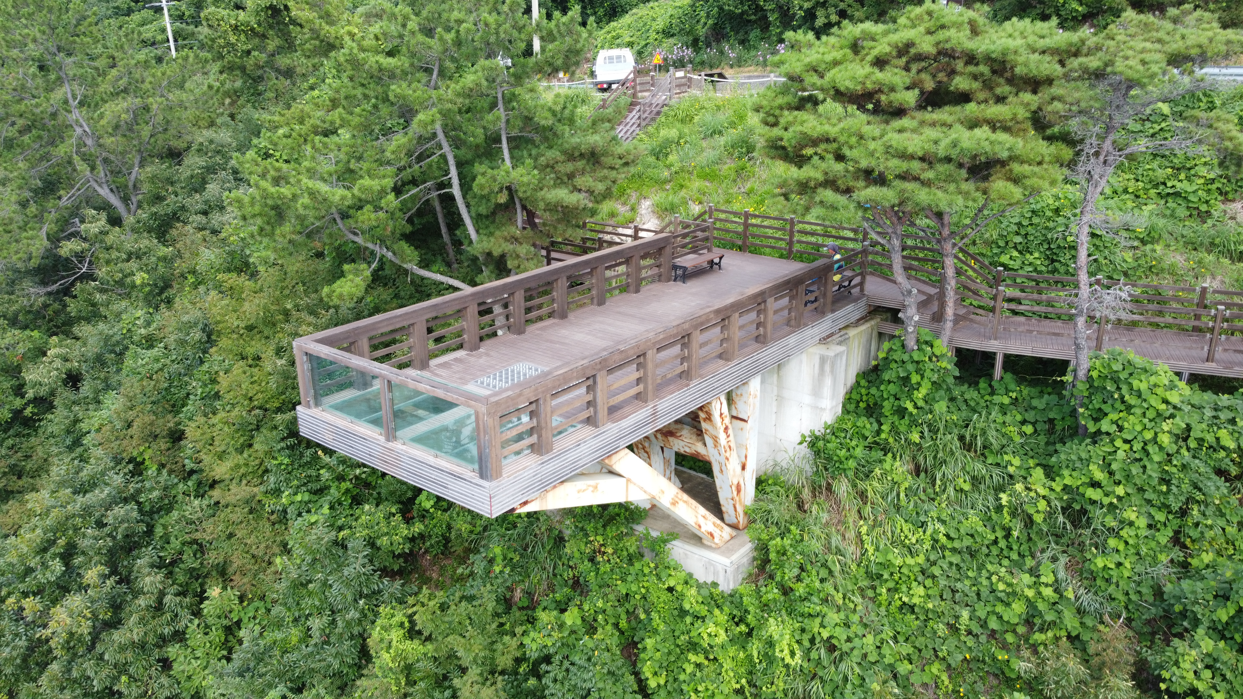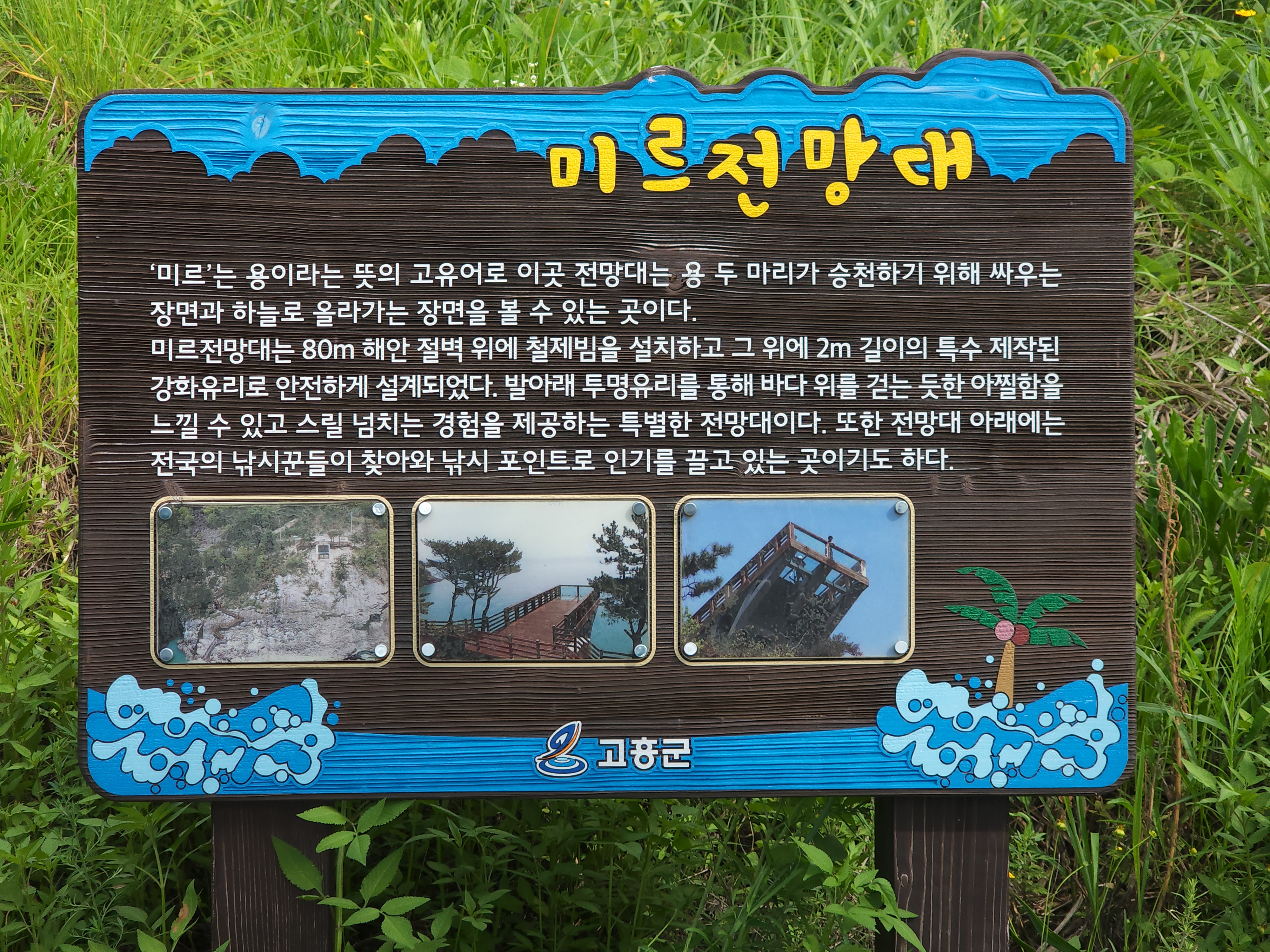 미르전망대는 80m 해안 절벽 위에 철제빔을 설치하고 그 위에 2m 길이의 특구 제작된 강화유리로 안전하게 설계되었다. 발아래 투명유리를 통해 바다 위를 걷는 듯한 아찔함을 느낄 수 있고 스릴 넘치는 경험을 제공하는 특별한 전망대이다. 또한 전망대 아래에는 전국의 낚시꾼들이 찾아와 낚시 포인트로 인기를 끌고 있는 곳이기도 하다.