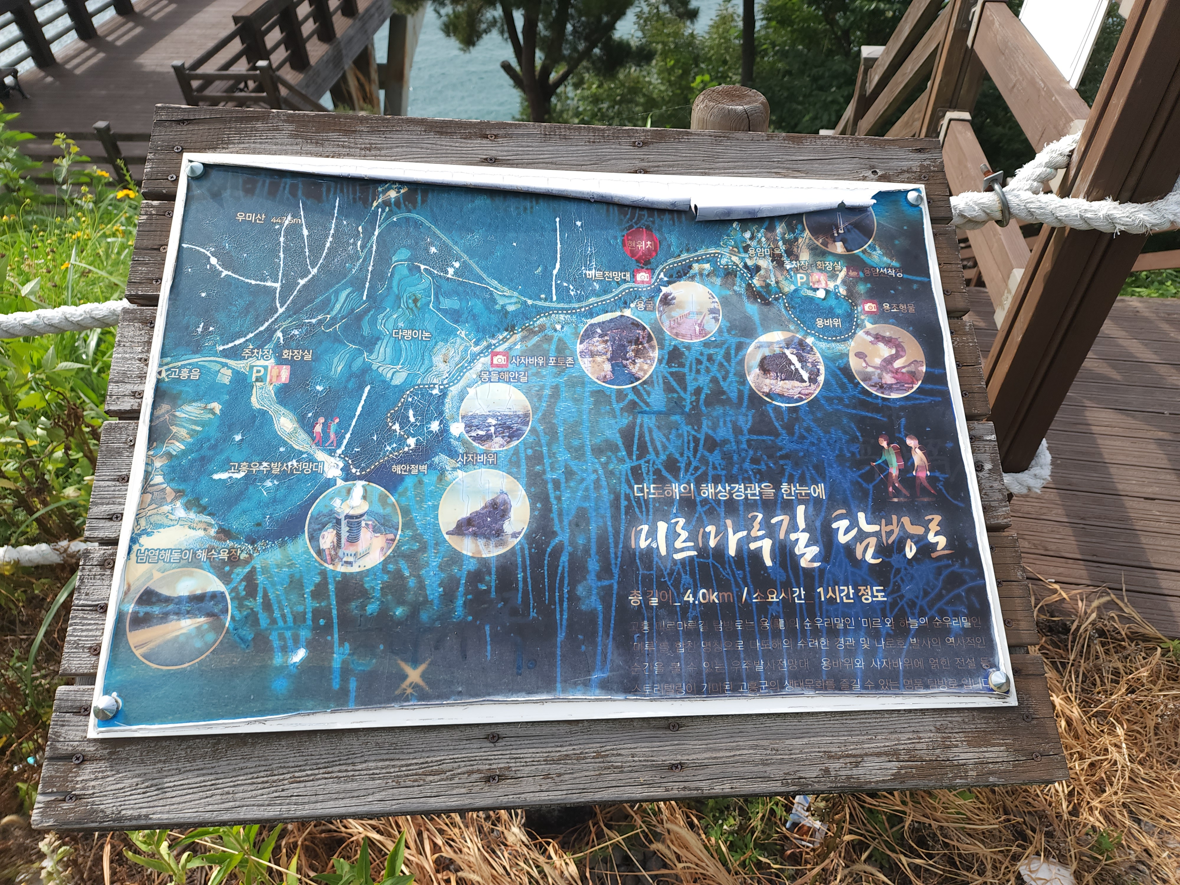 미르마루길은 남열해돋이 해수욕장 ~ 고흥우주발사전망대 ~ 해안절벽 ~ 사자바위 ~ 몽돌해안길 ~ 사자바위 포토존 ~ 미르전망대 ~ 용바위로 이어지는 총 4km 이며 약 1시간 정도 걸린다.