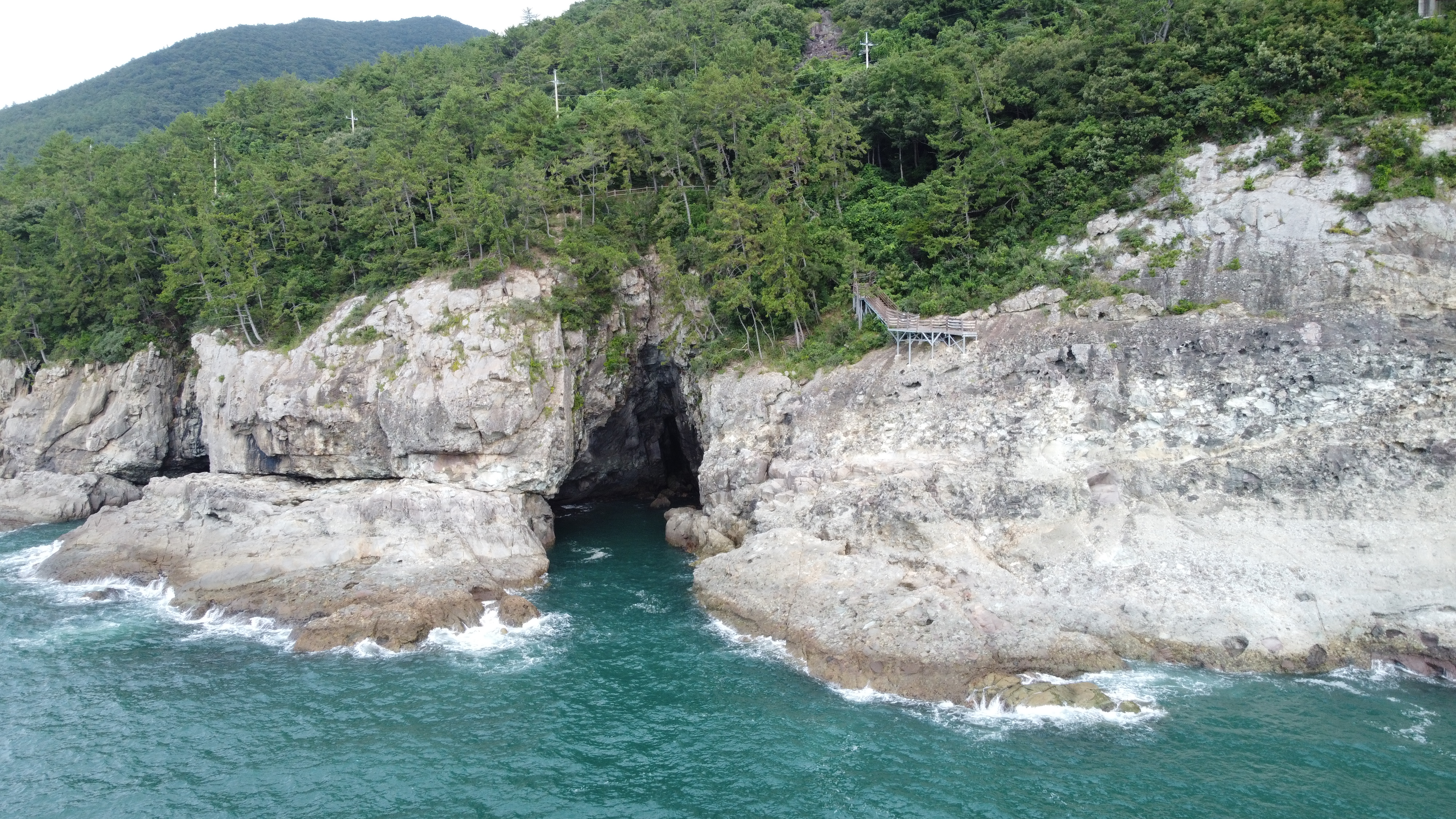 미르전망대 밑 바다에는 용굴이 2개가 있다.