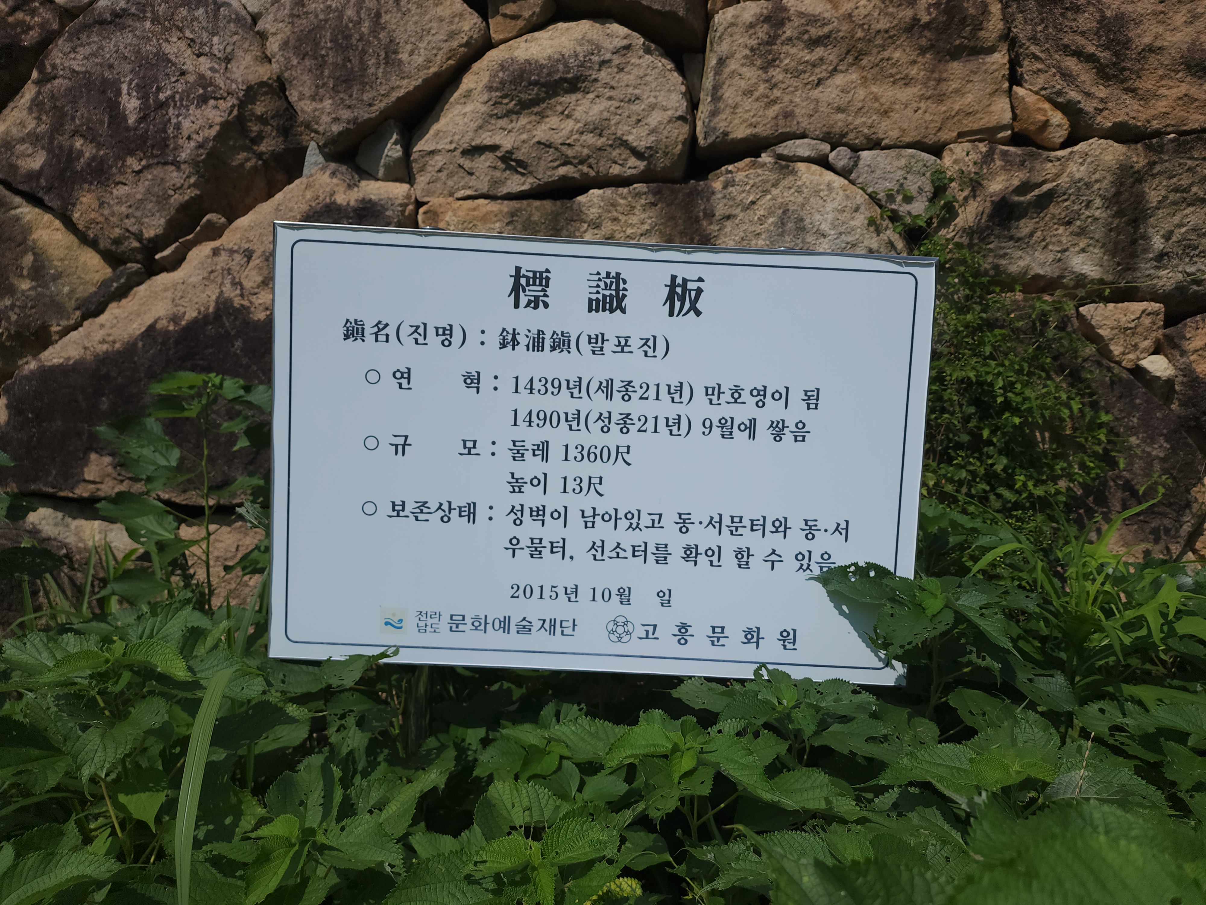 발포진은 세종 21년(1439)에 만호가 배치된 수군진이 되었으며 성곽은 성종 21년(1490)에 둘레 1360척(약 626m), 높이 13척 약6m 규모로 축조되었다.