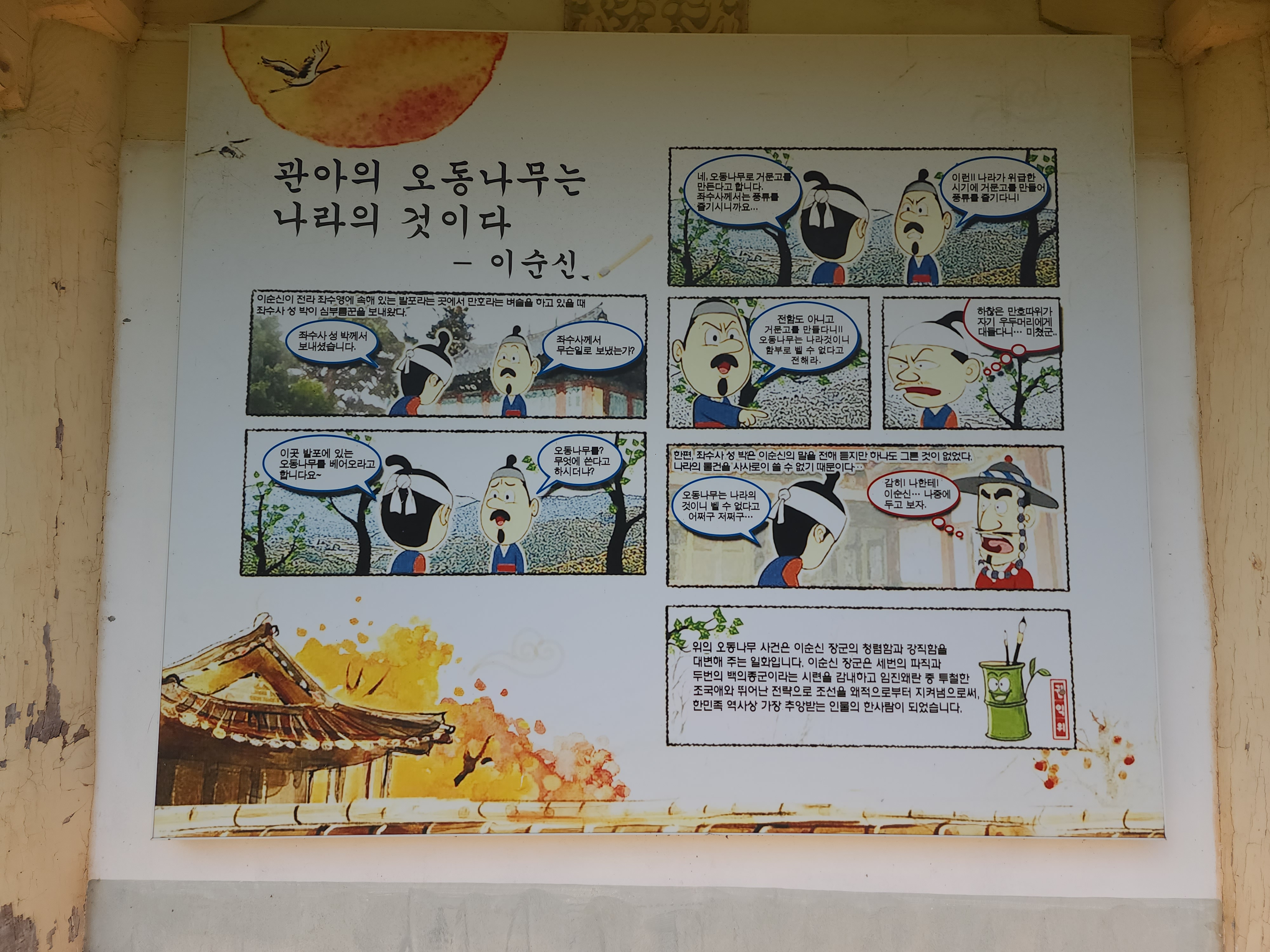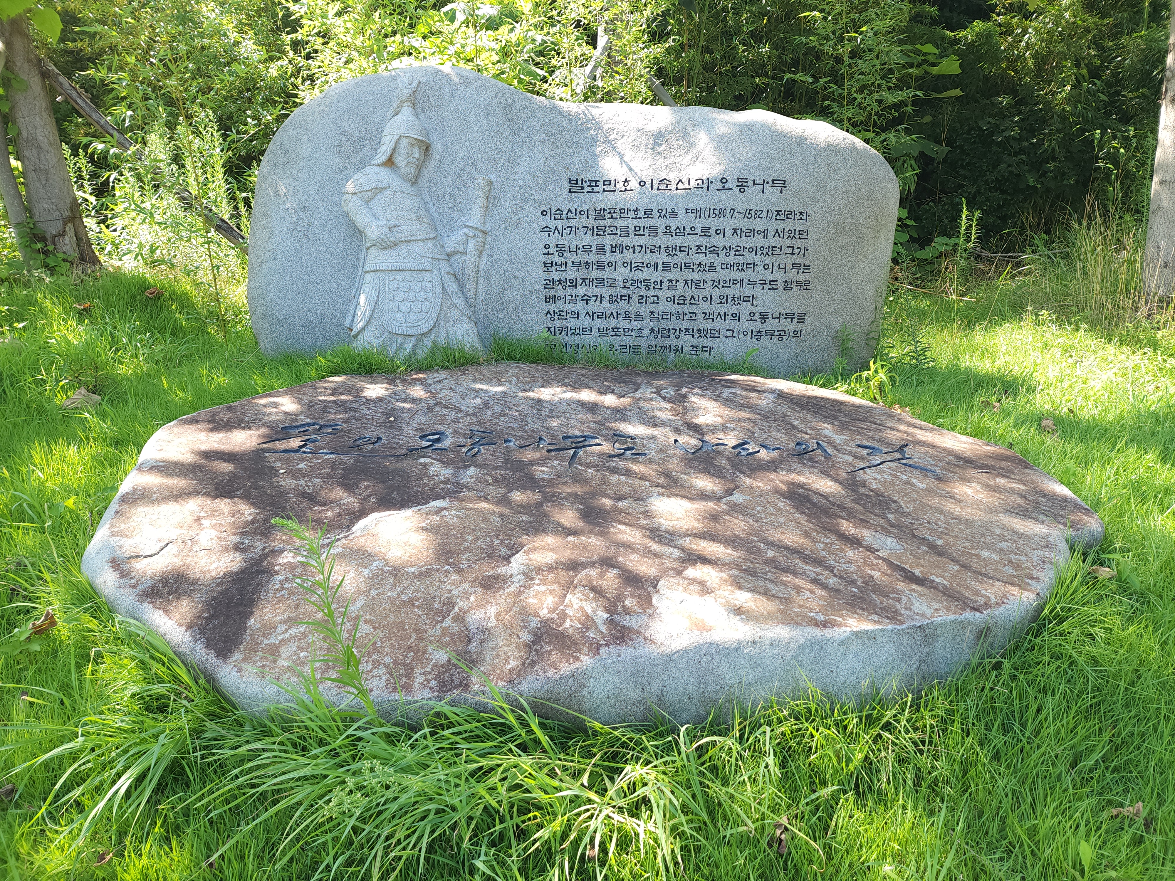 이순신이 발포만호로 있을때 (1580.7 ~1582.1) 전라좌수사가 거문고를 만들 욕심으로 이 자리에 서 있던 오동나무를 베어가려 했다. 직속상관이었던 그가 보낸 부하들이 이곳에 들이닥쳤을때였다.