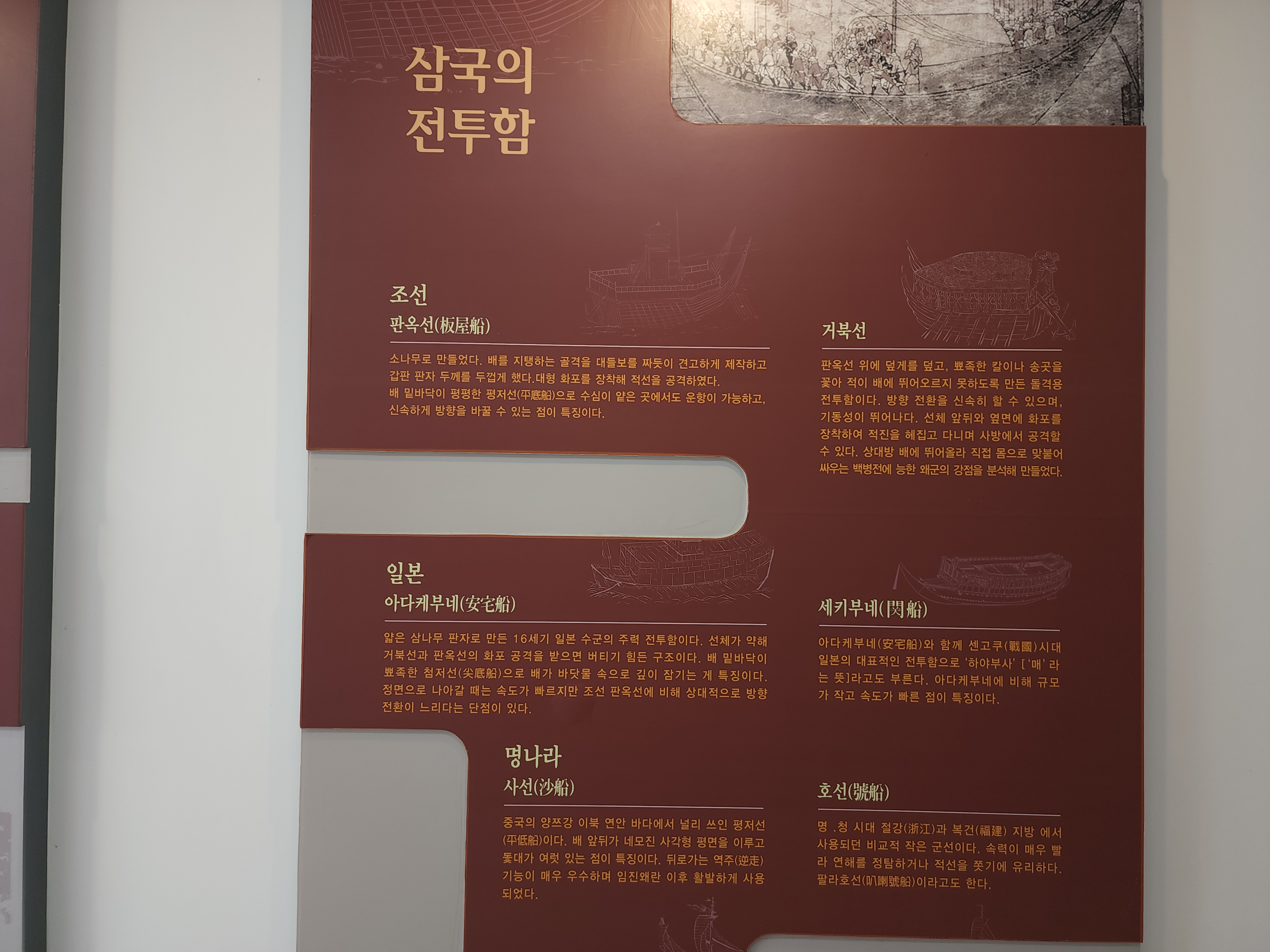 백병전에 능한 일본군은 주로 상대방의 배에 올라타 싸움을 벌였다. 이런 일본군을 막기 위해 조선은 판옥선의 몸체를 높고 크게 제작하였다. 판옥선의 높은 구조는 위에서 아래로 활을 쏠 때 매우 유리했고 하포를 올려놓는 포좌가 높게 만들어져 명중률 또한 높았다.