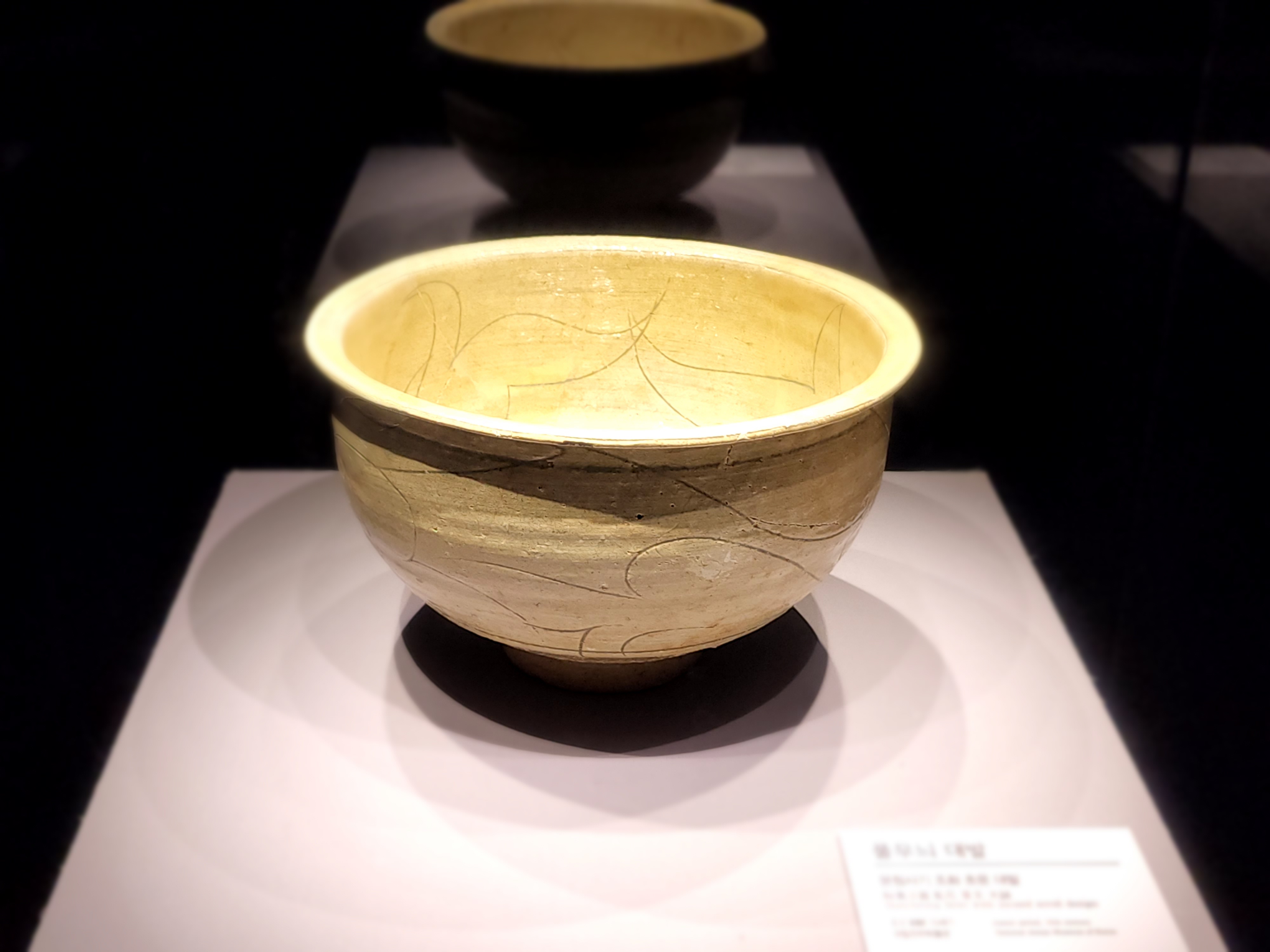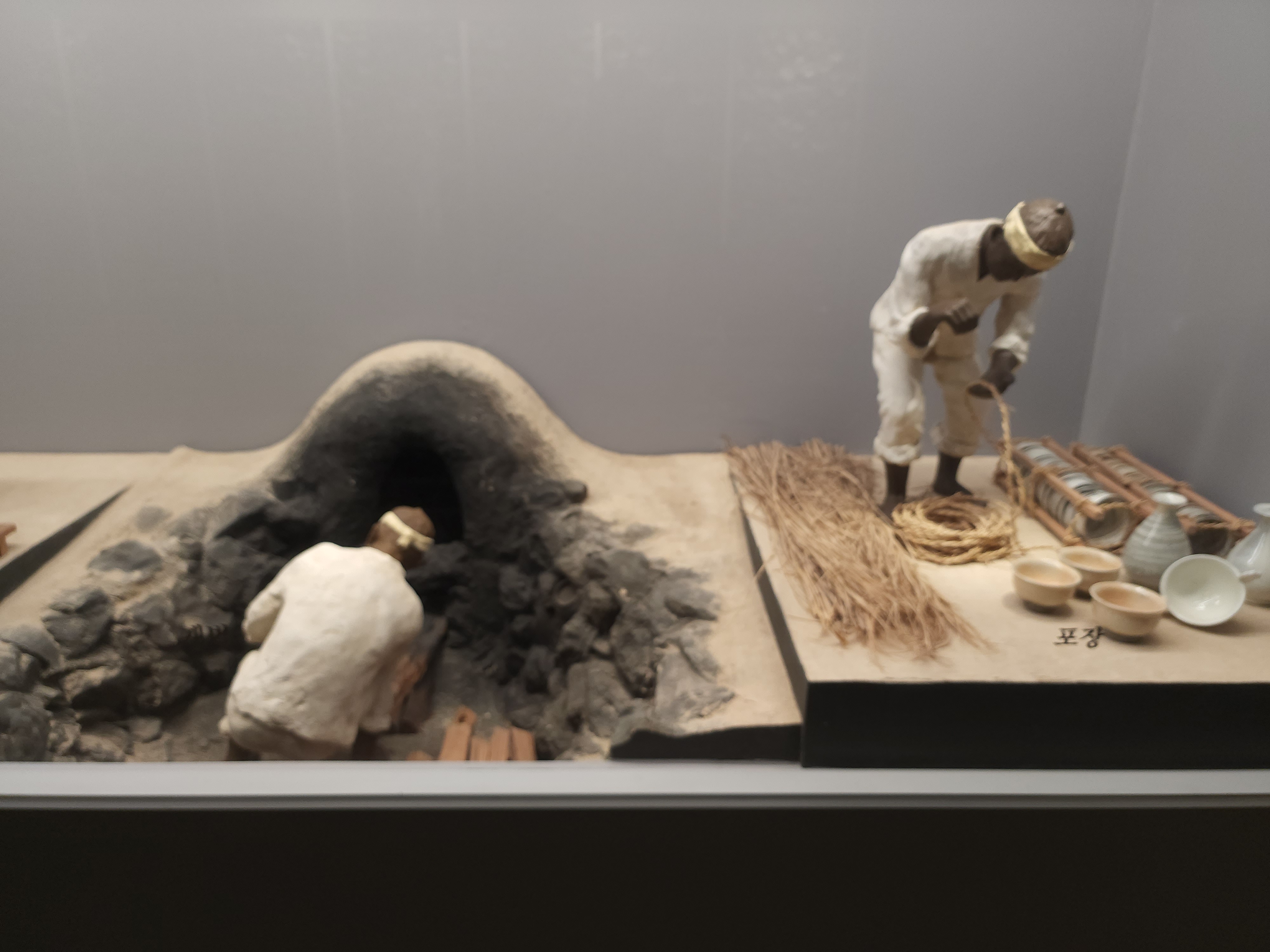 초벌구이 된 그릇에 유약을 입히는 시유 과정과 재벌 단계를 거치면 비로소 덤벙분청사기가 완선된다.