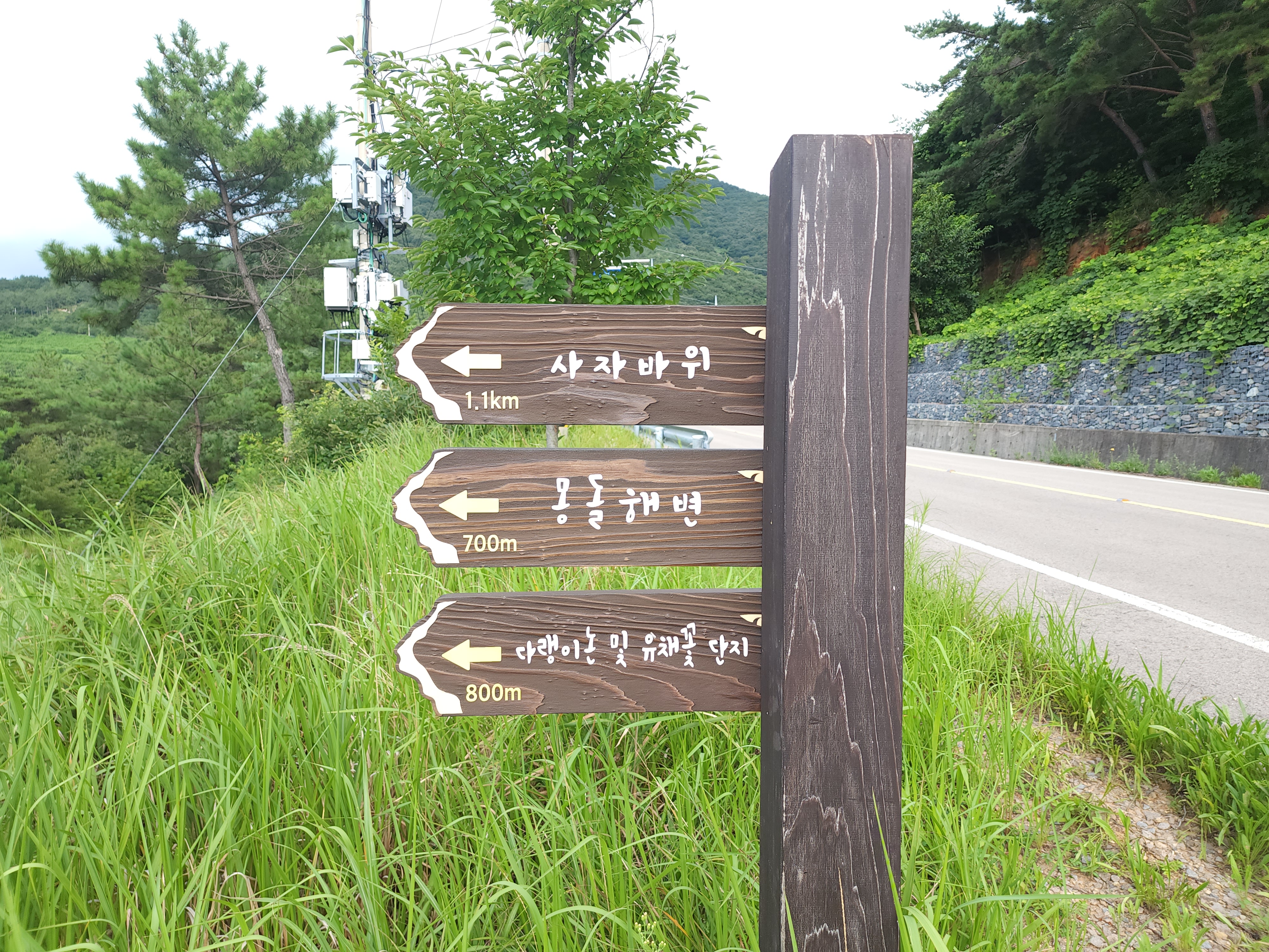 사자바위는 도로에서 차를 타고 1.1km 바닷가까지 내려가야 하는데 길에 풀이 무성하게 자라서 조심해야 한다.