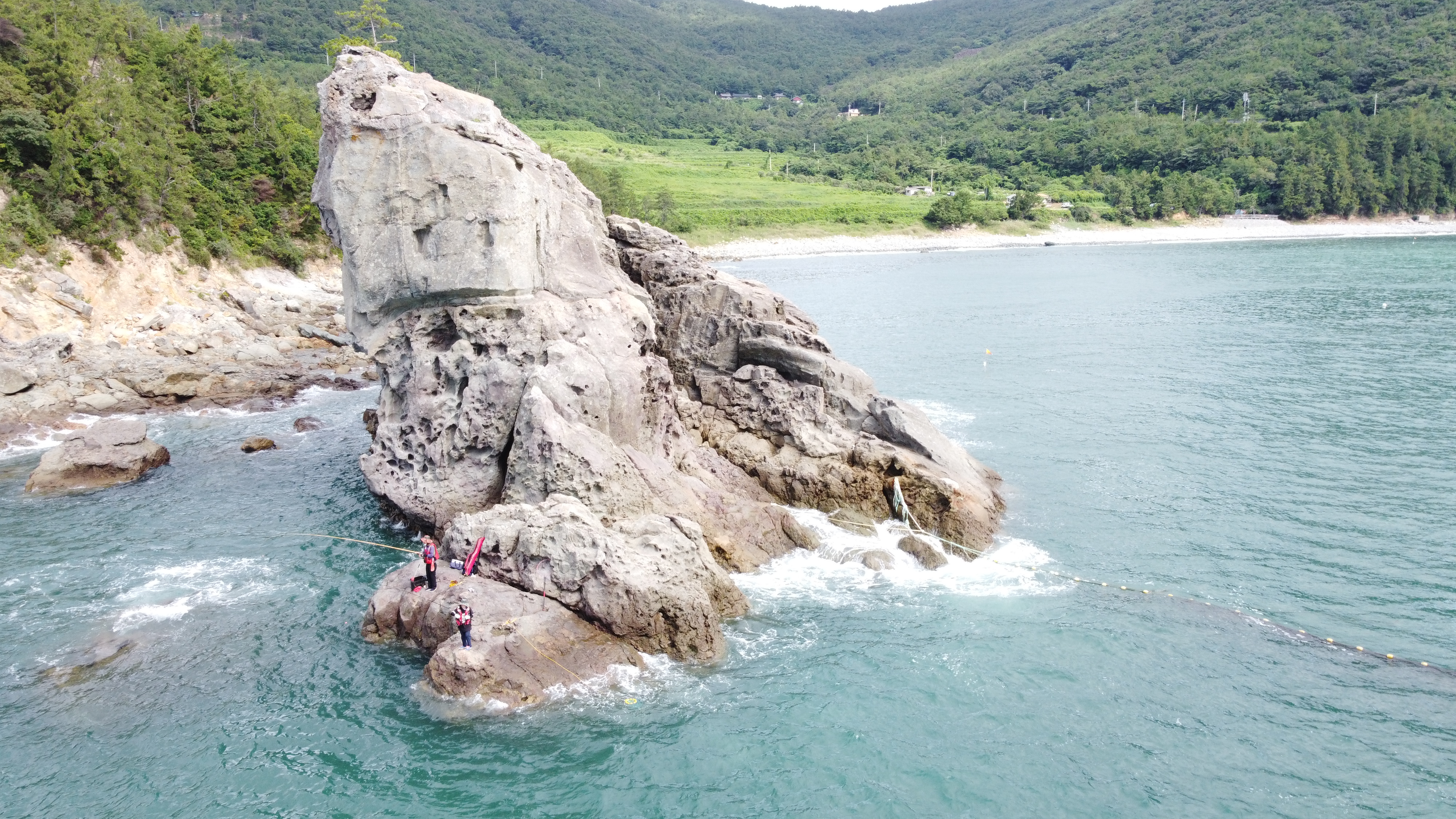 헉.. 그런데 드론으로 봤더니 사자바위에서 낚시를 하고 있다.