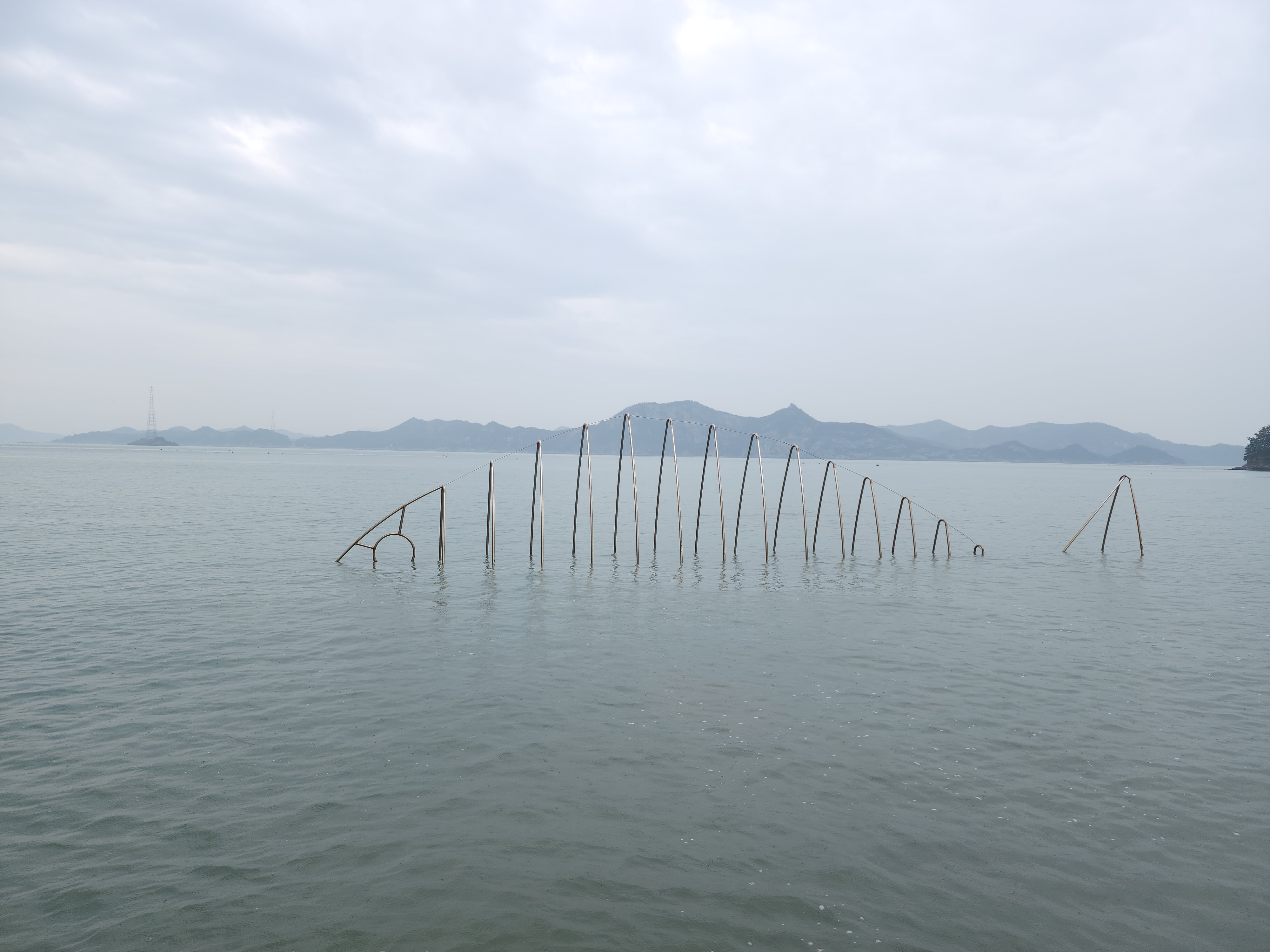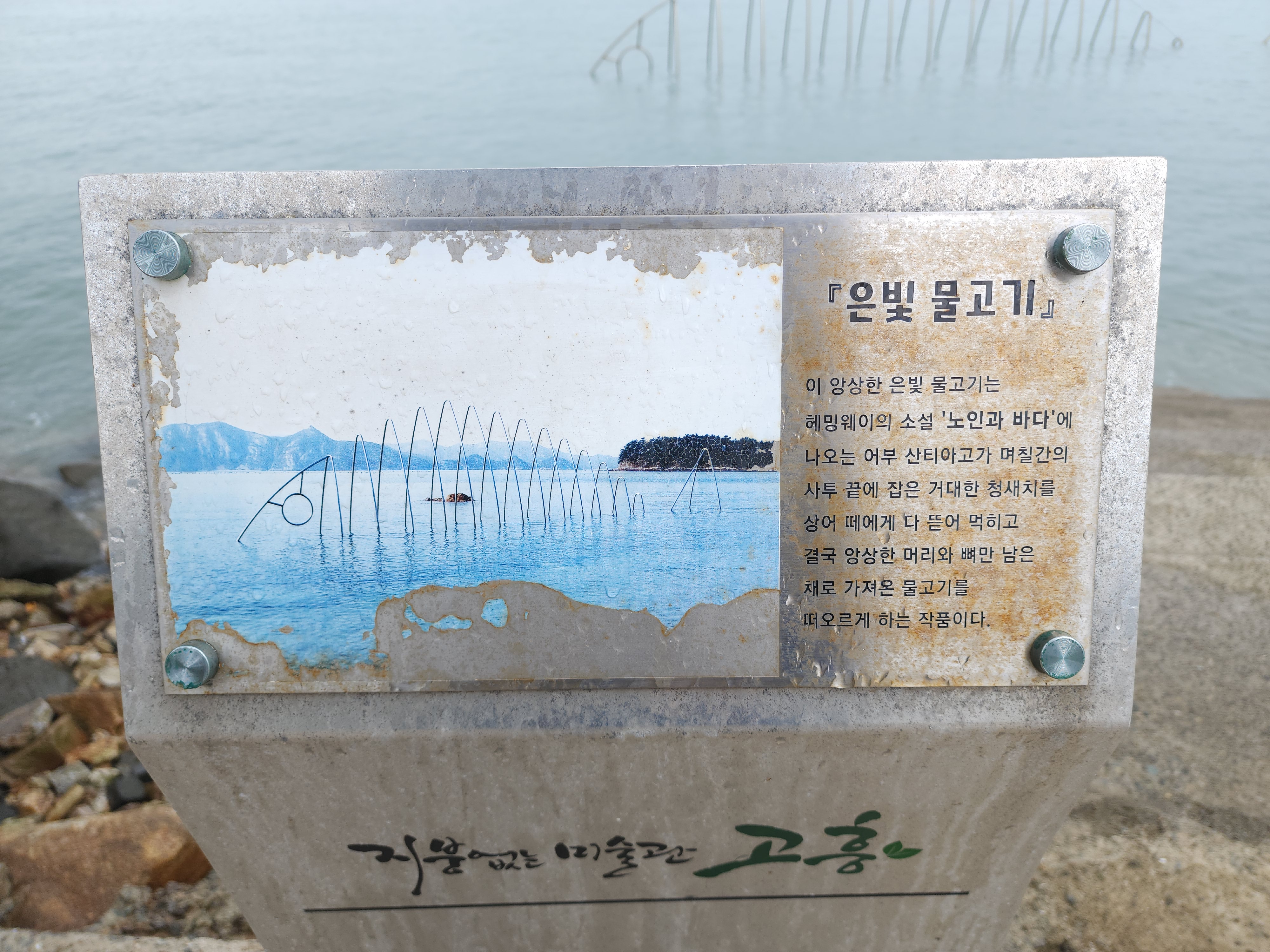 바닷가에는물고기 형상의 작품이 설치되어 있다.