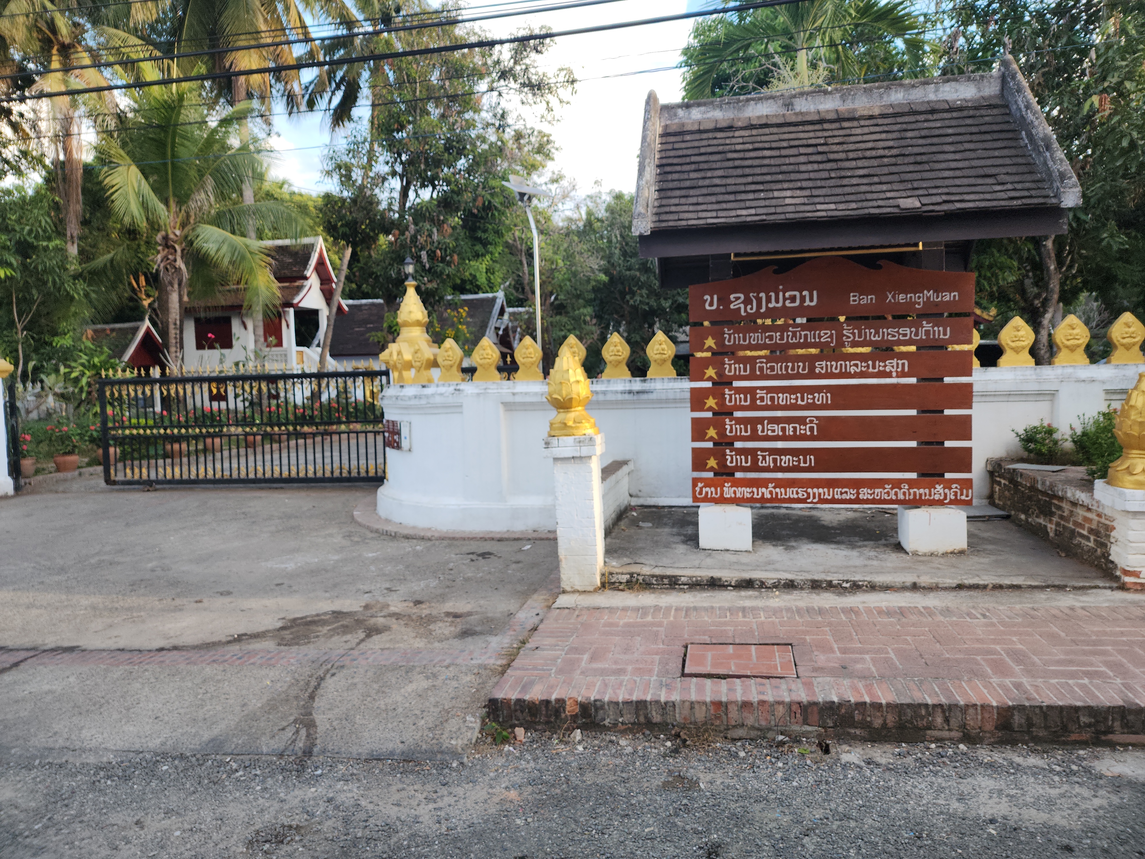 Wat Xieng Mouane 사원 이름이 라오스어로 되어 있다.