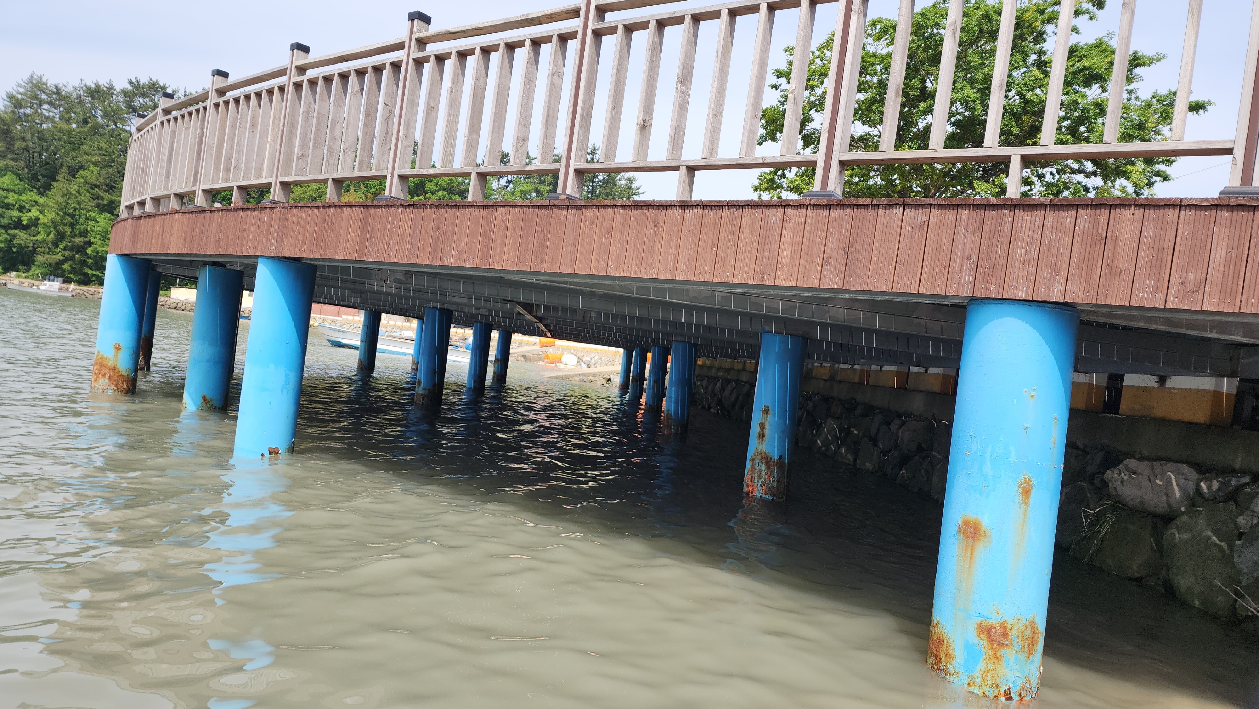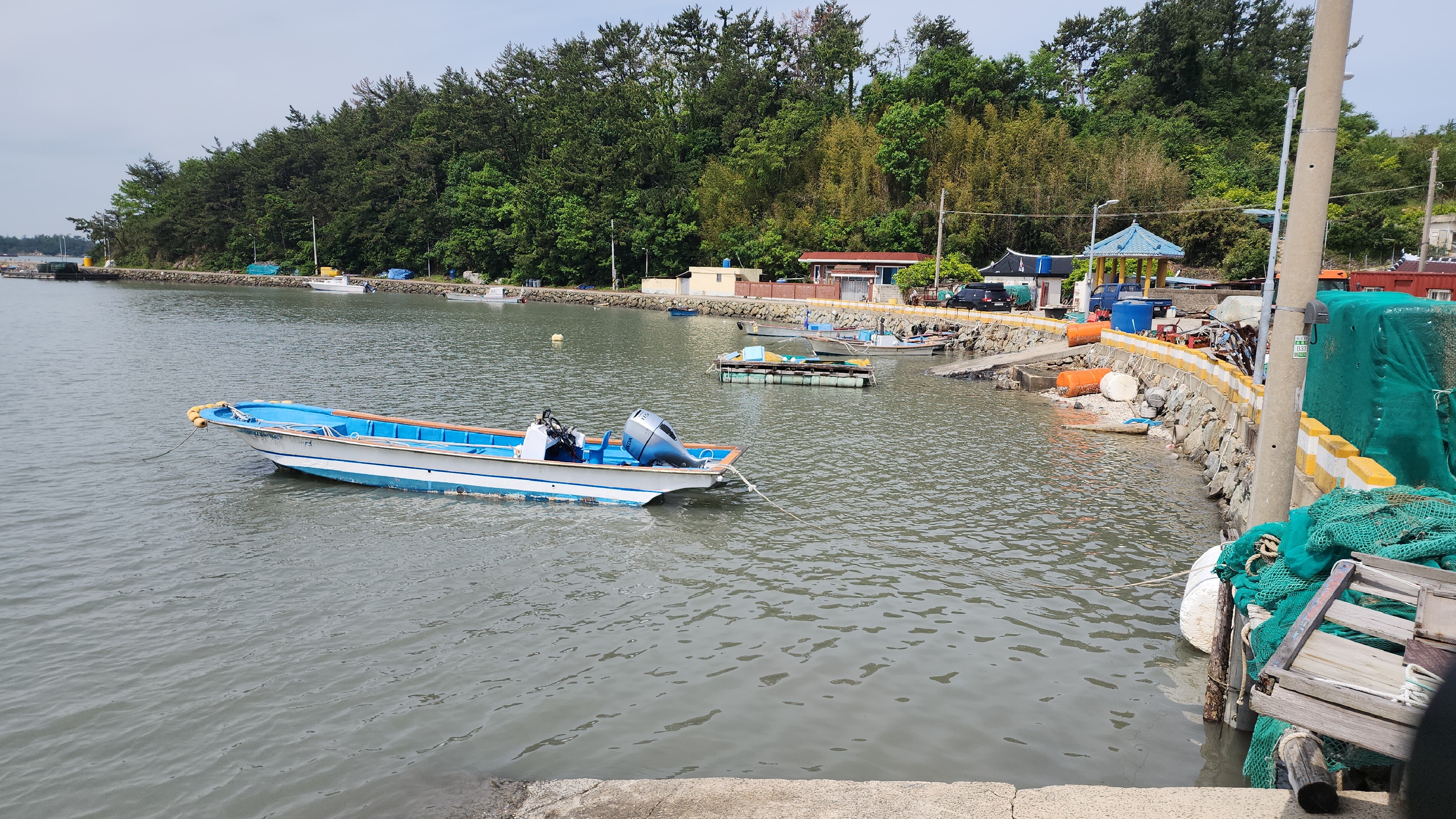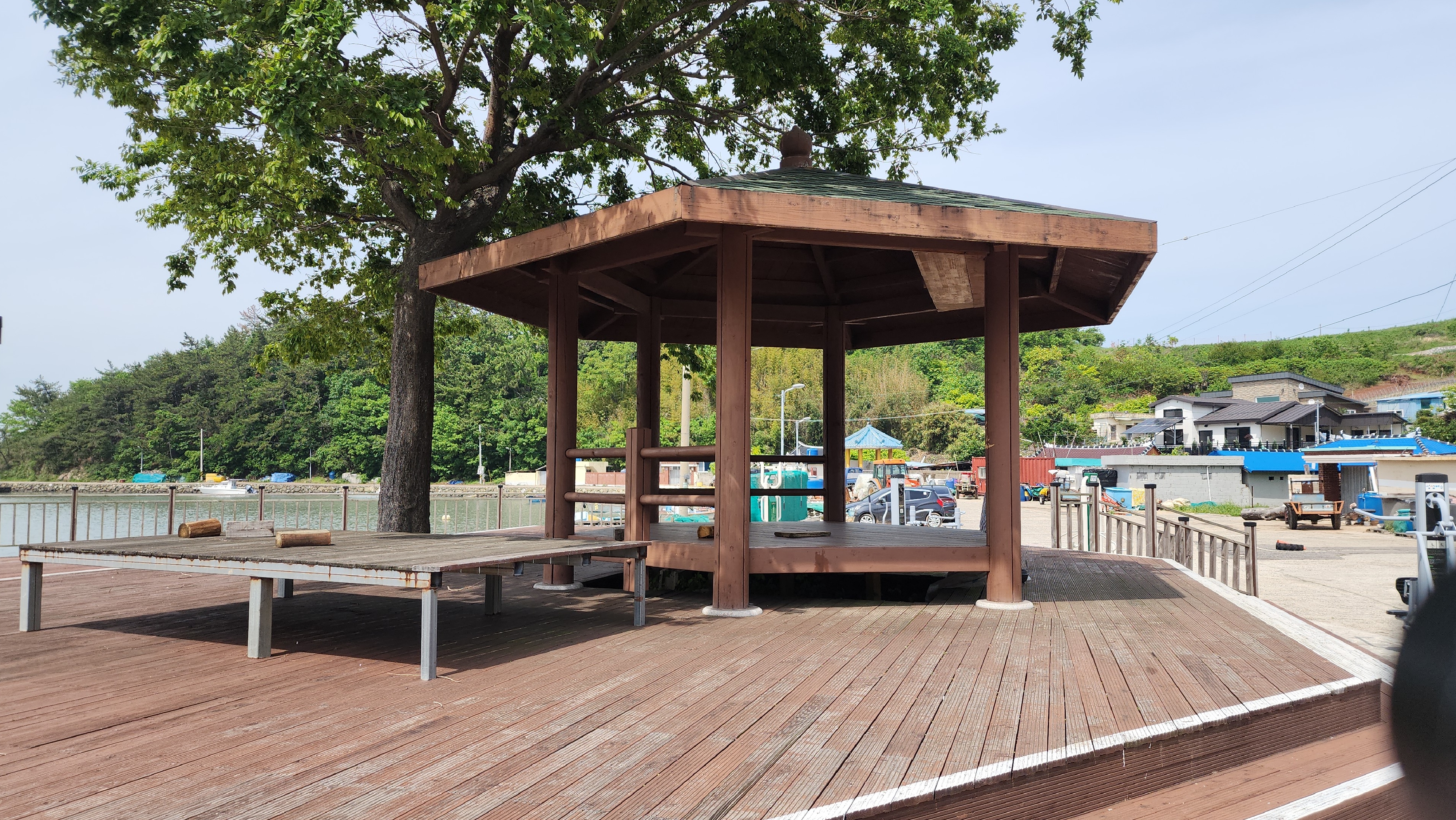 궁항마을 정자가 있는 앞에는 바다에 지지물을 세워서 쉼터를 만들었다.