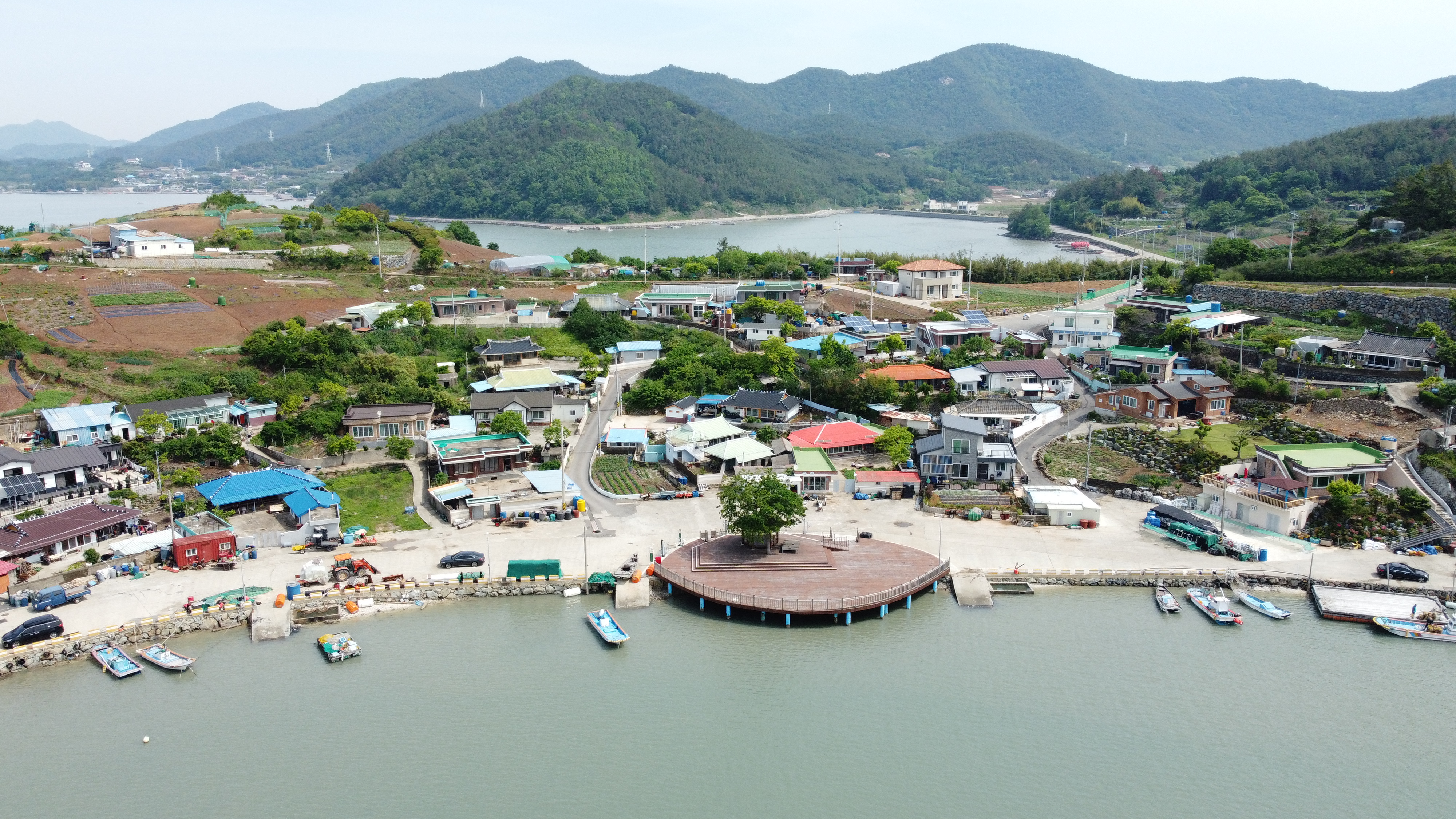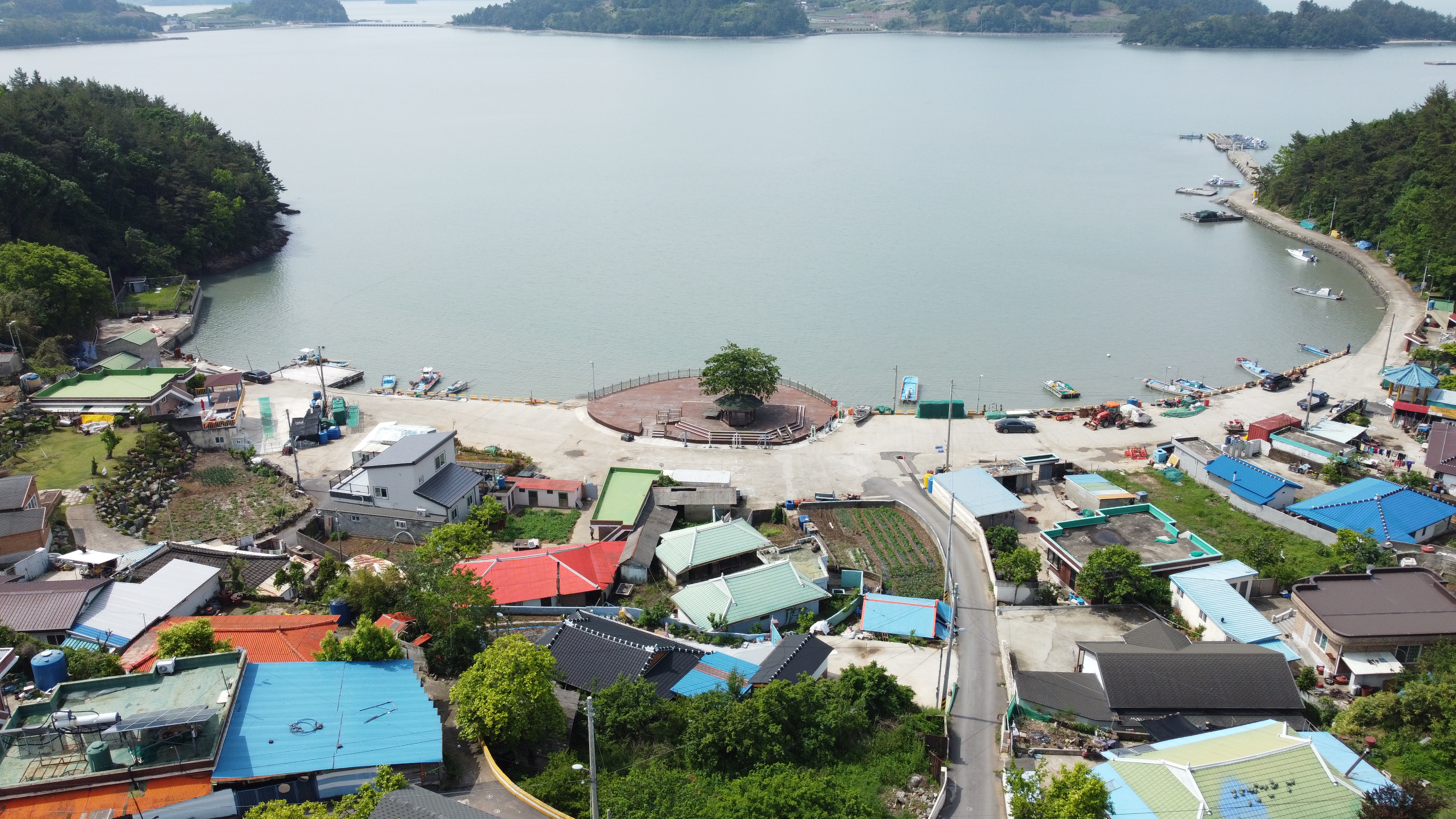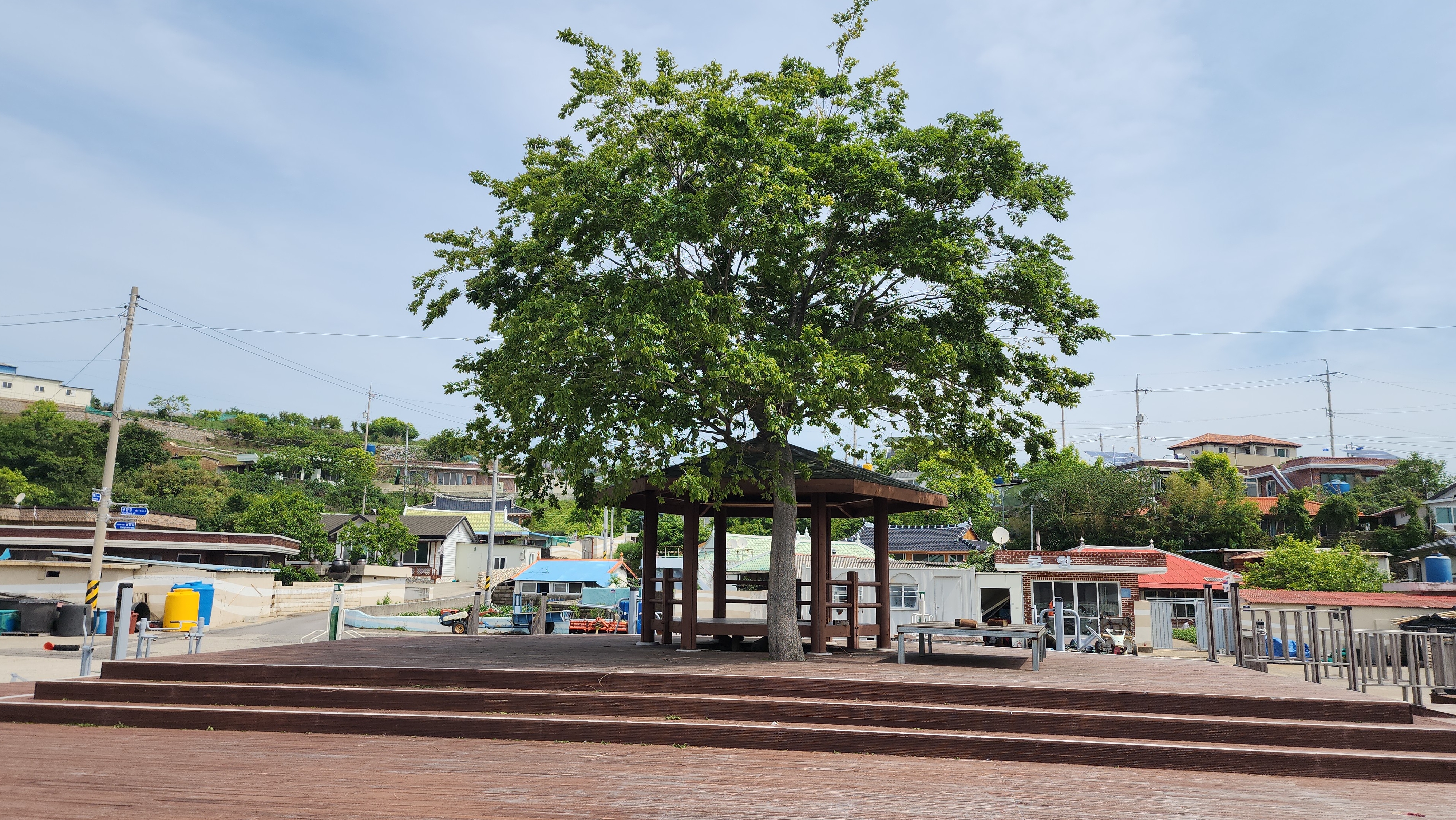 마을 한가운데에는 정자와 나무 한그루가 있다.